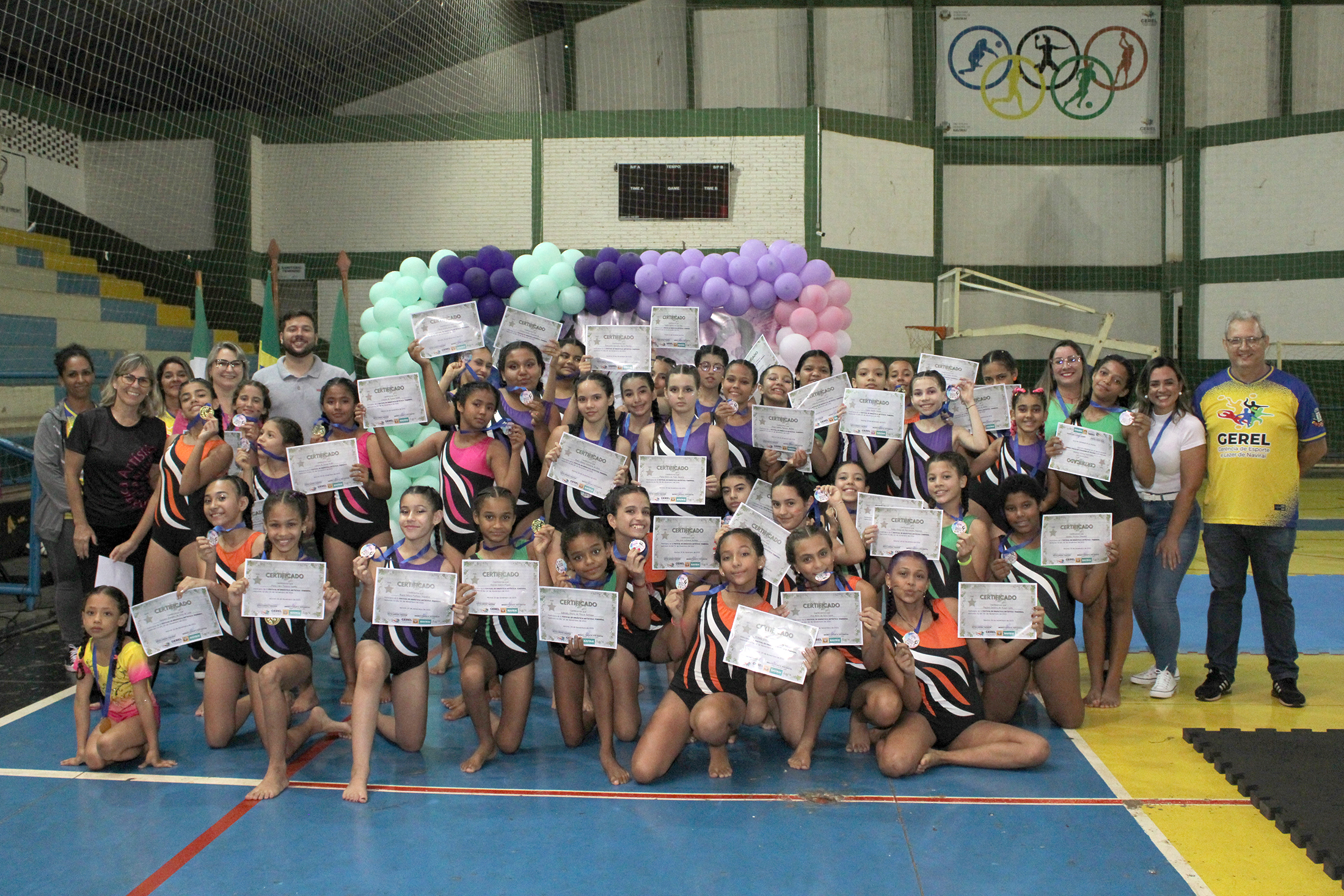 Com o apoio da Prefeitura de Naviraí, por intermédio da GEREL – Gerência de Esportes e Lazer, foi realizado no Centro Poliesportivo Manoel Pulquério Garcia, na sexta-feira, dia 24 de novembro, o 1º Festival de Ginástica Artística. Esse evento faz parte do programa PRODESC – Programa MS Escolar, desenvolvido no município em parceria com a FUNDESPORTE – Fundação de Desporto e Lazer de MS desde 2018, pela professora de Educação Física Katia Tarasiuk.