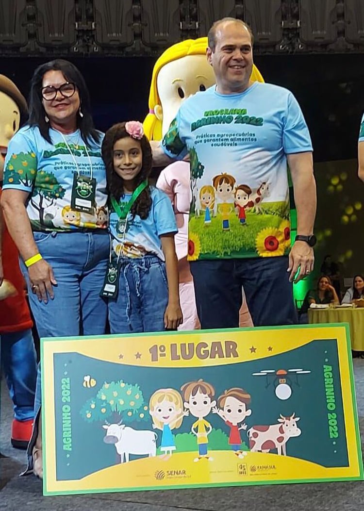 A Rede Municipal de Ensino de Naviraí, através da Escola José Martins Flores, foi destaque na solenidade que premiou os vencedores do Concurso Agrinho 2022, em avento realizado na quarta-feira (07/12), em Campo Grande. A aluna Larissa Rebeca Carvalho Freire ficou em primeiro lugar na categoria redação, com o texto “Boas práticas trazem saúde a mesa”. As professoras Maria Helena Calichio e Daniele Bianchi de Oliveira também foram premiadas.