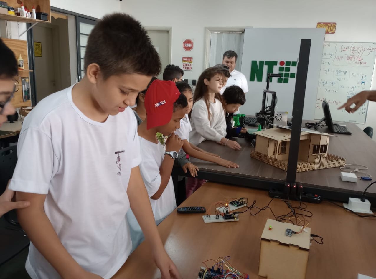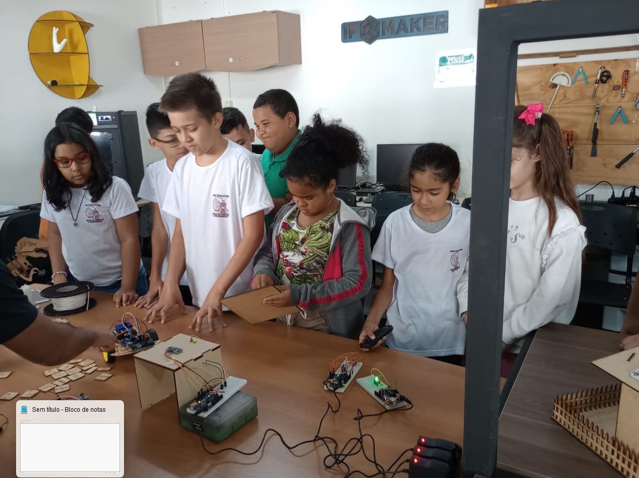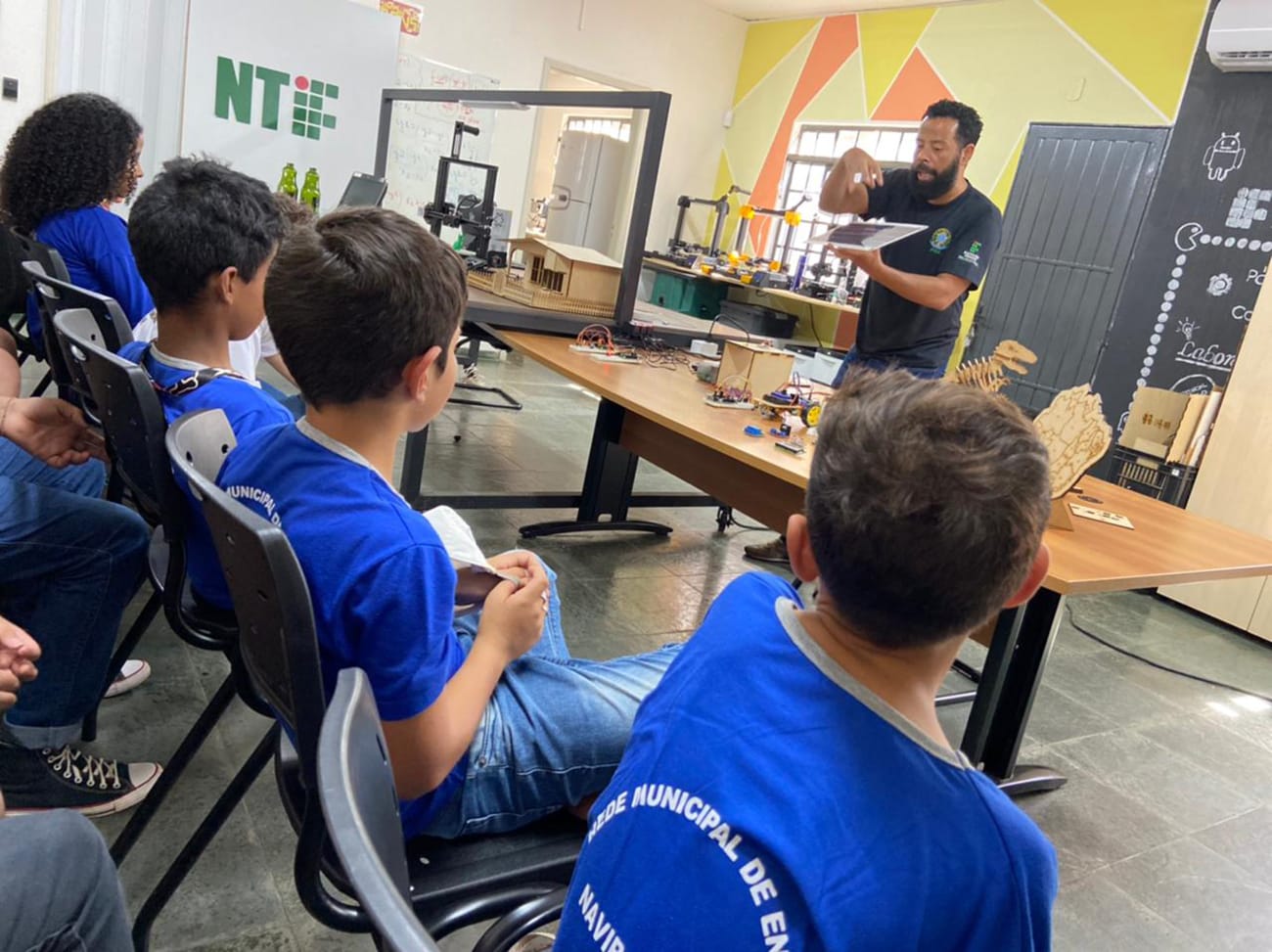 Alunos do Centro de Robótica Navieducation, criado pela Prefeitura de Naviraí por meio da Gerência de Educação e Cultura, visitaram o Centro de Tecnologia do campus local do Instituto Federal de Mato Grosso do Sul (IFMS). O propósito da visita foi conhecer na prática um pouco mais sobre a Cultura Maker, os materiais utilizados pela instituição de ensino que vão desde impressoras 3D, projetos com arduíno, automação, máquina CNC a materiais reciclados disponíveis no nosso dia a dia.