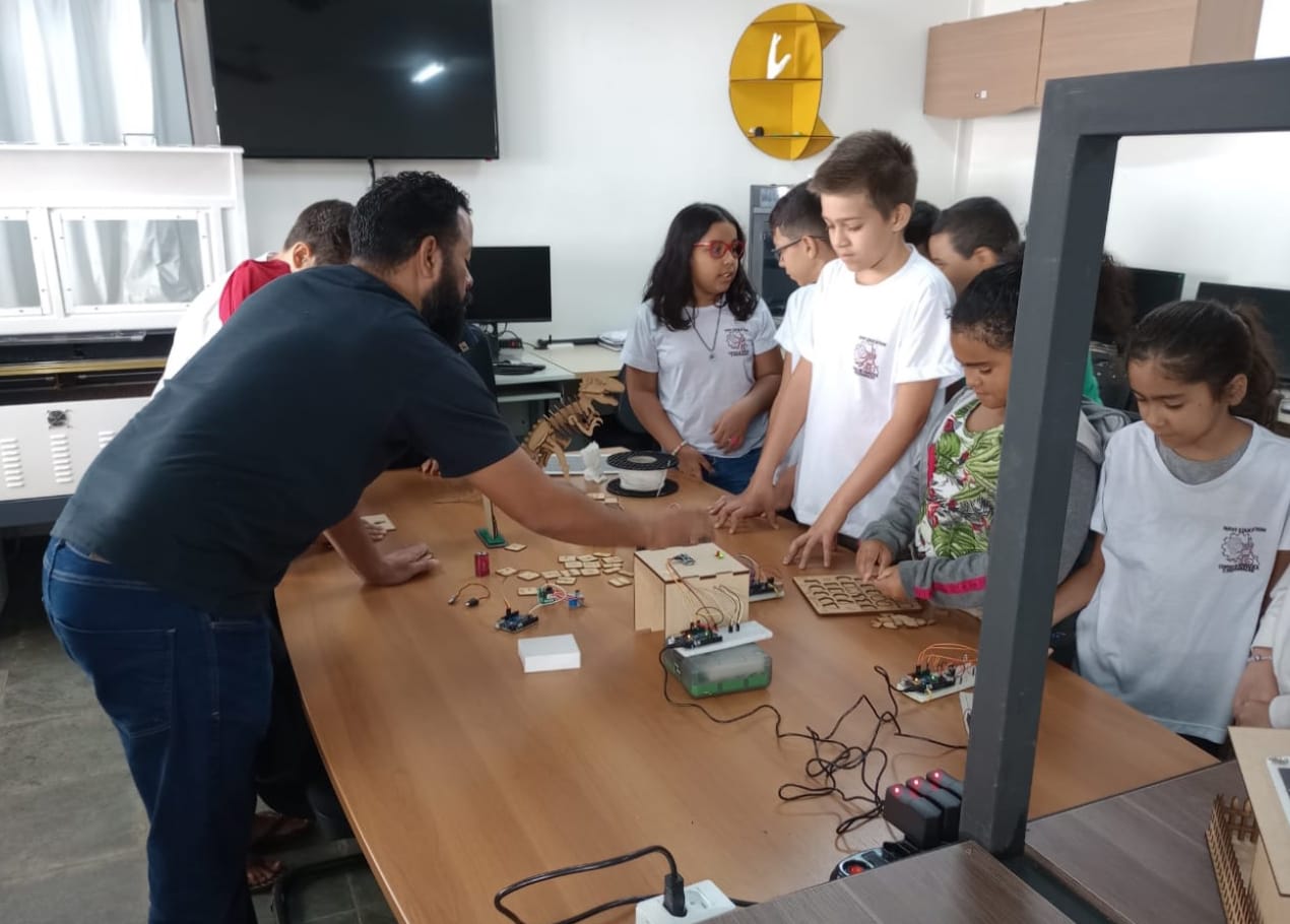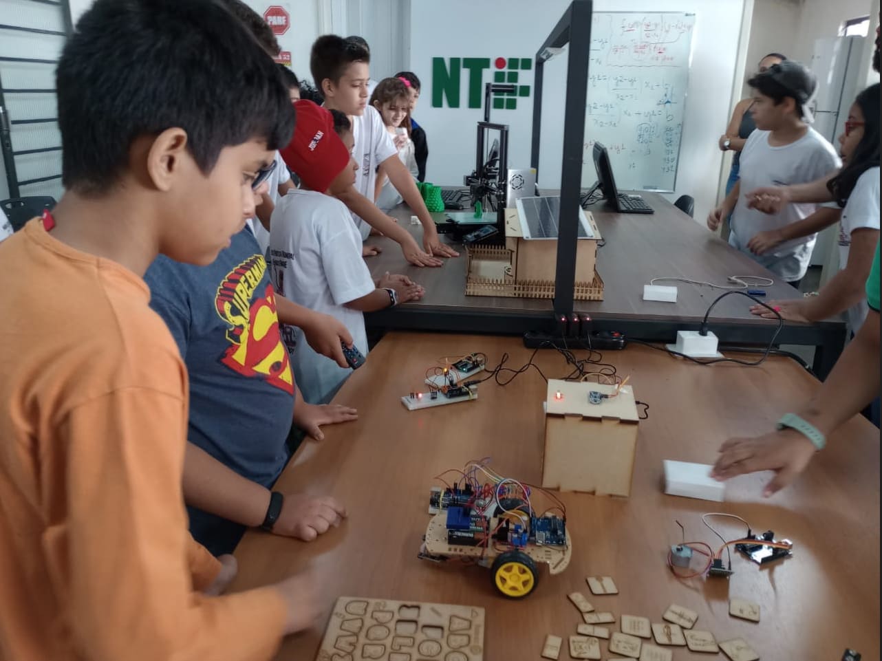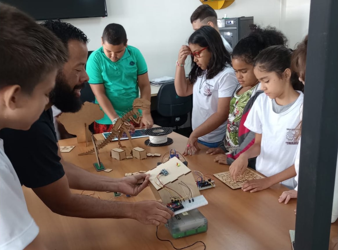 Alunos do Centro de Robótica Navieducation, criado pela Prefeitura de Naviraí por meio da Gerência de Educação e Cultura, visitaram o Centro de Tecnologia do campus local do Instituto Federal de Mato Grosso do Sul (IFMS). O propósito da visita foi conhecer na prática um pouco mais sobre a Cultura Maker, os materiais utilizados pela instituição de ensino que vão desde impressoras 3D, projetos com arduíno, automação, máquina CNC a materiais reciclados disponíveis no nosso dia a dia.