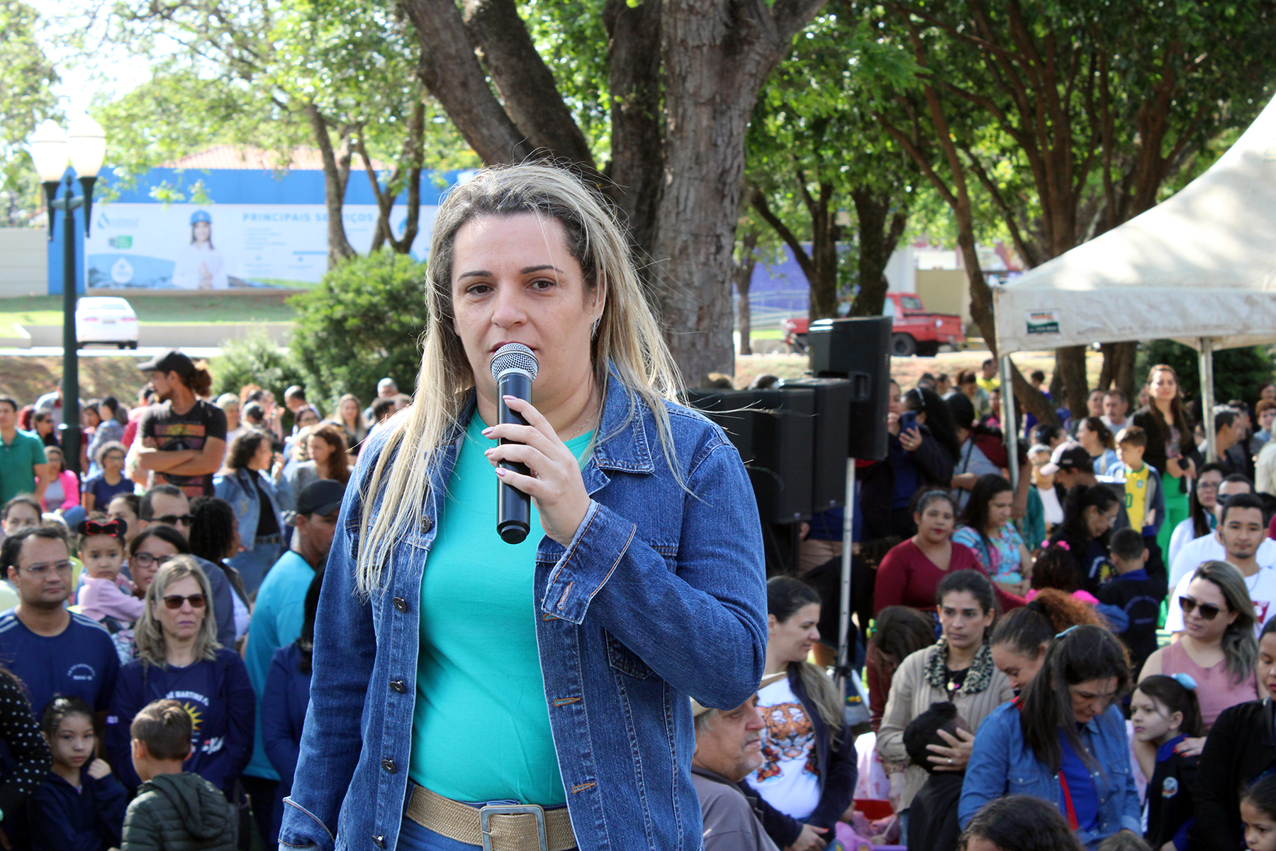 Prefeita fala sobre o Ato Cívico em comemoração ao Dia da Independência do Brasil (Foto: Júnior Lopes/ Assessoria)