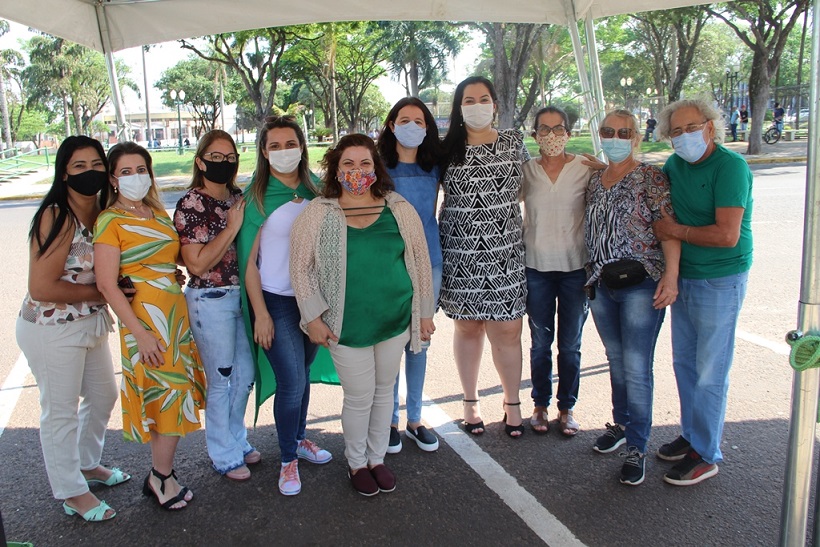 Prefeita Rhaiza Matos, e a gerente de Educação e Cultura Tatiane Morch, com a Banda Municipal Tom Jobim, destaque das comemorações do 7 de Setembro, em Naviraí. Foto: Roney Minella