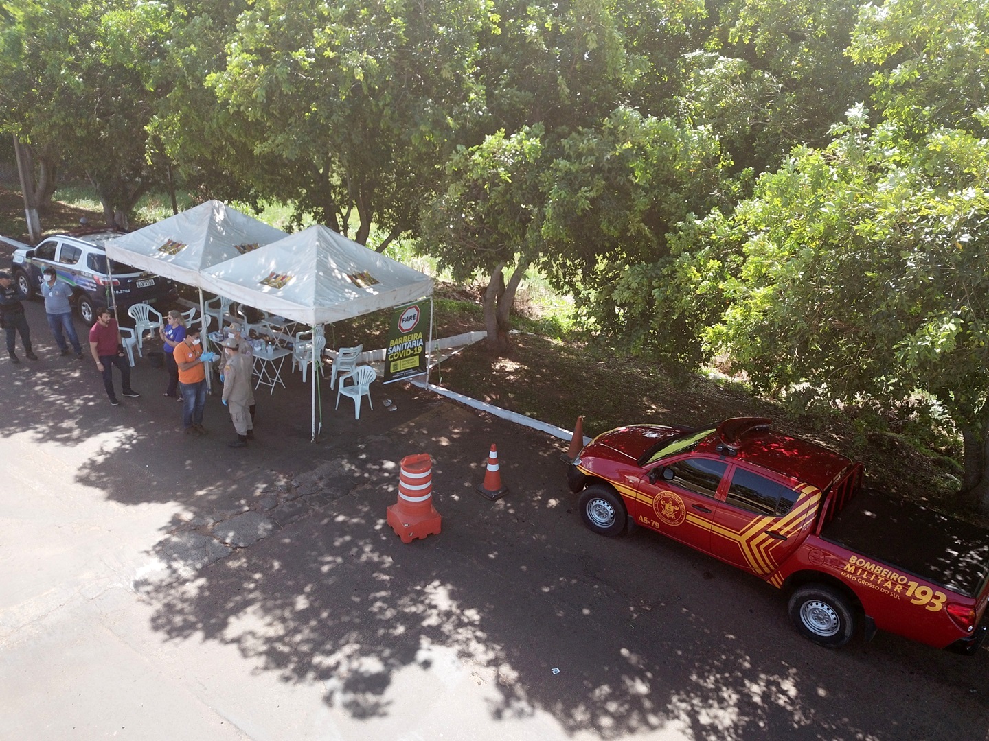 A partir desta sexta-feira, dia 03 de abril de 2020, começa a funcionar junto ao Posto Fiscal Foz do Rio Amambai, em Naviraí, na rodovia BR-487, que demanda da BR-163 até o Porto Camargo, no rio Paraná. Essa ação como medida de prevenção ao Covid-19 foi criada pelo Governo do Estado em parceria com os municípios e lá vão estar dois bombeiros, quatro policiais militares, dois agentes do Iagro e a Defesa Civil Municipal de Naviraí será representada nesse grupo de trabalho. As barreiras com a mesma finalidade em Bataguassu, Três Lagoas e Mundo Novo, iniciaram suas atividades nesta quarta-feira, dia 1º de abril. Outra ação contra o coronavírus começou também no Aeroporto Internacional de Campo Grande.