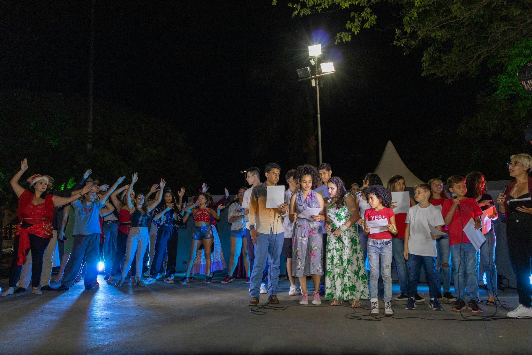 Quem também encantou o público foram os componentes do Projeto Ciranda En’Arte, que presentou o público com a apresentação do Coral, danças e ginástica rítmica. O projeto CirandaEn’Arte, é um projeto retomado pela atual gestão da Prefeitura Municipal de Naviraí que, por intermédio da Fundação de Cultura, atende mais de 600 crianças com aulas gratuitas, nas modalidades de danças, música e teatro.