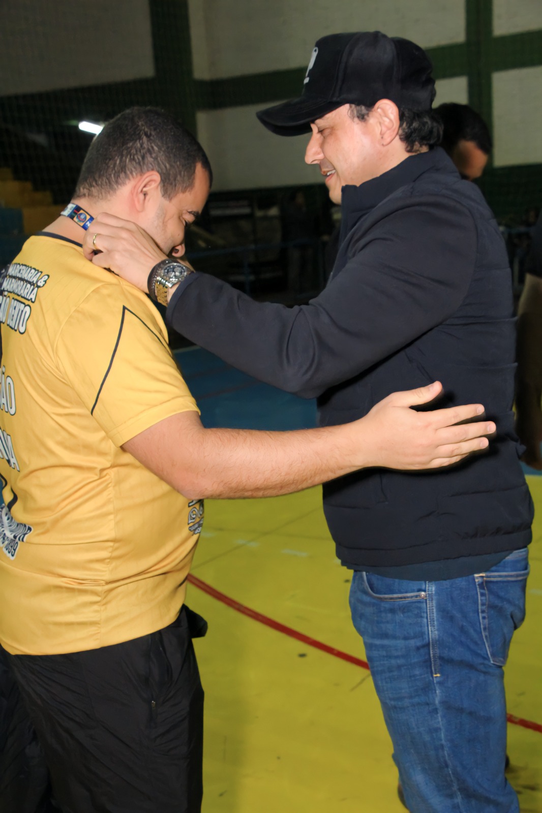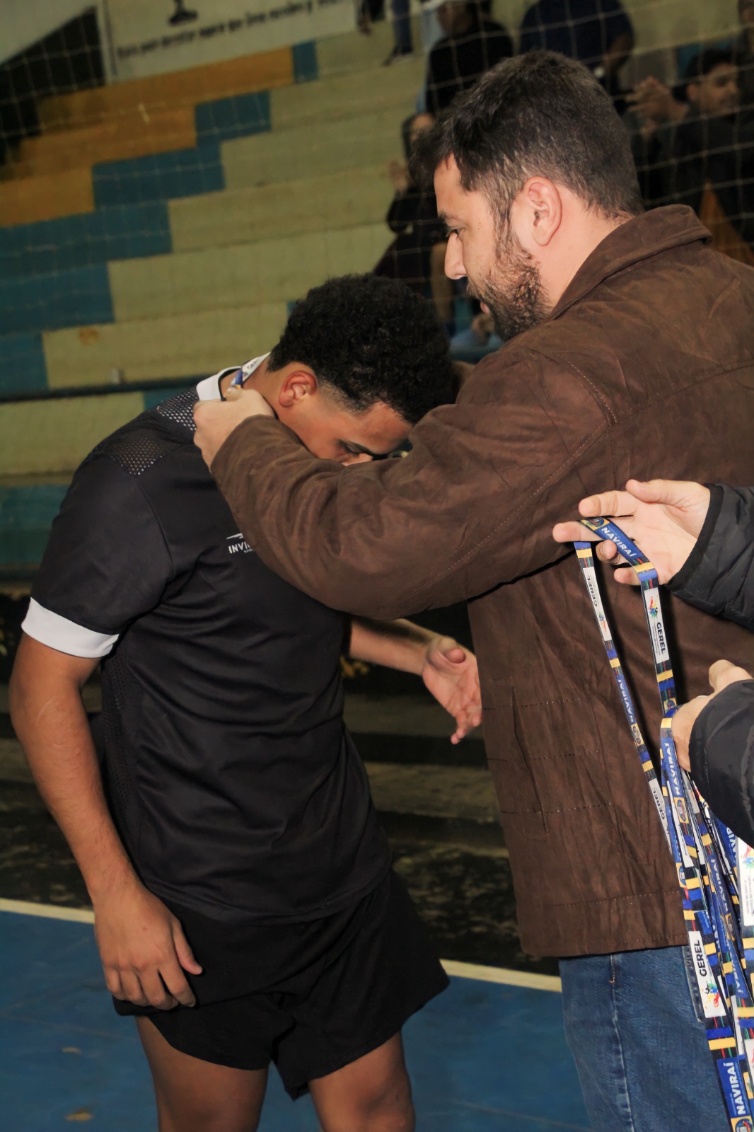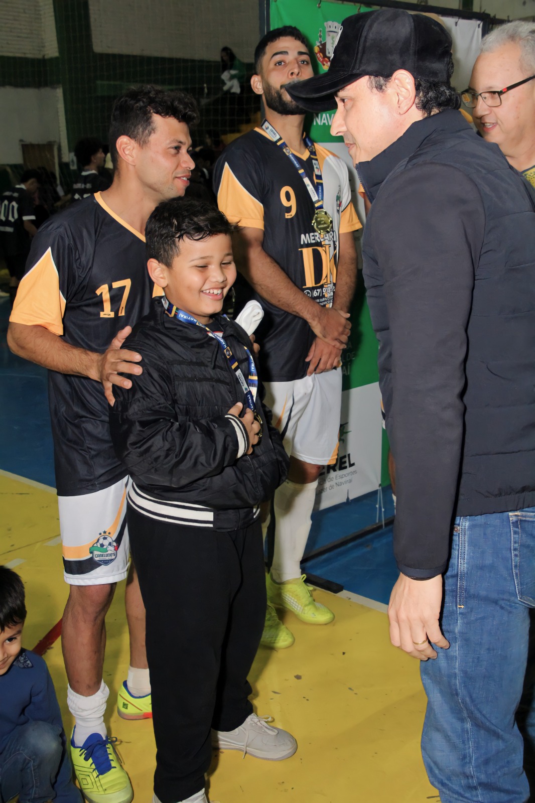 Prefeito Rodrigo Sacuno parabenizou o times vice-campeão e campeão da 13ª Copa Cidade Naviraí de Futsal Masculino. © FestaDoDia/Fabíola Ramires