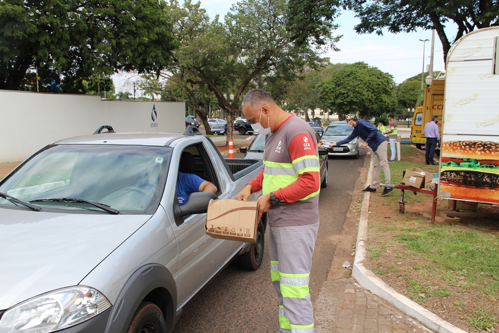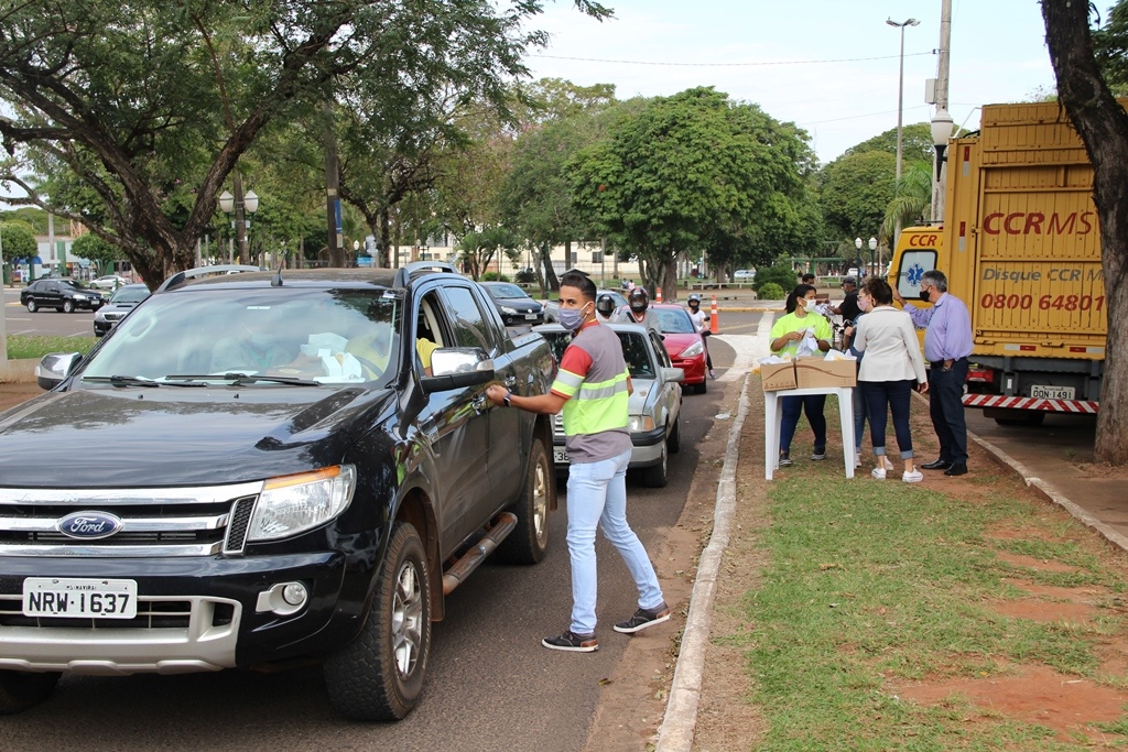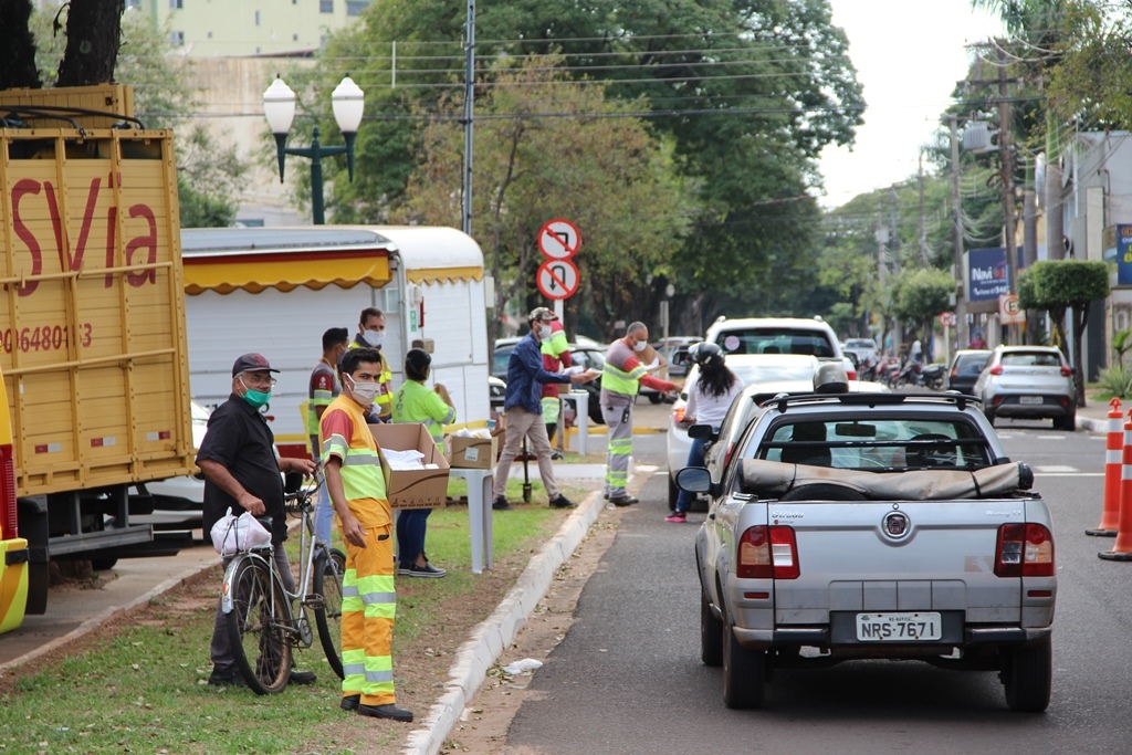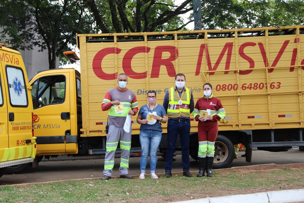 Uma parceria firmada entre a Prefeitura de Naviraí, através do Núcleo de Trânsito e a concessionária dos pedágios na rodovia BR-163, a CCR MSVia, proporcionou condições para que na manhã desta quinta-feira (16), nas proximidades da agência local do Banco do Brasil, na Avenida Dourados, área central da cidade, fosse entregue 1.000 kits contra o Coronavirus, contendo cada um deles, álcool líquido 70%, uma flanela e máscara para todos os ocupantes dos veículos abordados.