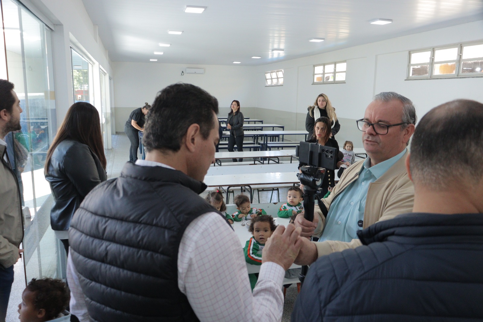 A solenidade contou com a presença do Prefeito, que destacou a importância simbólica dessa entrega e reafirmou o compromisso da administração com a qualidade da educação pública. Também estiveram presentes o Gerente Municipal de Educação, a diretora da unidade, Rosângela Cabrera, além de vereadores e demais autoridades, servidores e famílias.