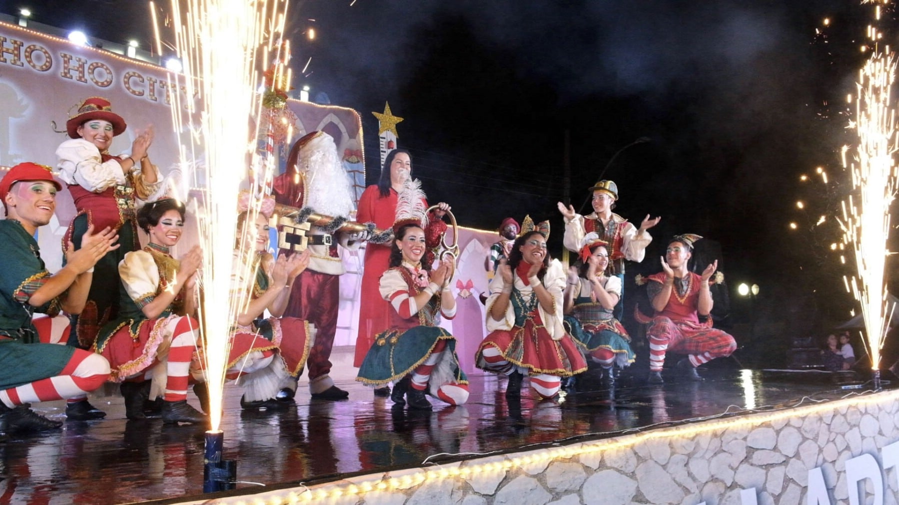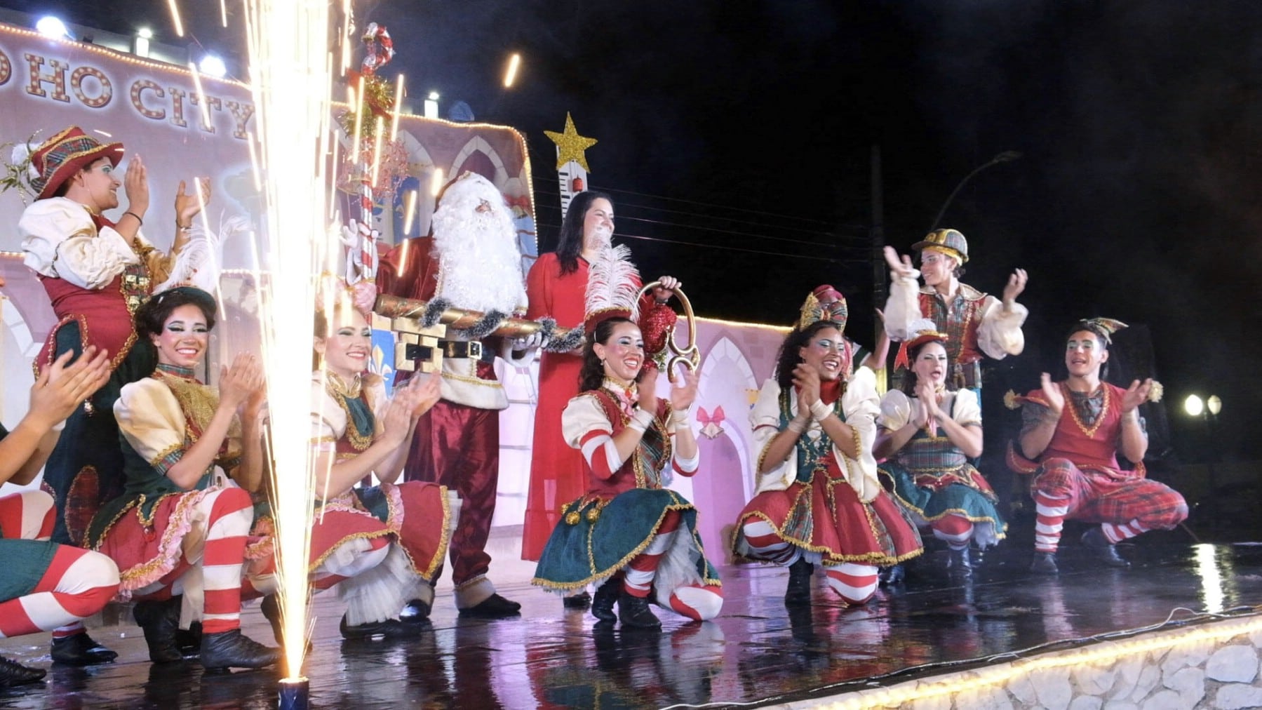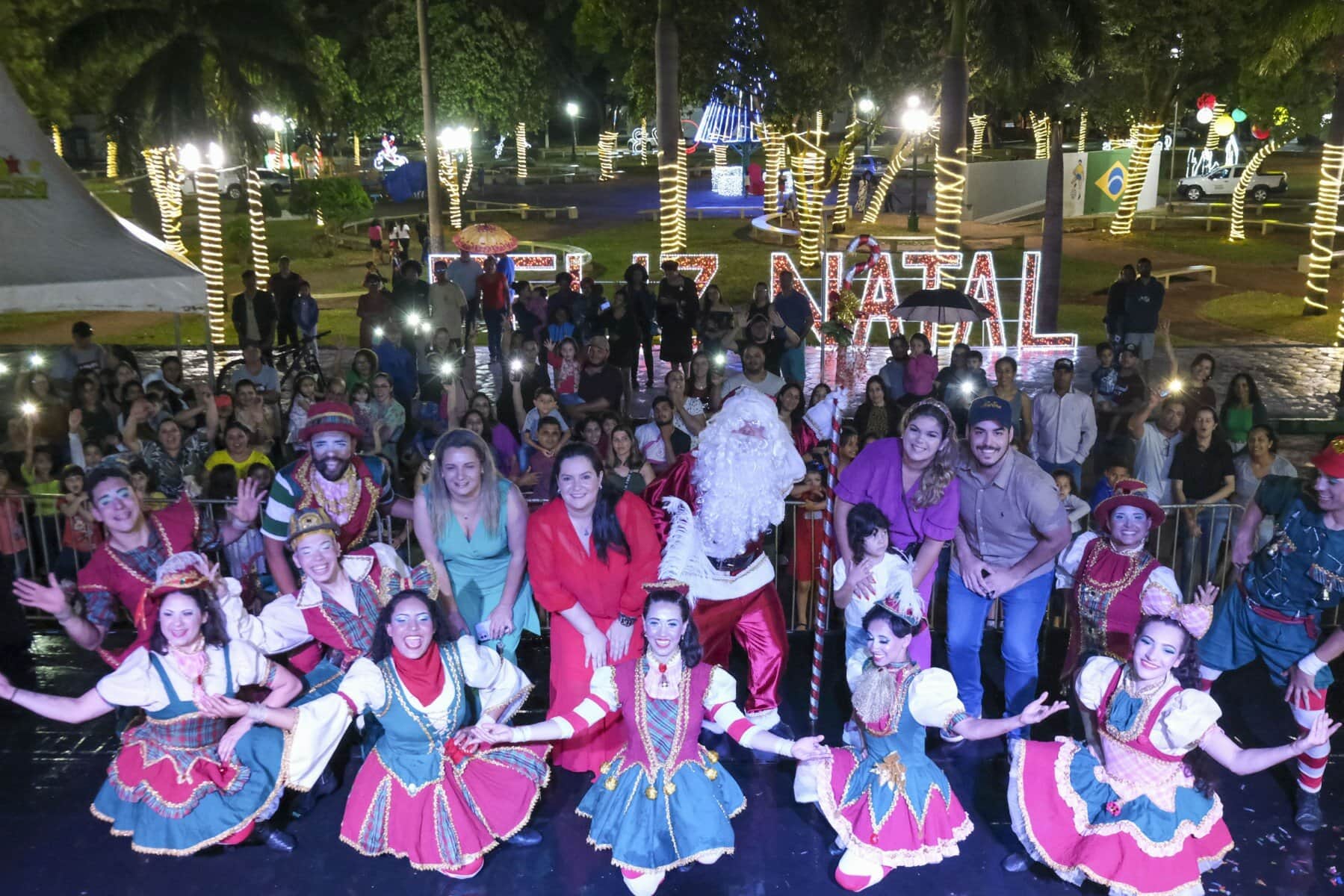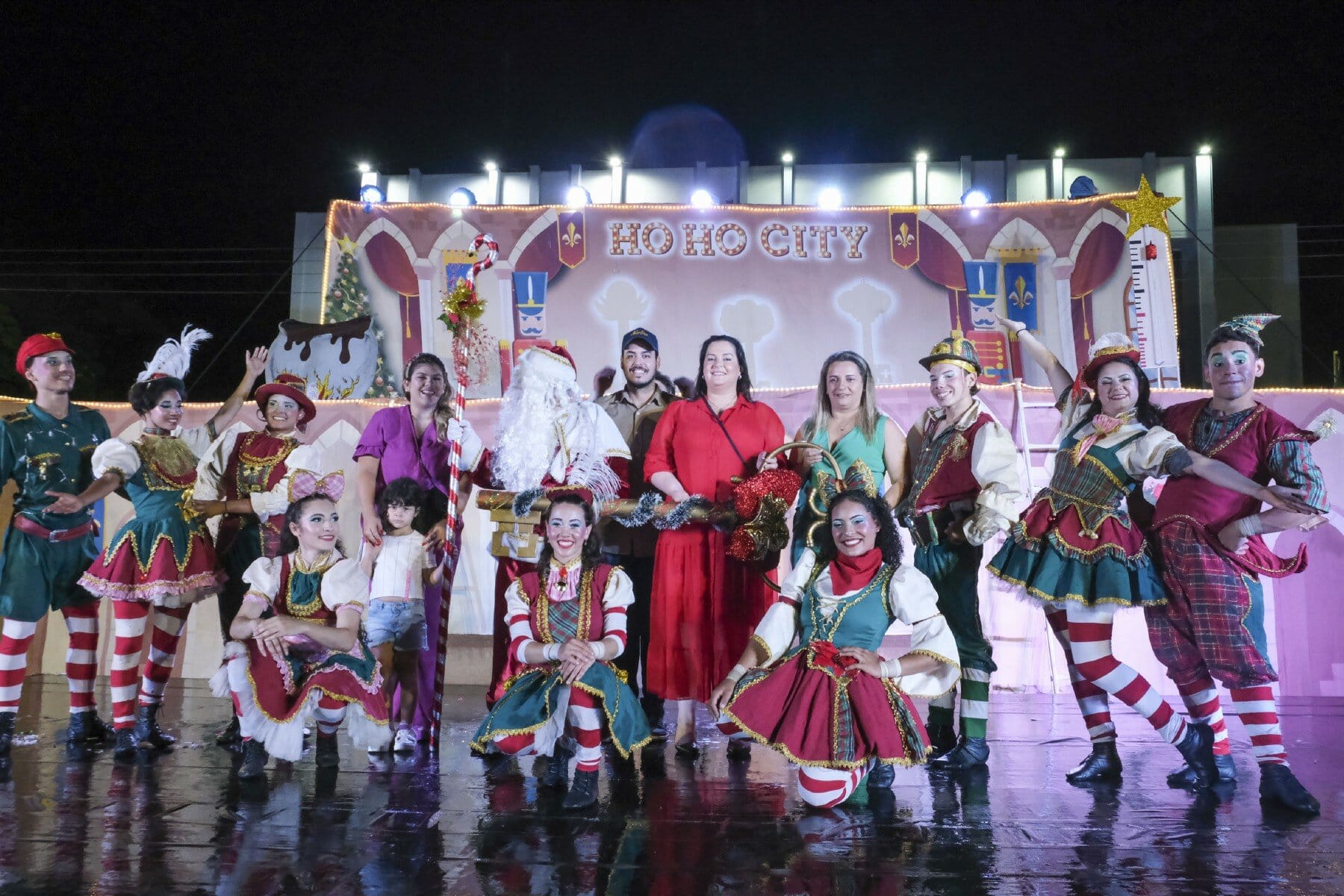 Nem mesmo a chuva que caiu no momento do evento afugentou o público. Outro ponto alto da noite foi o Espetáculo de Natal “Ho Ho City”, apresentado pelos artistas da Companhia Sou Arte, de Campo Mourão-PR, que encenaram o nascimento do Menino Jesus e foi concluído com a chegada do Papai Noel.