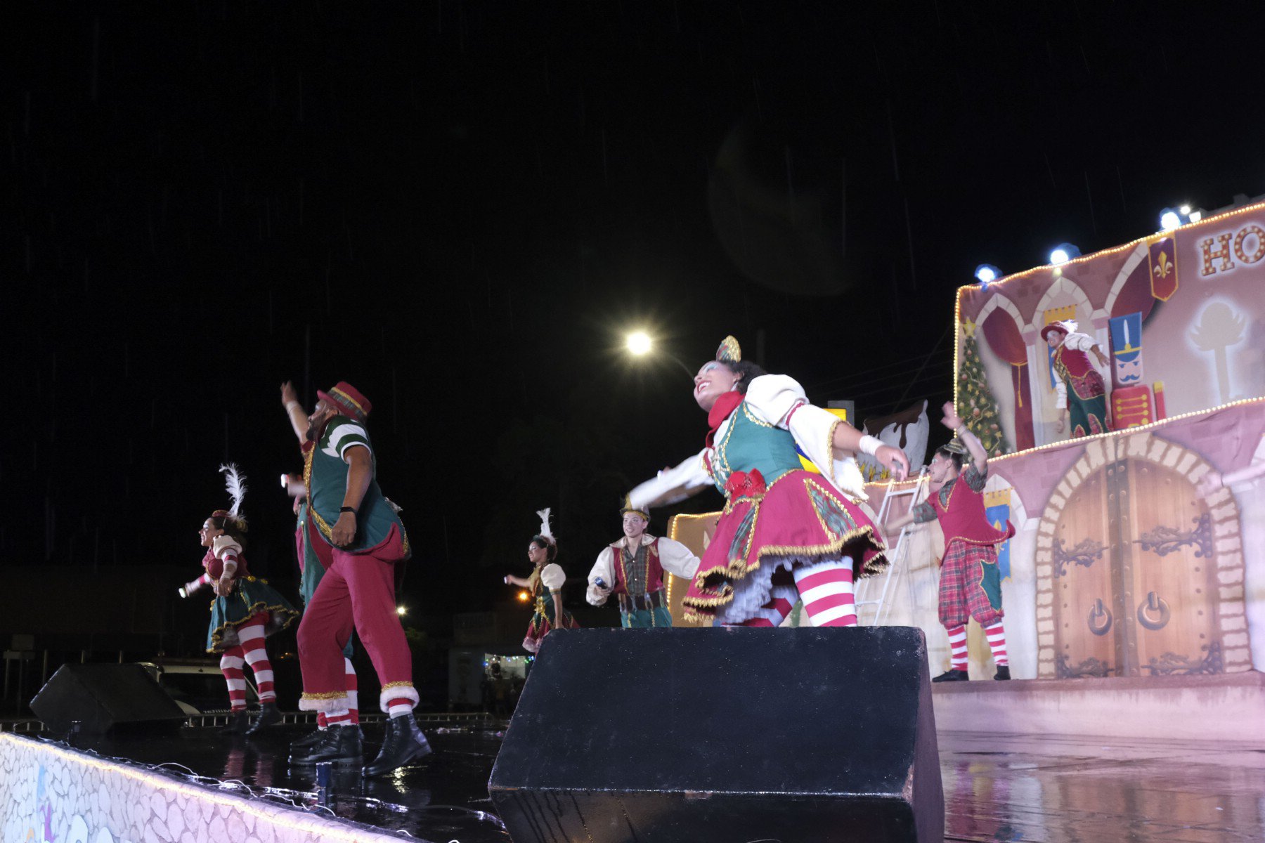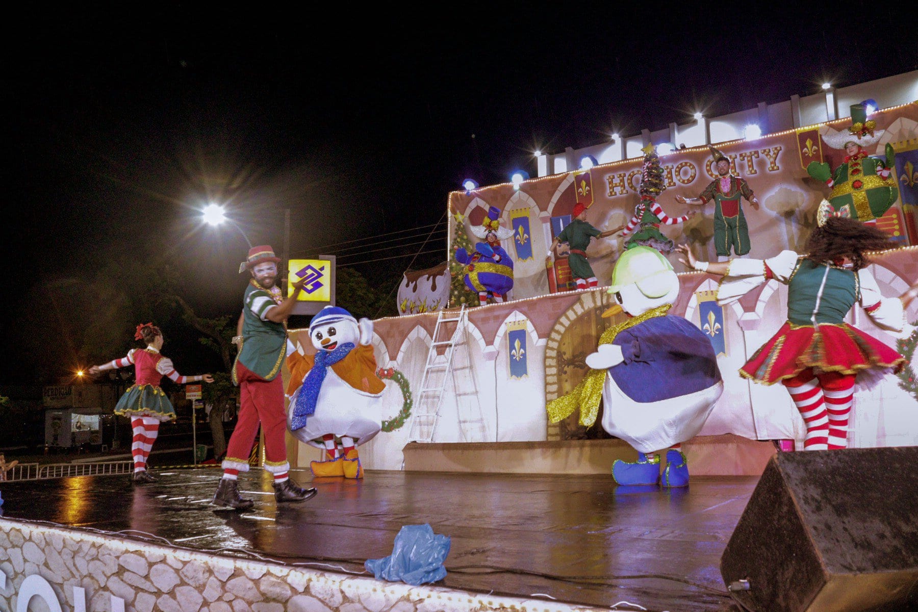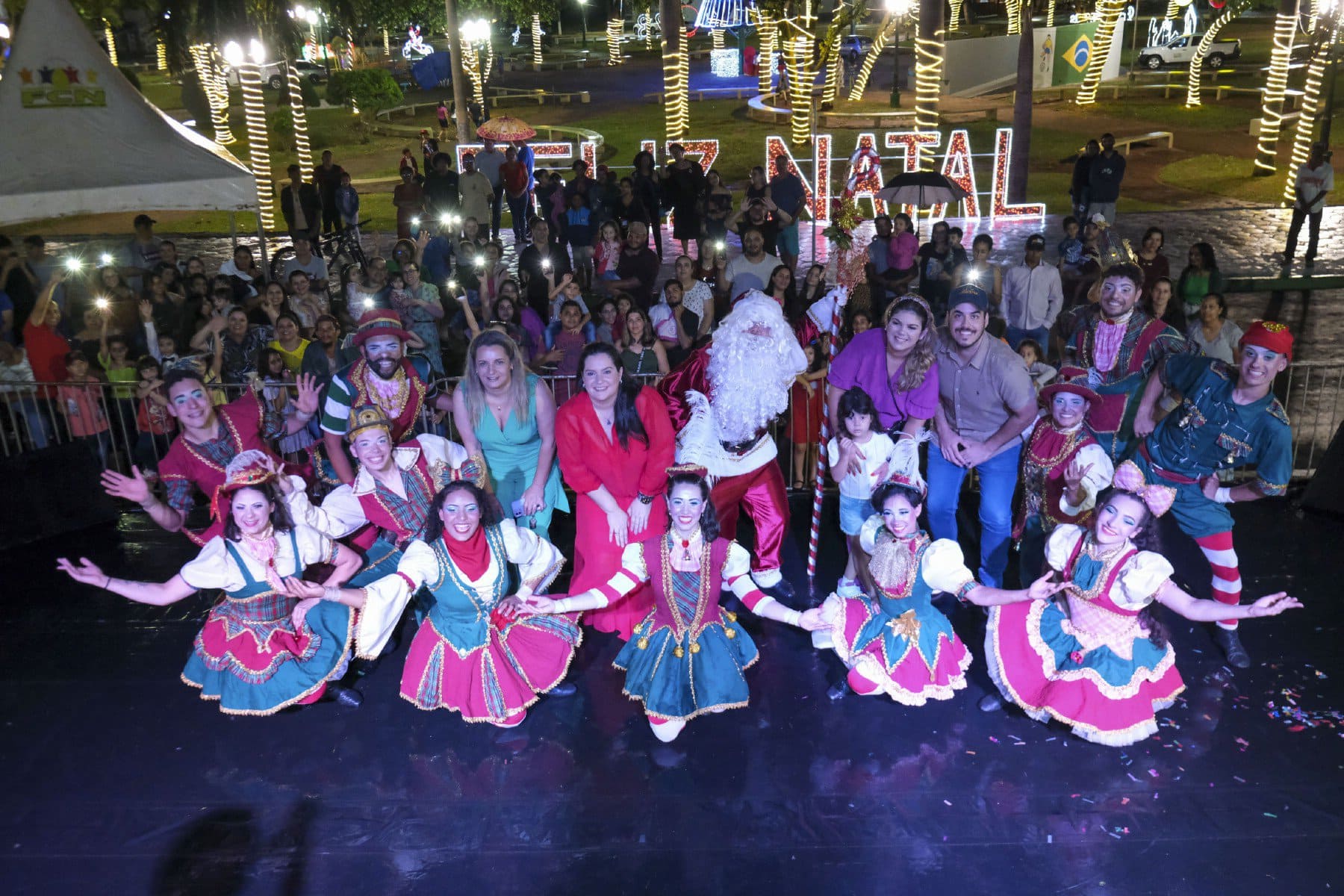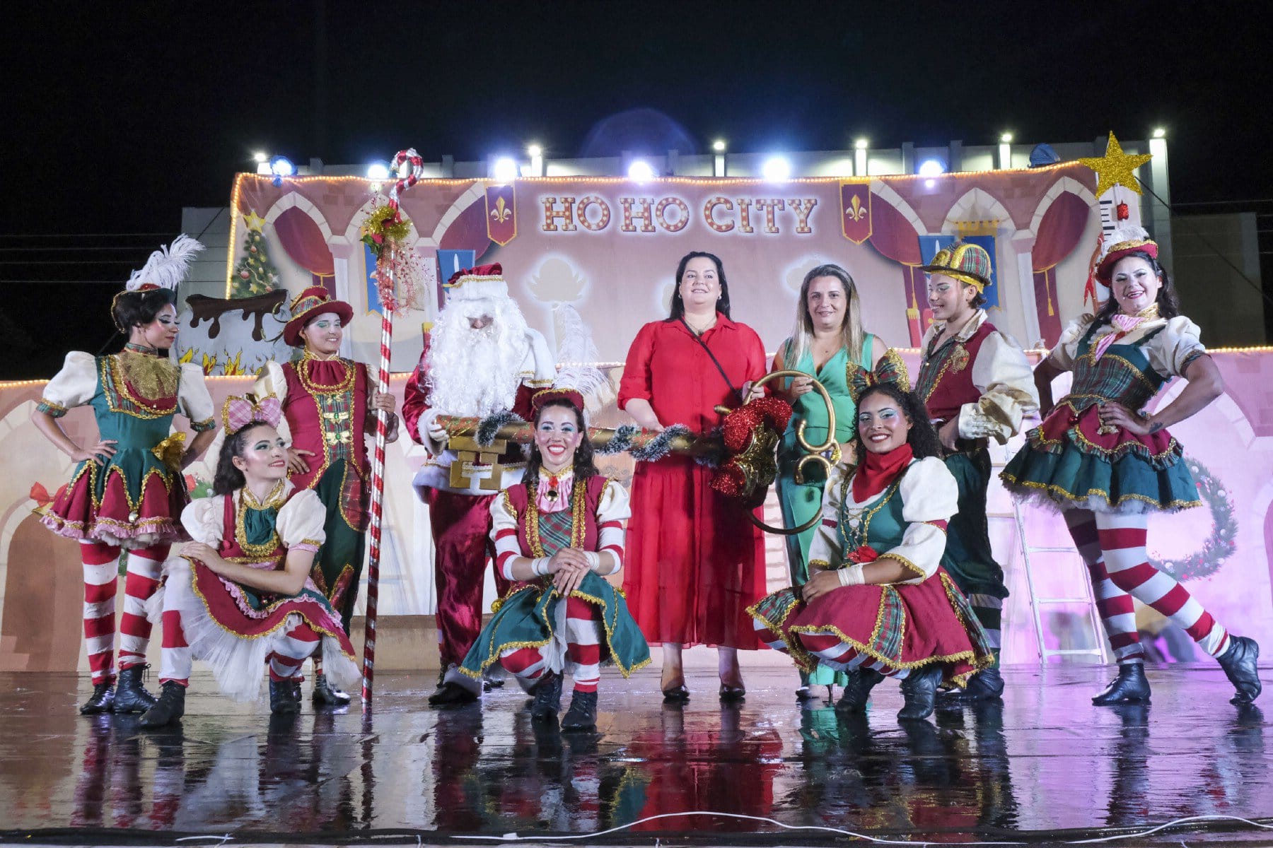 Nem mesmo a chuva que caiu no momento do evento afugentou o público. Outro ponto alto da noite foi o Espetáculo de Natal “Ho Ho City”, apresentado pelos artistas da Companhia Sou Arte, de Campo Mourão-PR, que encenaram o nascimento do Menino Jesus e foi concluído com a chegada do Papai Noel.