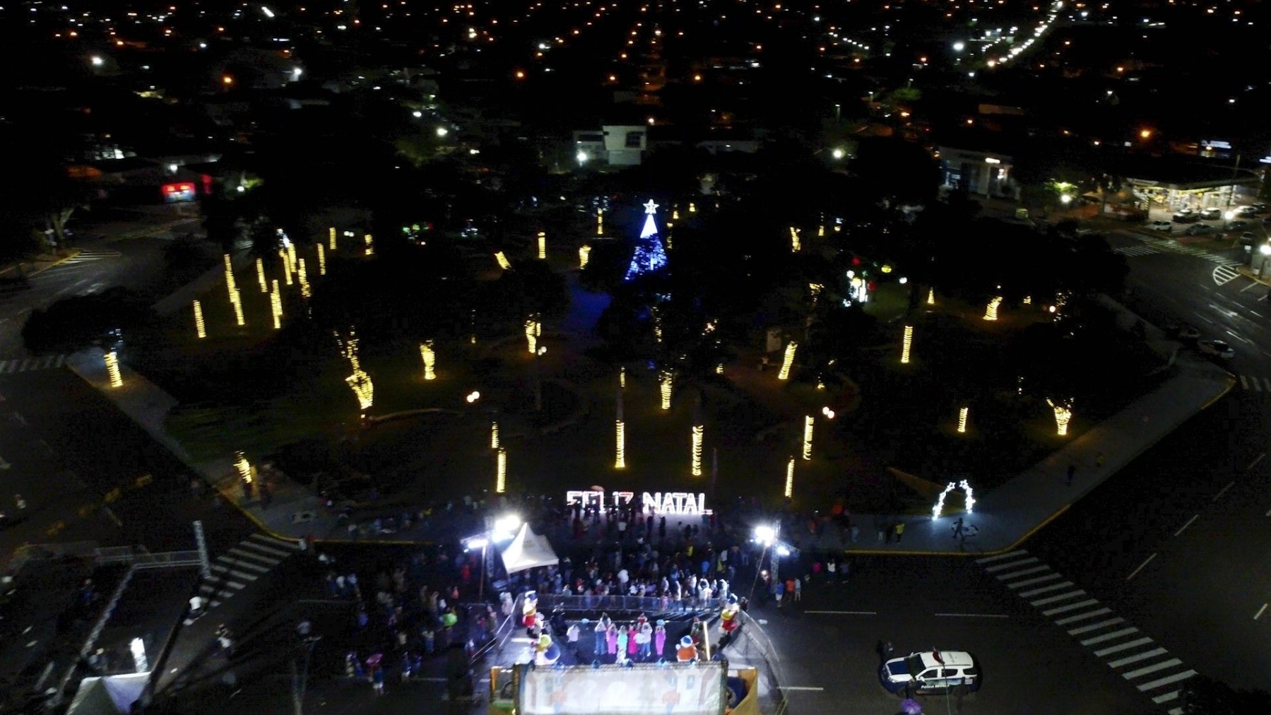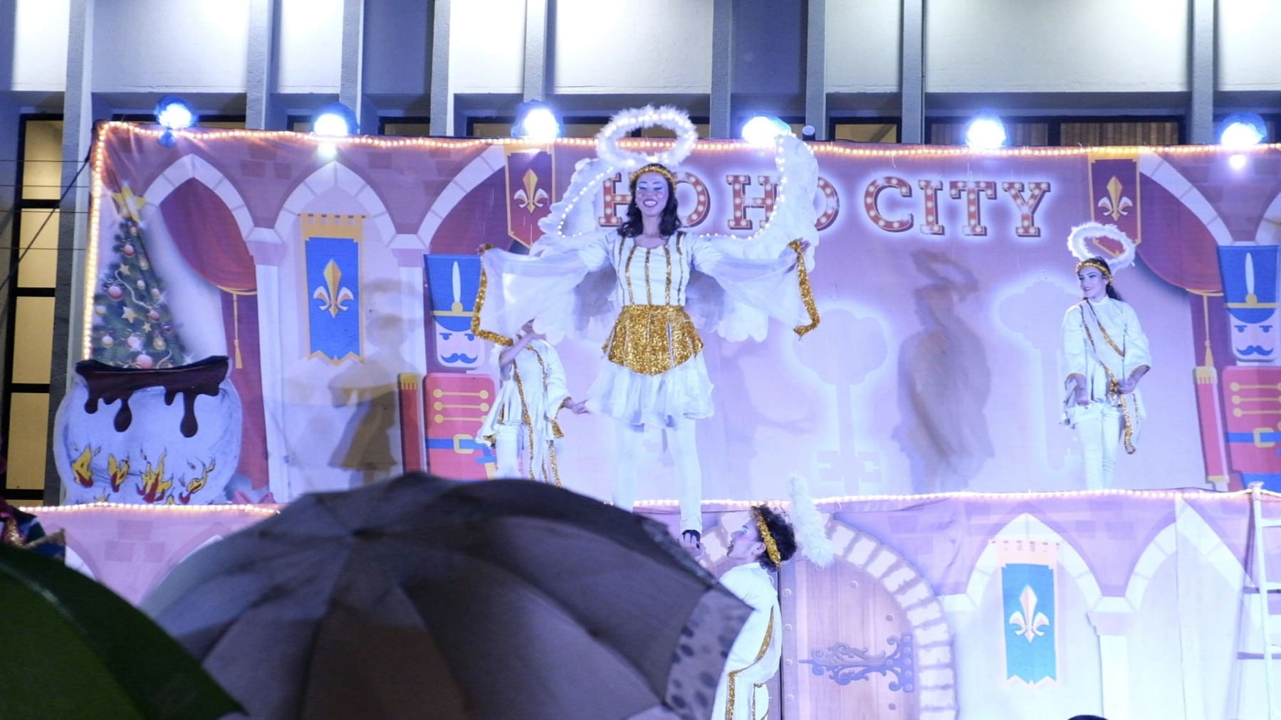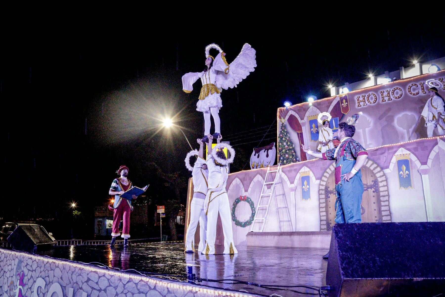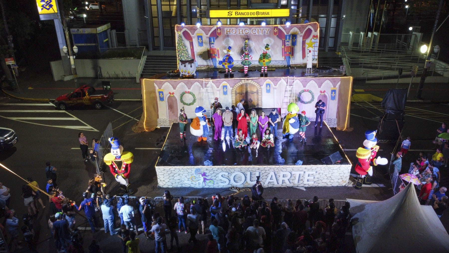 Nem mesmo a chuva que caiu no momento do evento afugentou o público. Outro ponto alto da noite foi o Espetáculo de Natal “Ho Ho City”, apresentado pelos artistas da Companhia Sou Arte, de Campo Mourão-PR, que encenaram o nascimento do Menino Jesus e foi concluído com a chegada do Papai Noel.
