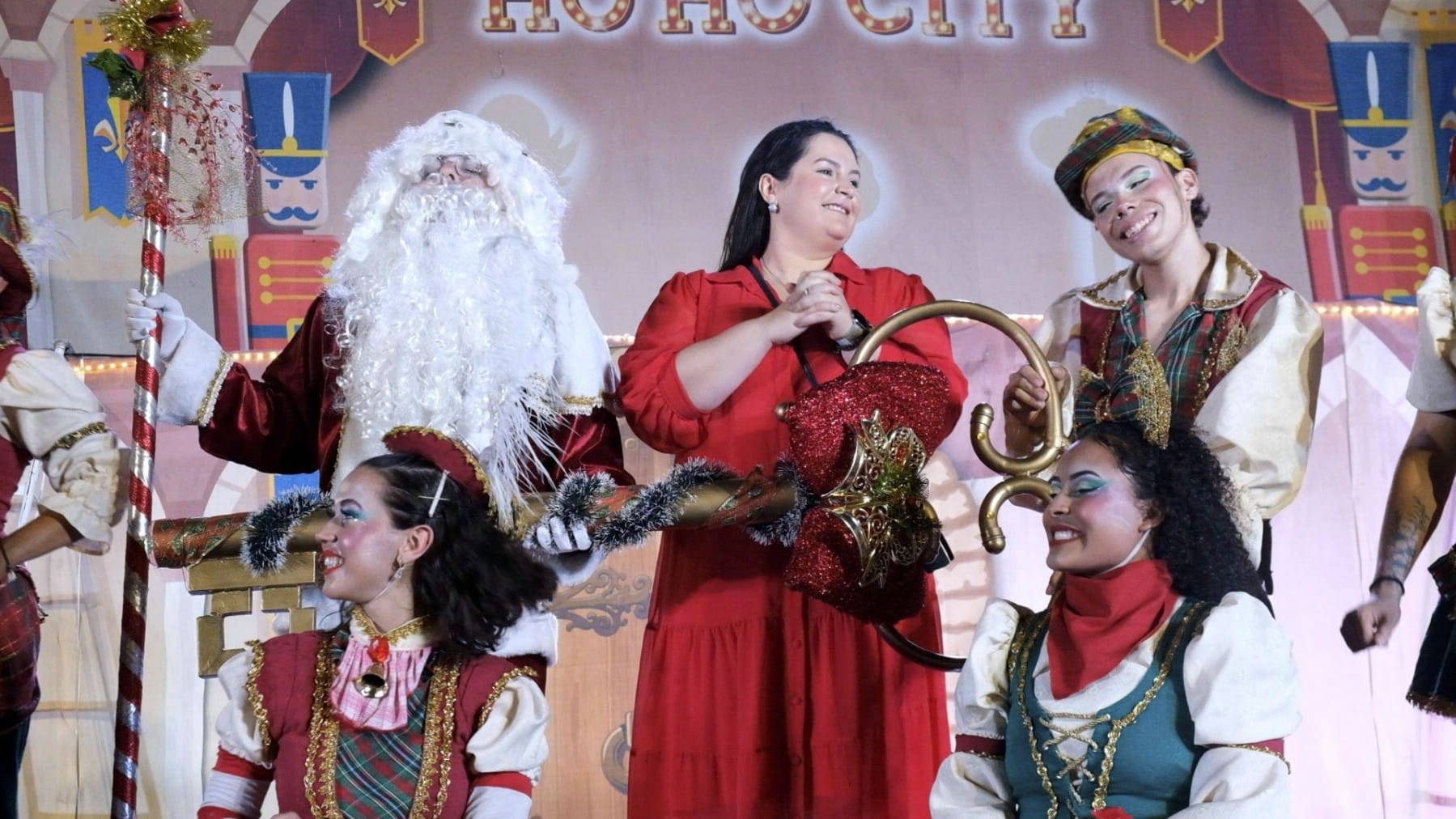 A Chefe do Executivo fez a entrega simbólica da chave da cidade para o “Bom Velhinho”. Ato que representa uma linguagem cênica para anunciar ao visitante que, além de bem vindo, ele é o “dono da casa”, até o Dia de Natal e nesse período possa abrir muitos corações para transbordar amor, fé e esperança.