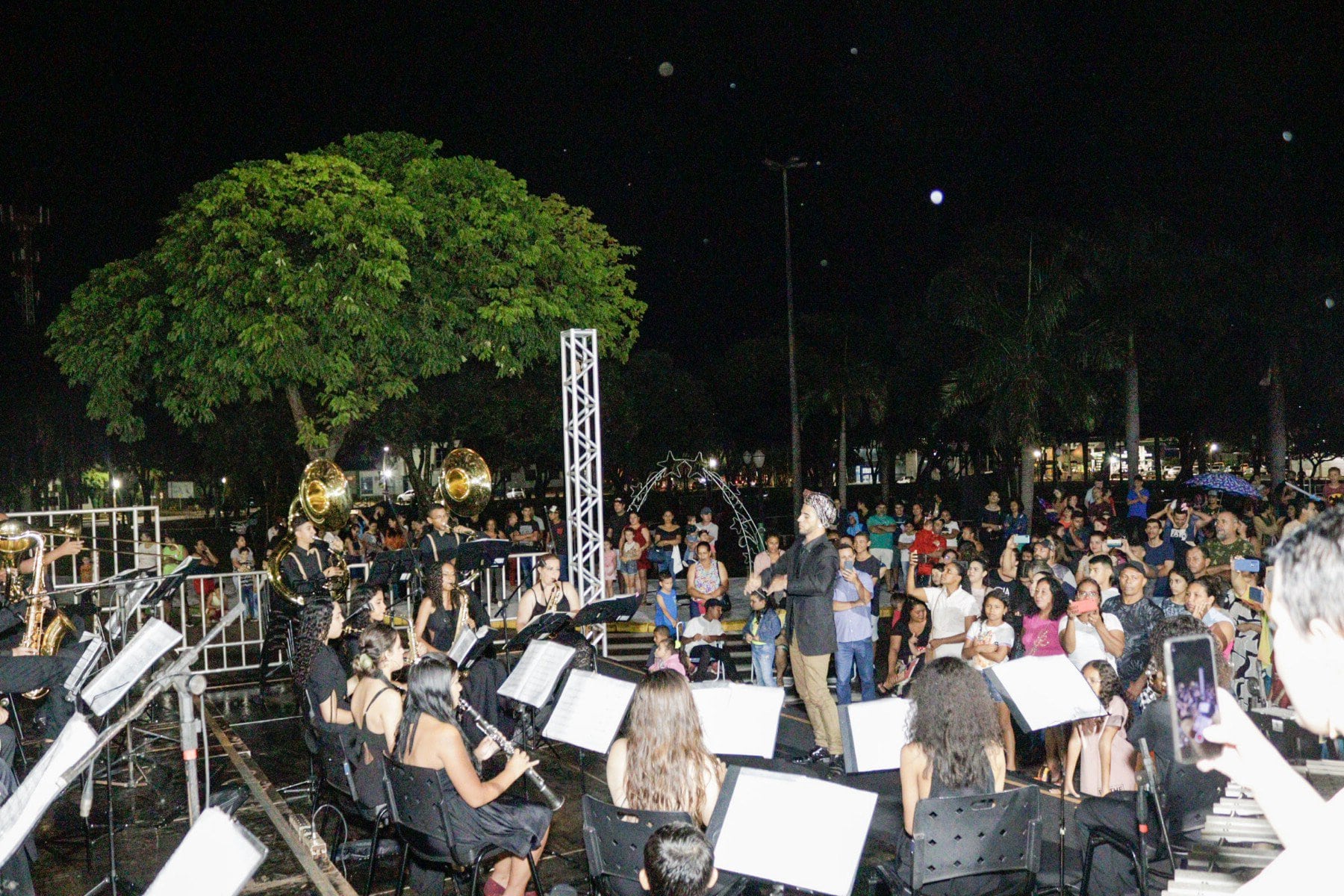 A Prefeitura de Naviraí, por meio da Fundação Cultural, abriu na noite de sexta-feira (02/12), o projeto Brilha Naviraí 2022 que marca o início das festividades do Natal no município. A solenidade contou com apresentação da Banda Marcial Tom Jobim, que encantou o público com adaptações de medleys de músicas que fizeram sucesso nas décadas de 70, 80 e 90.