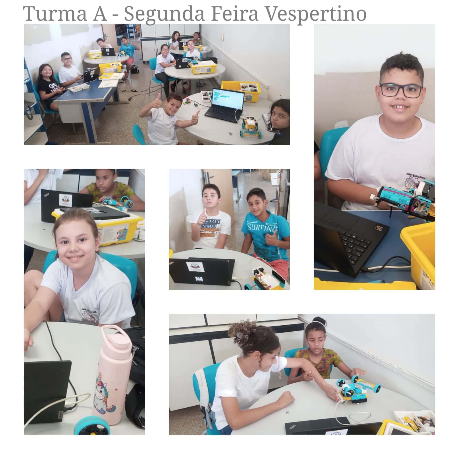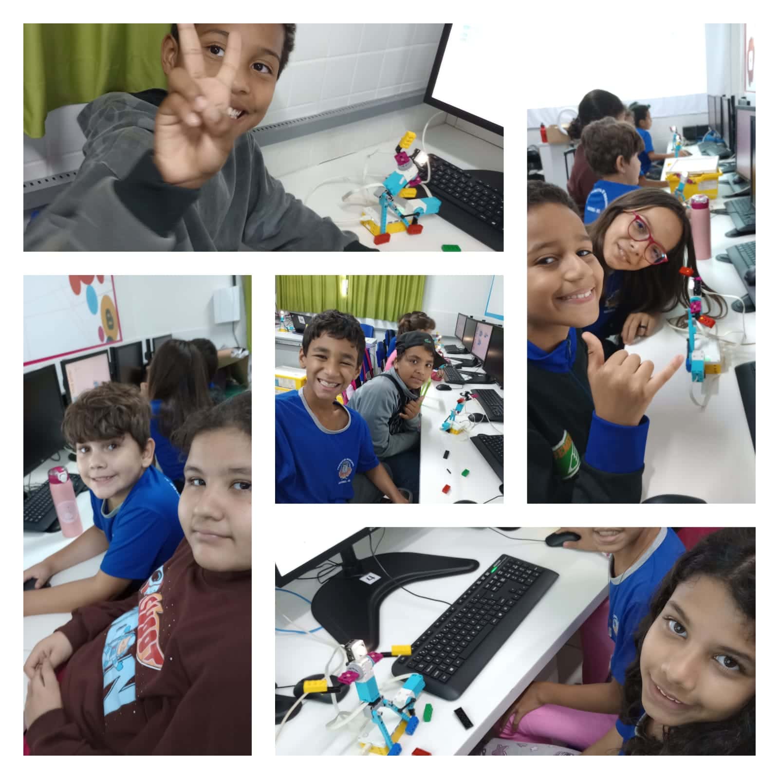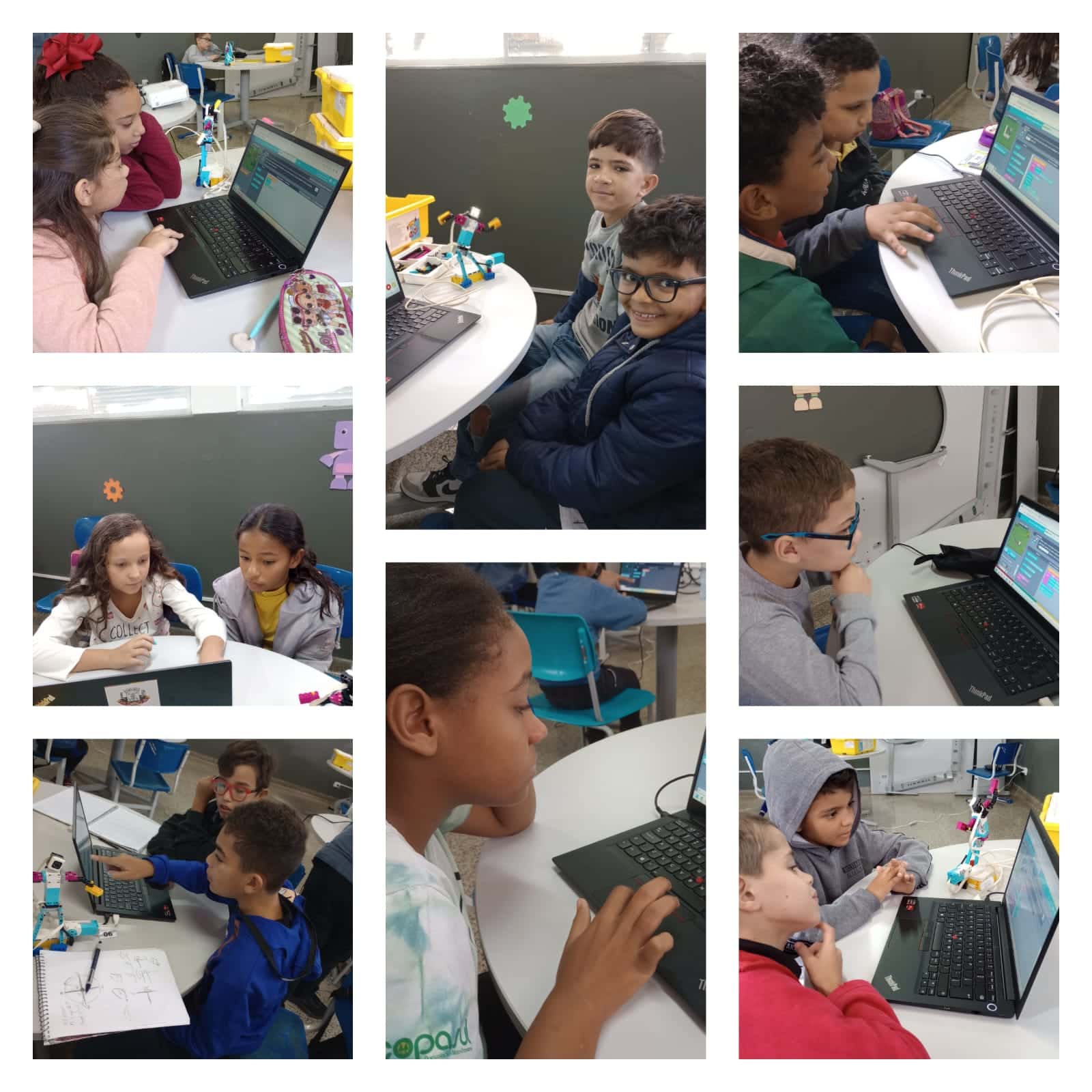 O material utilizado nas aulas, o Kit de Robótica Spike Prime, um kit por dupla, o aplicativo da Lego Education para programar, além de outros aplicativos como Scracth e sites, que ensinam programação para crianças que são propostos em aulas como práticas e construtivas, para desenvolver nos educandos o aprendizado do uso das novas tecnologias.