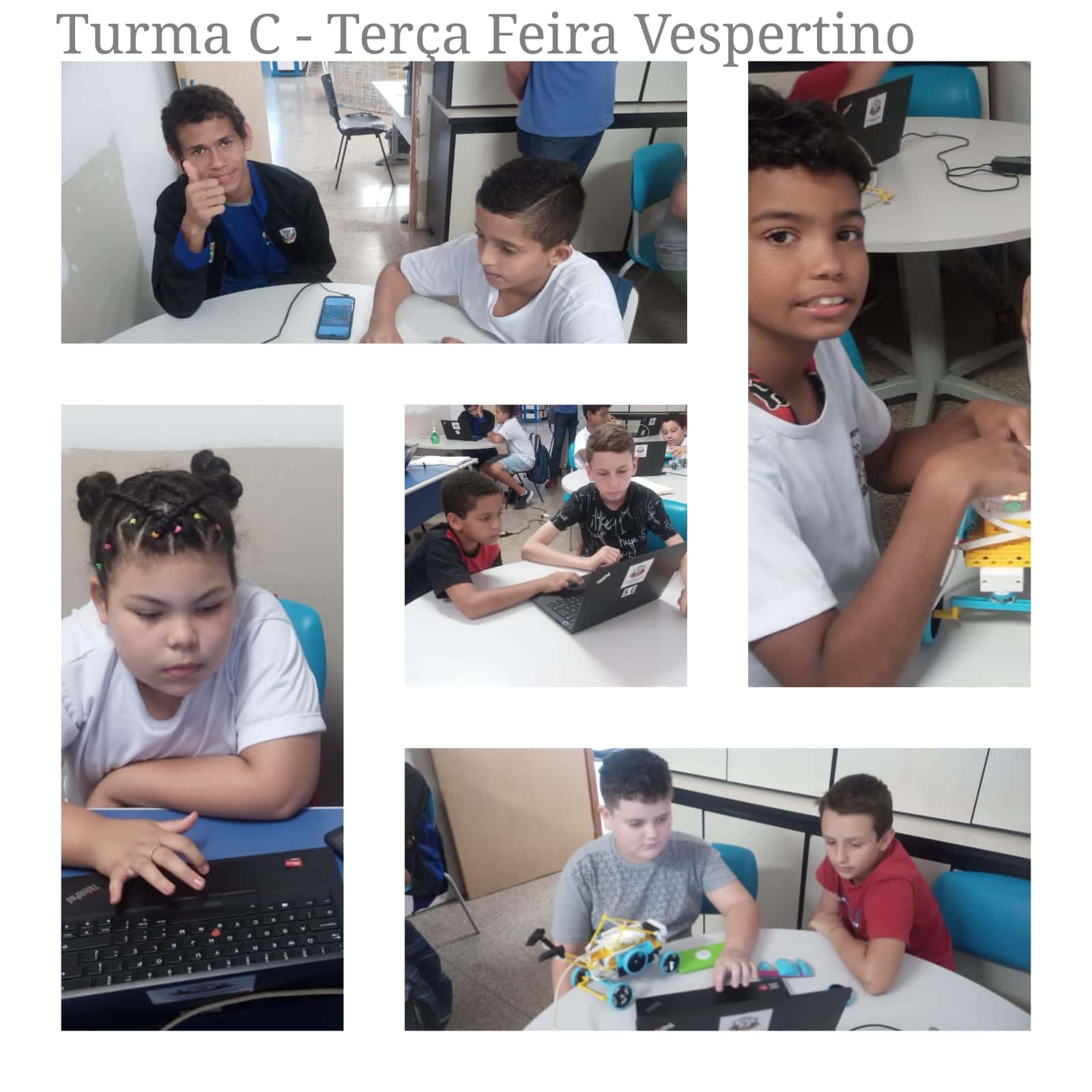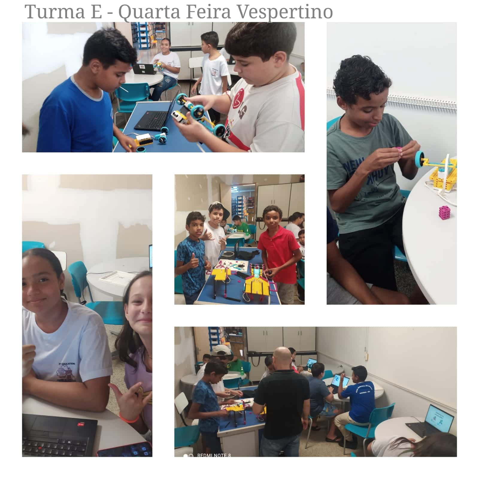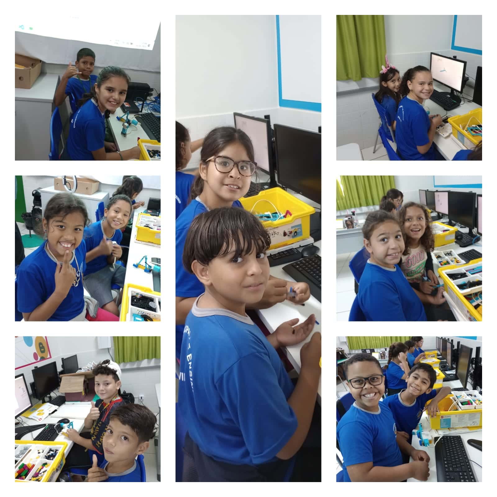 O material utilizado nas aulas, o Kit de Robótica Spike Prime, um kit por dupla, o aplicativo da Lego Education para programar, além de outros aplicativos como Scracth e sites, que ensinam programação para crianças que são propostos em aulas como práticas e construtivas, para desenvolver nos educandos o aprendizado do uso das novas tecnologias.