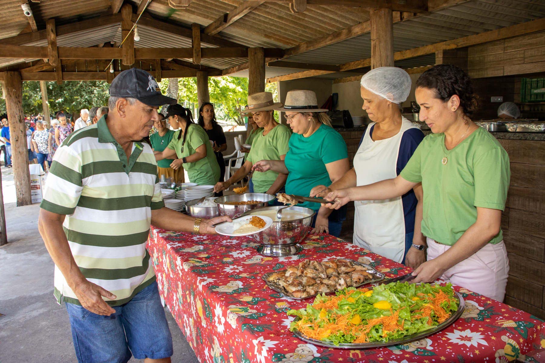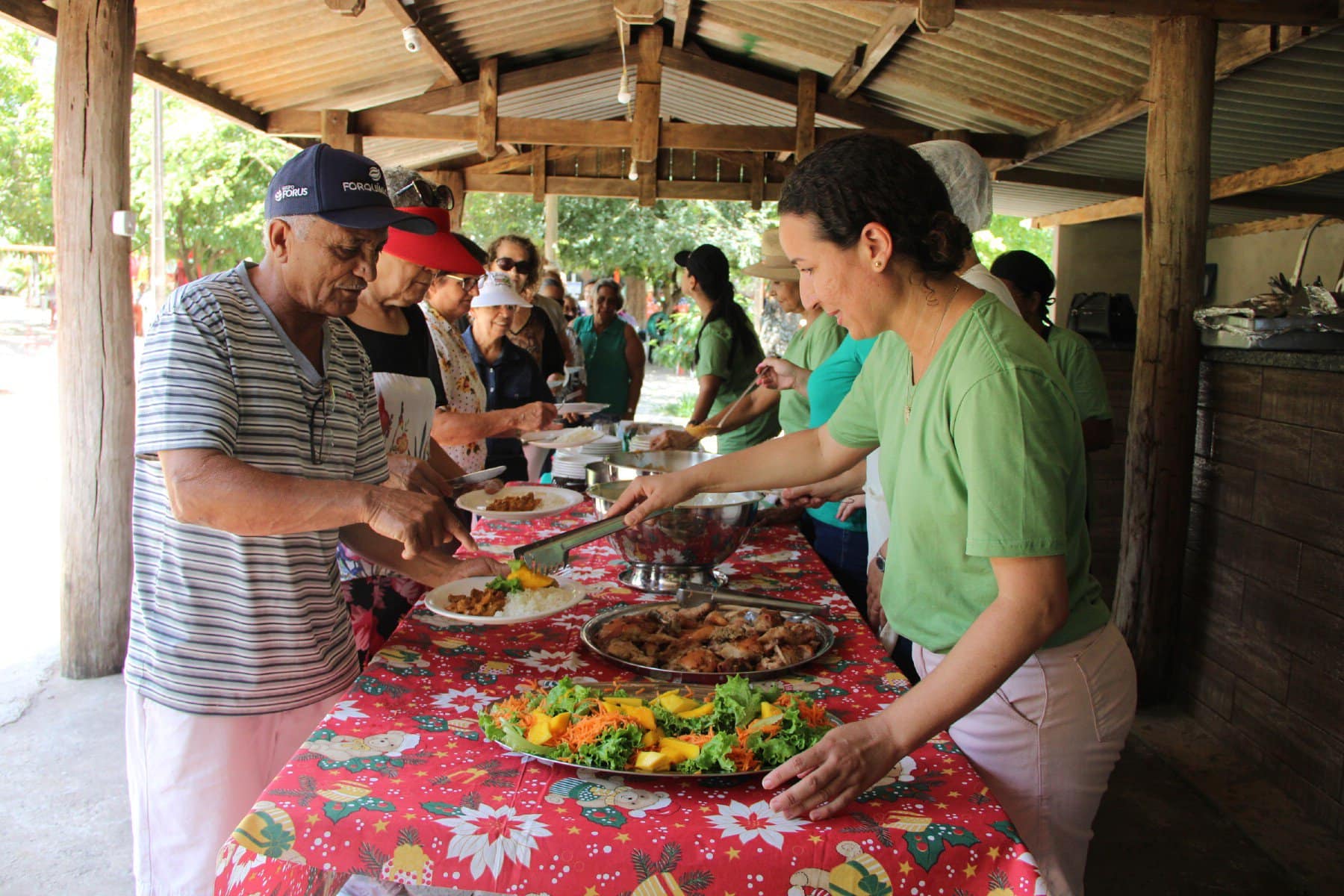 Durante a confraternização não faltou o tradicional baile dos idosos, contando com a presença das titulares da Gerência de Assistência Social, da Coordenadoria de Políticas Públicas Para as Mulheres e da Chefe de Gabinete do Paço Municipal. Dezenas de idosos atendidos semanalmente pelo SCFV Maria do Céu participaram da confraternização, que foi finalizada com almoço, entrega de panetones e a equipe de servidores da Gerência de Assistência Social desejando um Feliz Natal para todos as pessoas presentes.