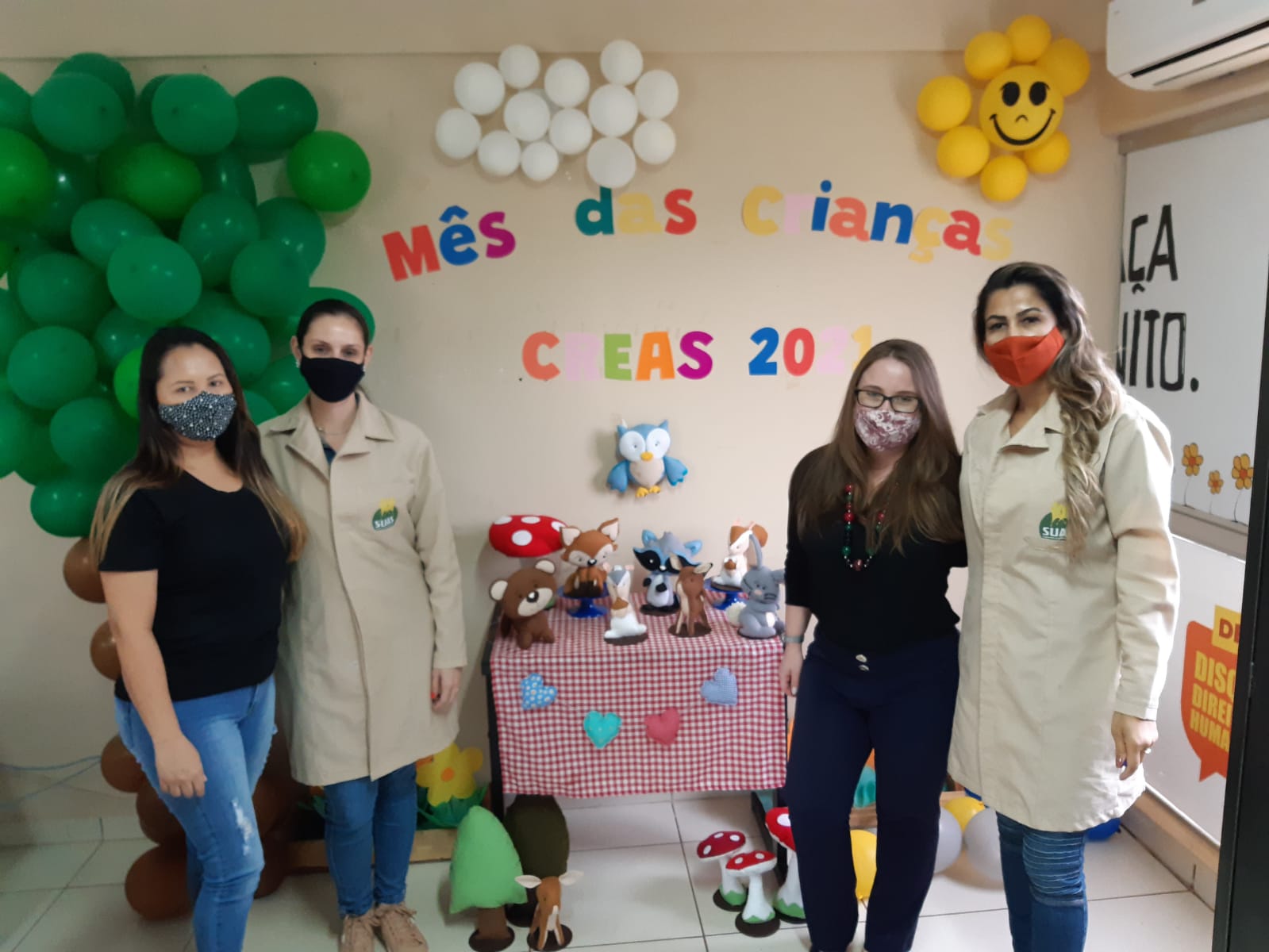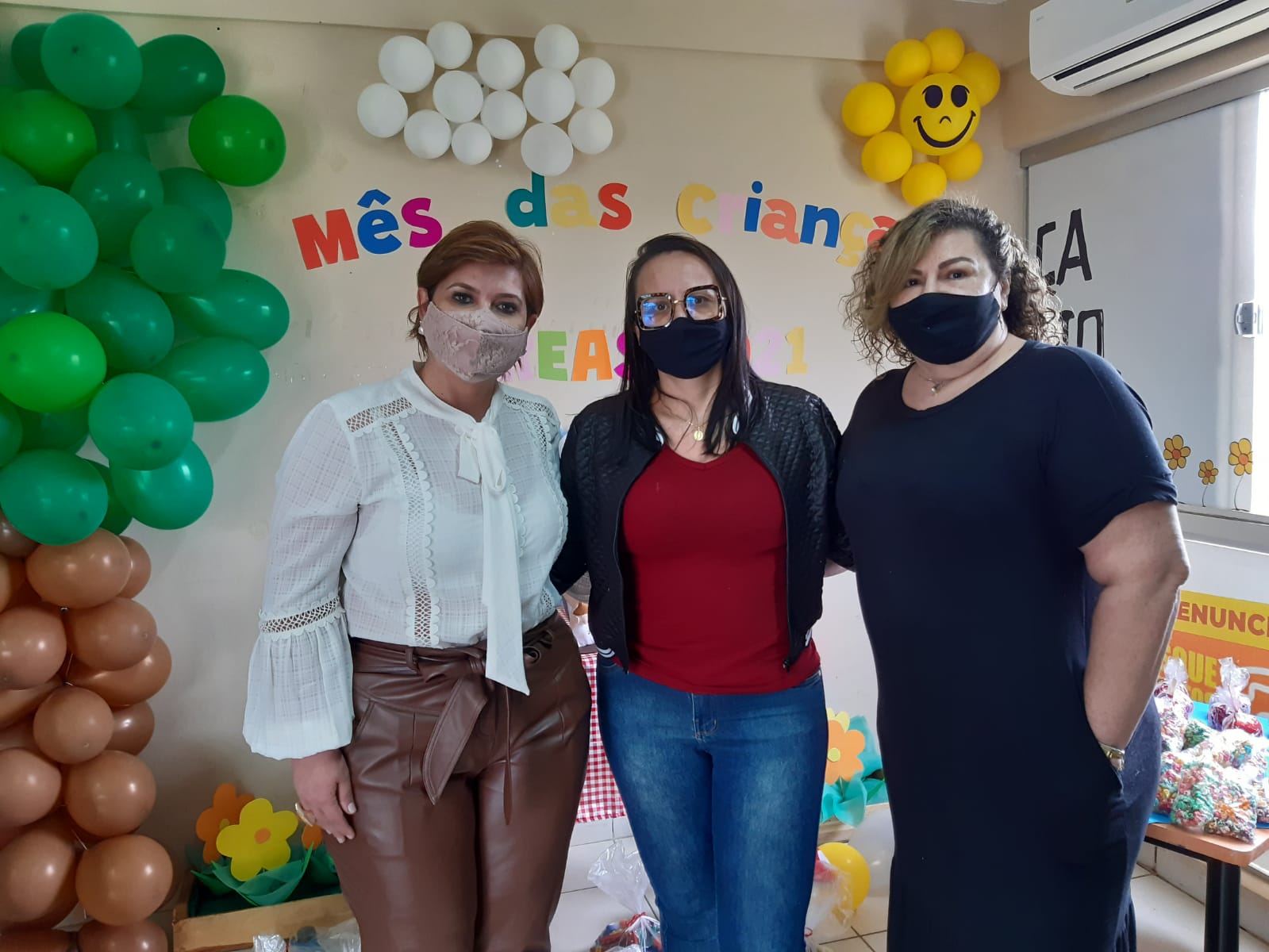 Para a realização da Semana da Criança, participaram a gerente de Assistência Social Lucinéia Pulquério Franciscatti, a Coordenadora de Políticas Públicas para as Mulheres Leila Matos, a Coordenadora do Creas Andrea Caldas e membros da Assistência Social.