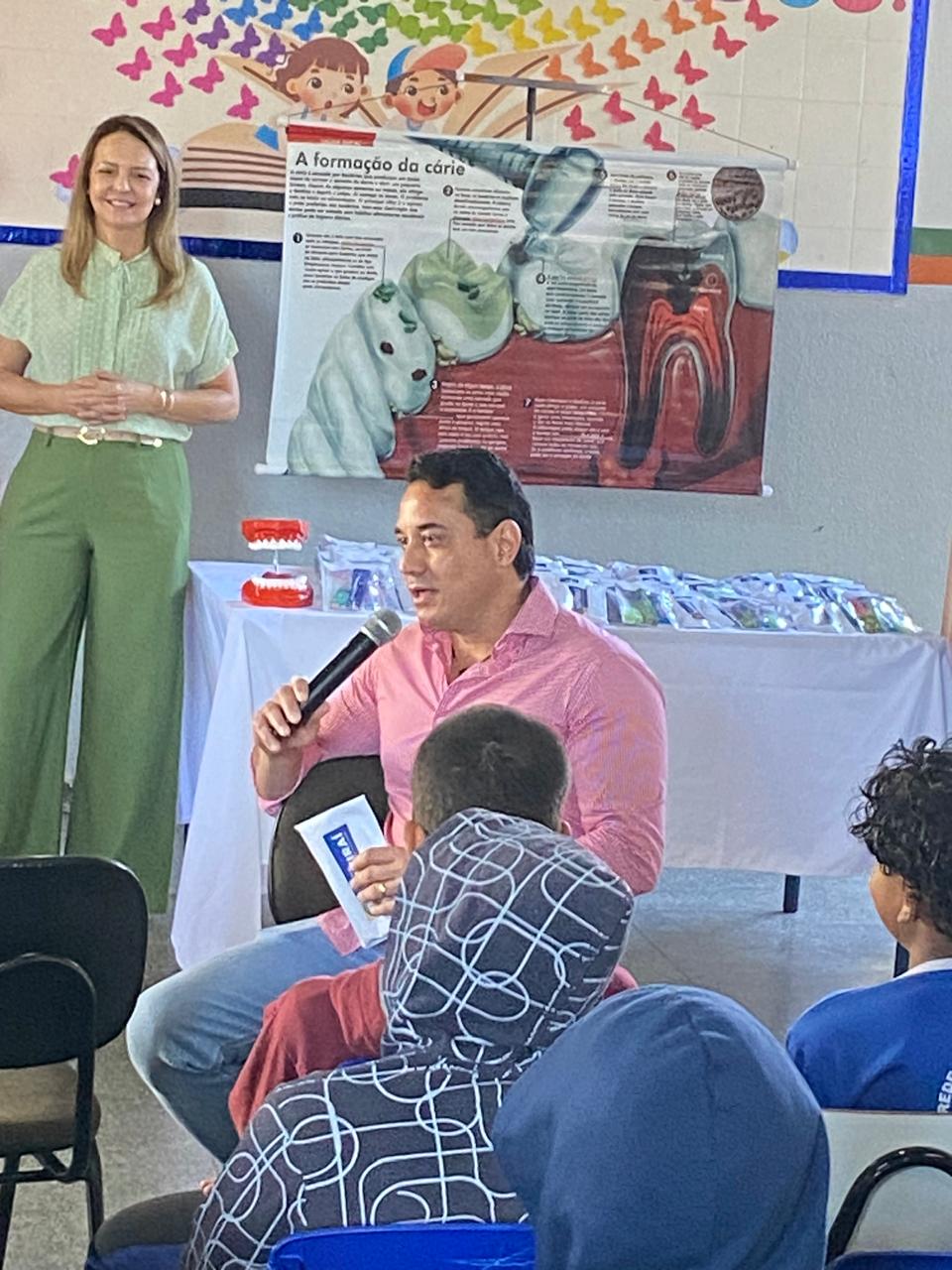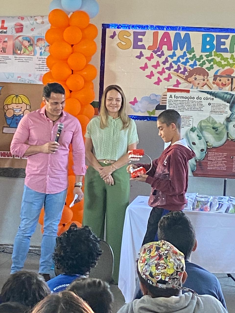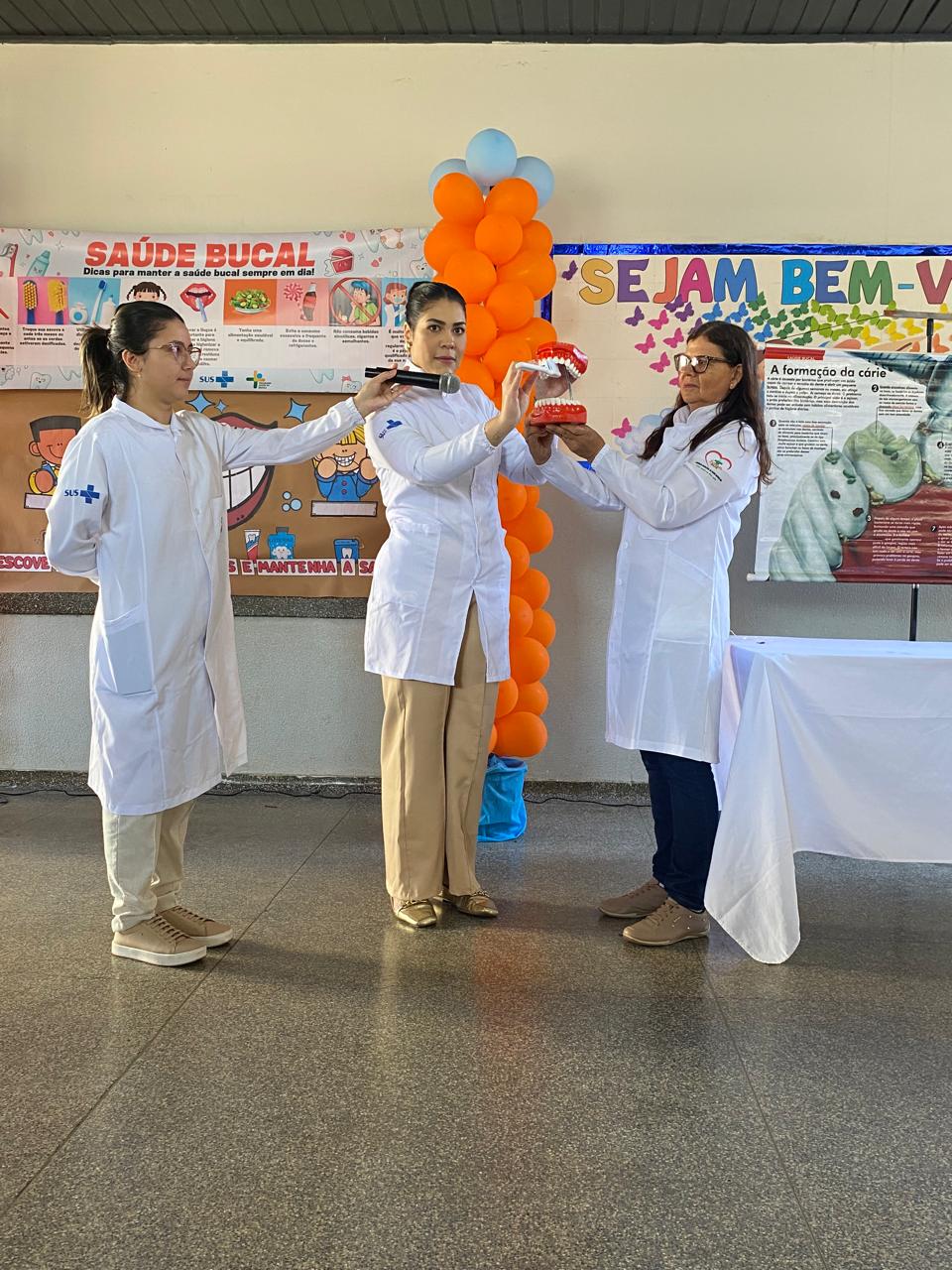 A gerente de Saúde, Dra. Angela Cristina Castro Lopes, ressaltou o papel da ação na prevenção de doenças bucais desde cedo. O evento também contou com a presença do gerente de Educação André Santana Vieira, da coordenadora técnica de saúde bucal Dra. Katia Akemi Ujihara Salem e do diretor da escola anfitriã, professor Everton Marcelino de Araújo.