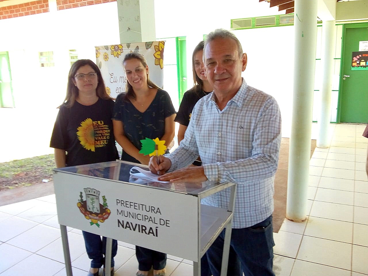 O prefeito Dr Izauri de Macedo inaugurou na manha desta quinta-feira a primeira escola de tempo integral do município de Naviraí e durante a solenidade recebeu do primeiro suplente de senador José Chagas a promessa de conseguir junto ao senador Nelsinho Trad a liberação de recursos federais para a construção de uma quadra coberta.