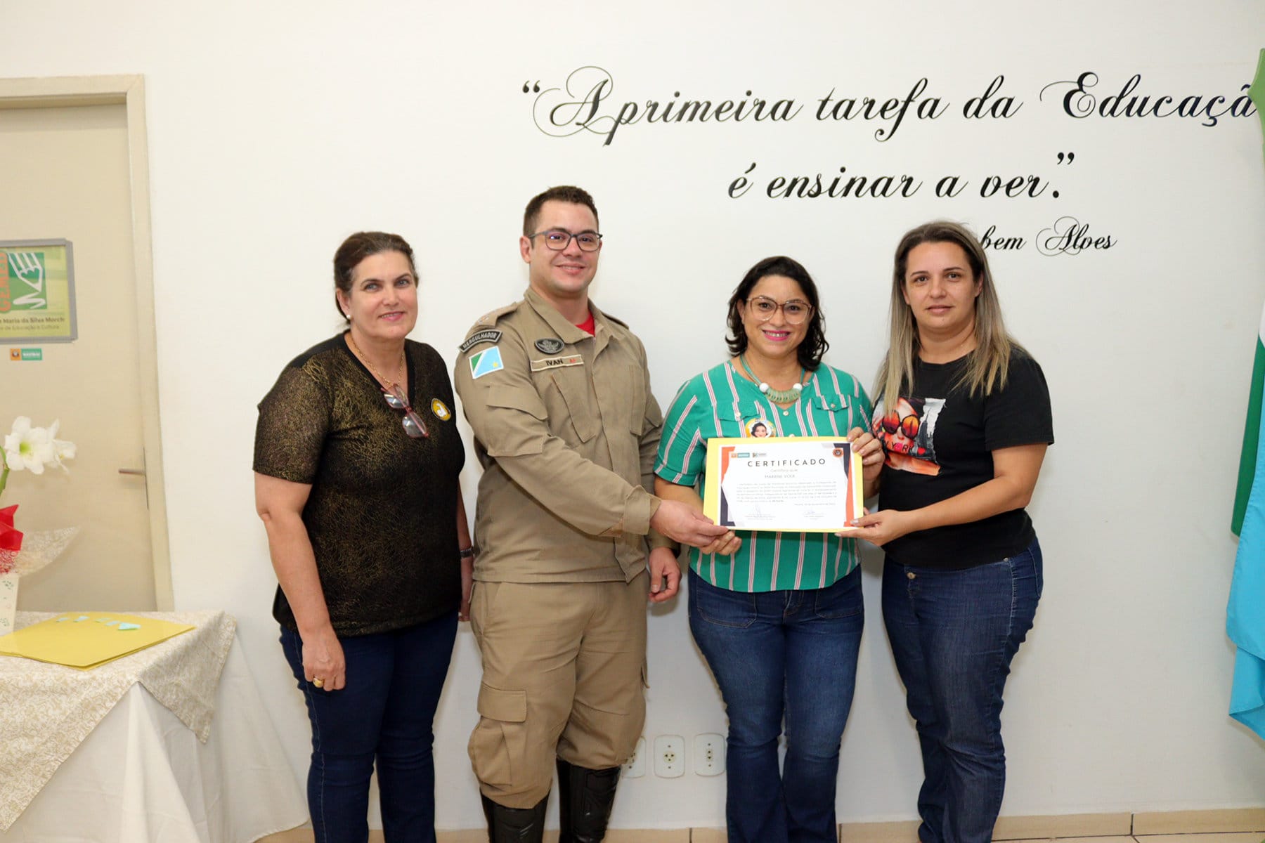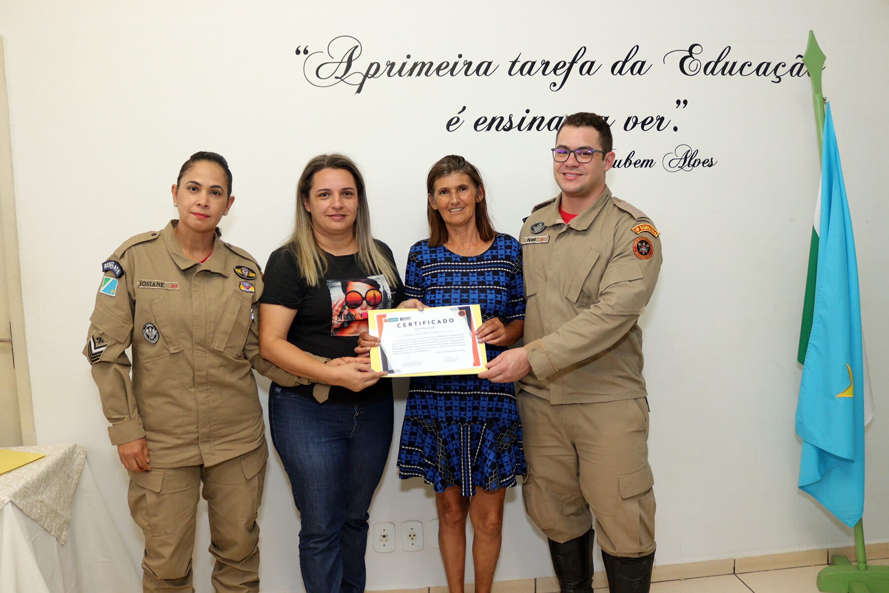 A entrega dos certificados ocorreu nas dependências da Gerência de Educação e Cultura, contando com a presença da titular da pasta professora Tatiane Morch, do Comandante do 6º Subgrupamento do Corpo de Bombeiros Militar Independente de Naviraí – Capitão QOBM Ivan Avila Teixeira e de diretores e professores da unidades escolares que participaram do curso.