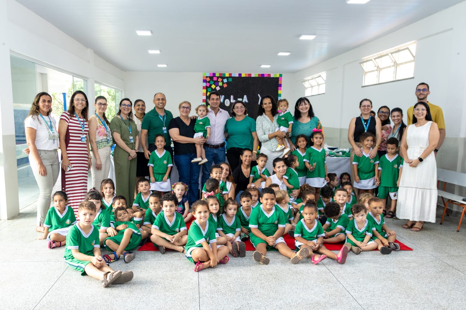 A entrega simbólica de kits de materiais escolares foi realizada no CIEI Professora Azena Ricco de Freitas e contou com a presença de alunos, professores e funcionários da escola.