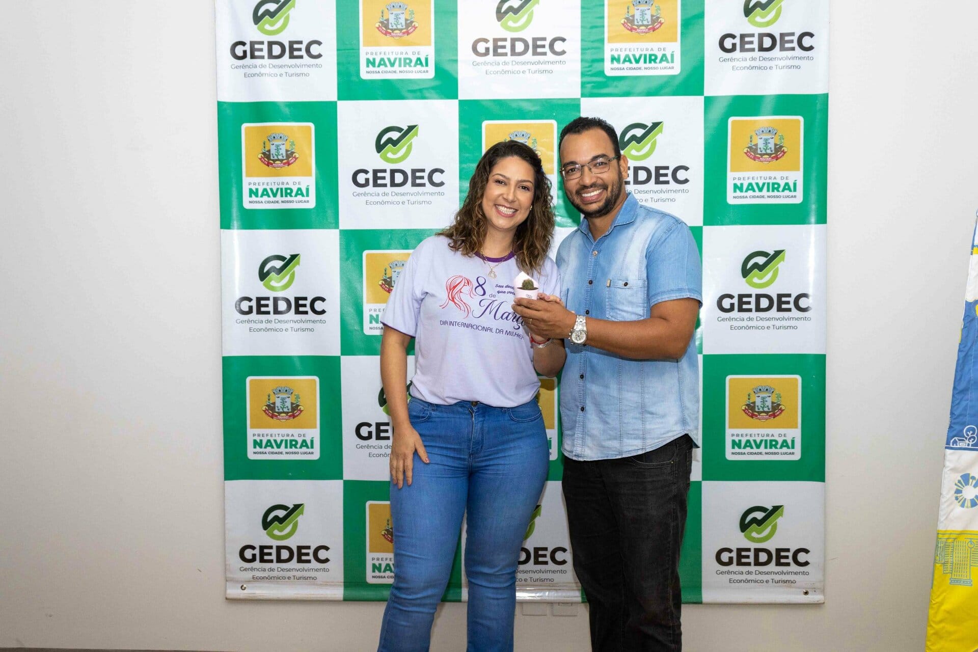 Juntas, a Gerência de Desenvolvimento Econômico (GEDEC) e a Gerência Municipal de Meio Ambiente (GEMA) promoveram na manhã desta quarta-feira (08/03), uma solenidade comemorativa do Dia Internacional da Mulher. Além de servidoras das duas pastas e de outras gerências da Prefeitura de Naviraí, juntamente com convidadas representantes do seguimento empresarial, comercial, agricultura familiar, Agraer e da sociedade civil, participaram da homenagem.