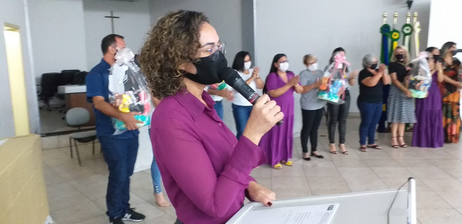 Coordenadora pedagógica da GEMED, Rosângela Dutra, idealizadora do projeto de Consciência Fonológica, destacou o sucesso das oficinas e agradeceu o apoio de todos os professores, coordenadores pedagógicos e diretores das escolas. Foto: Roney Minella