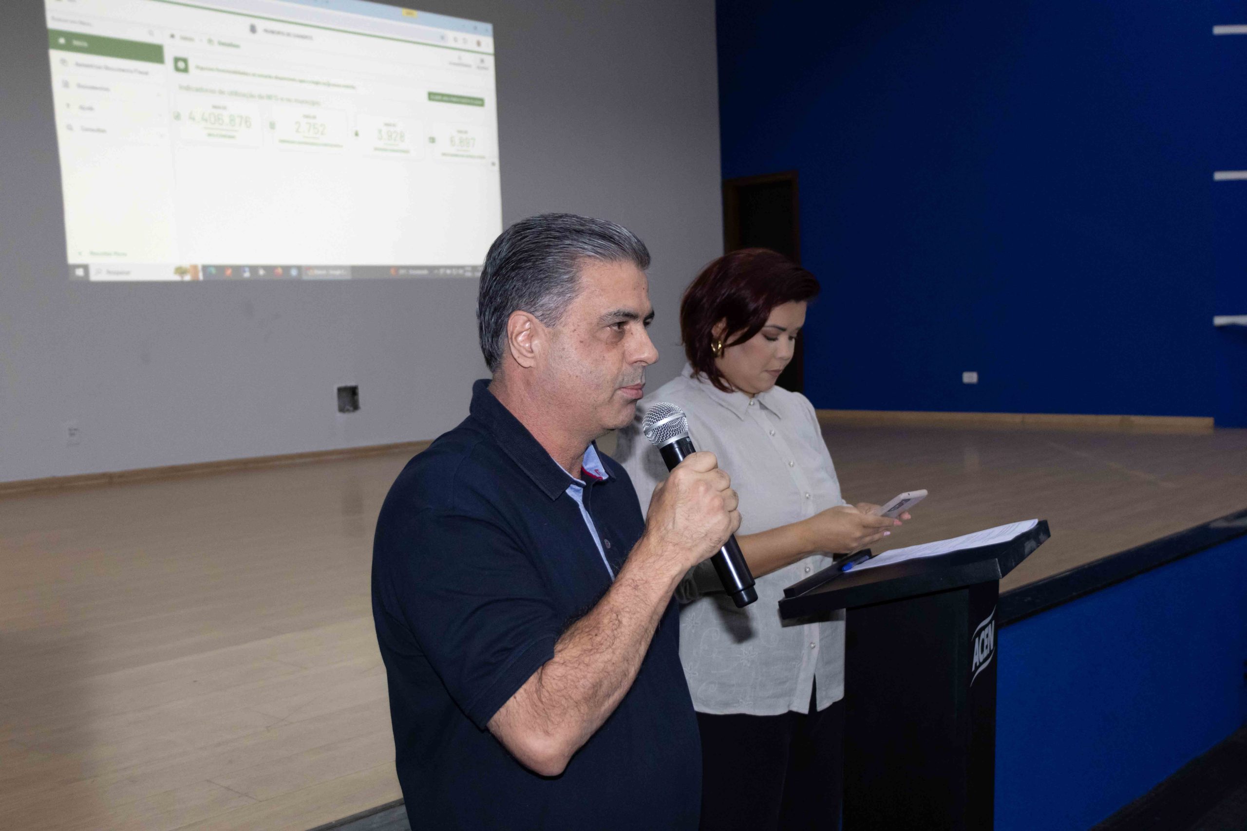 Presidente da Associação Comercial, Natael Silva, destaca a importância do treinamento para garantir conhecimento sobre o modelo de emissão das futuras notas fiscais eletrônicas. ©Roney Minella/PMN