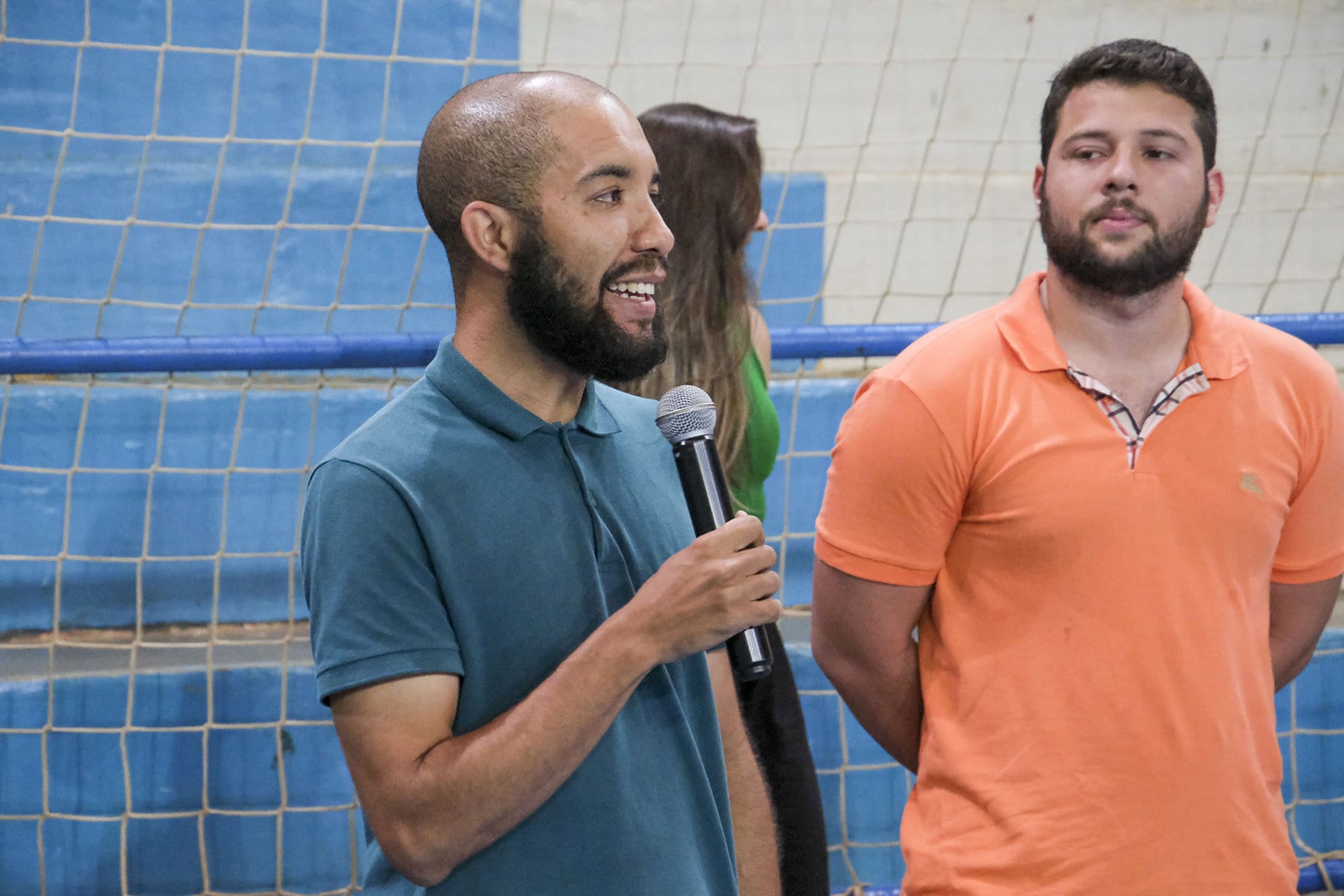 Gerente de Esportes e Lazer da Prefeitura de Naviraí abre a Copa Gospel de Futsal (Foto: Júlio Fernando)