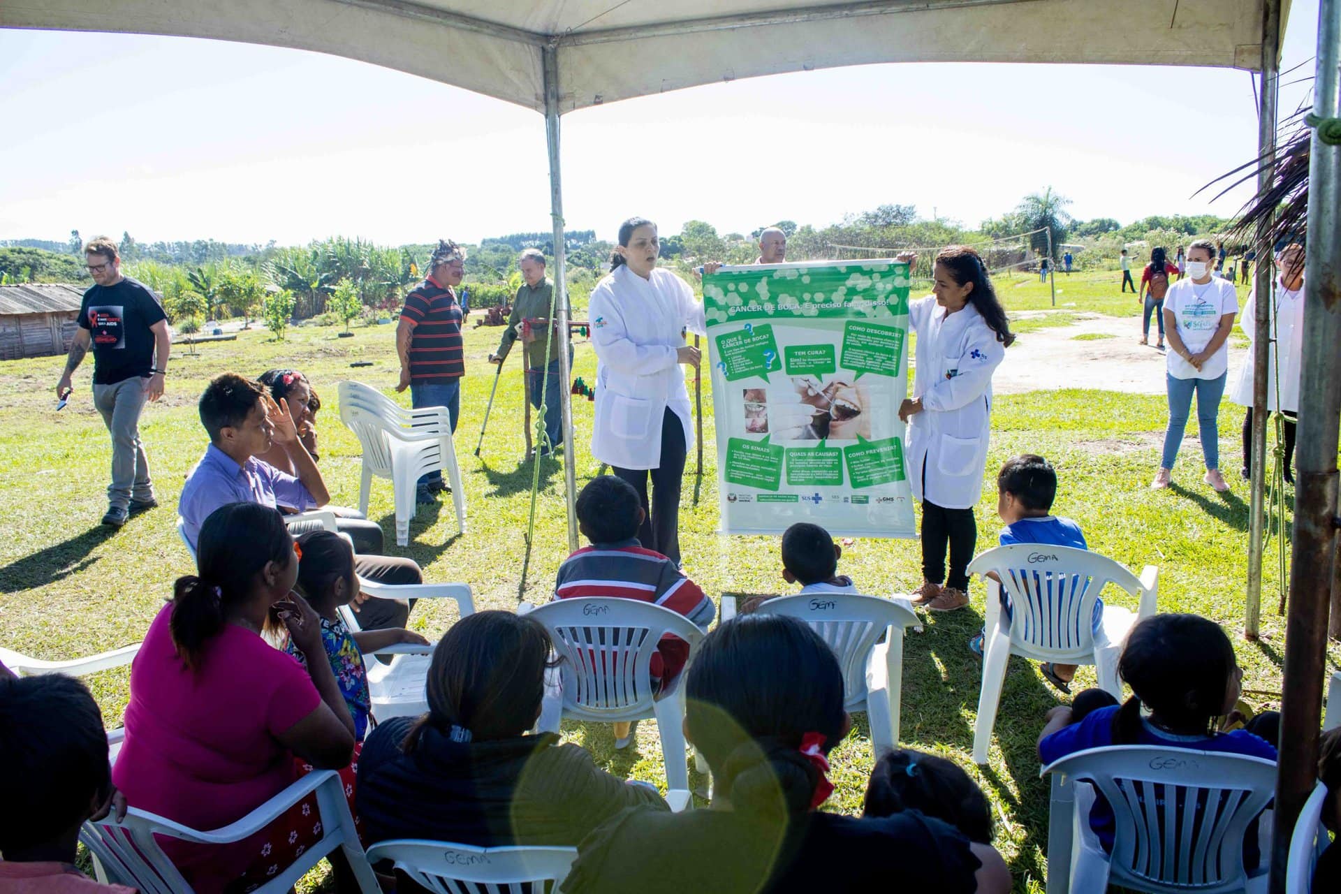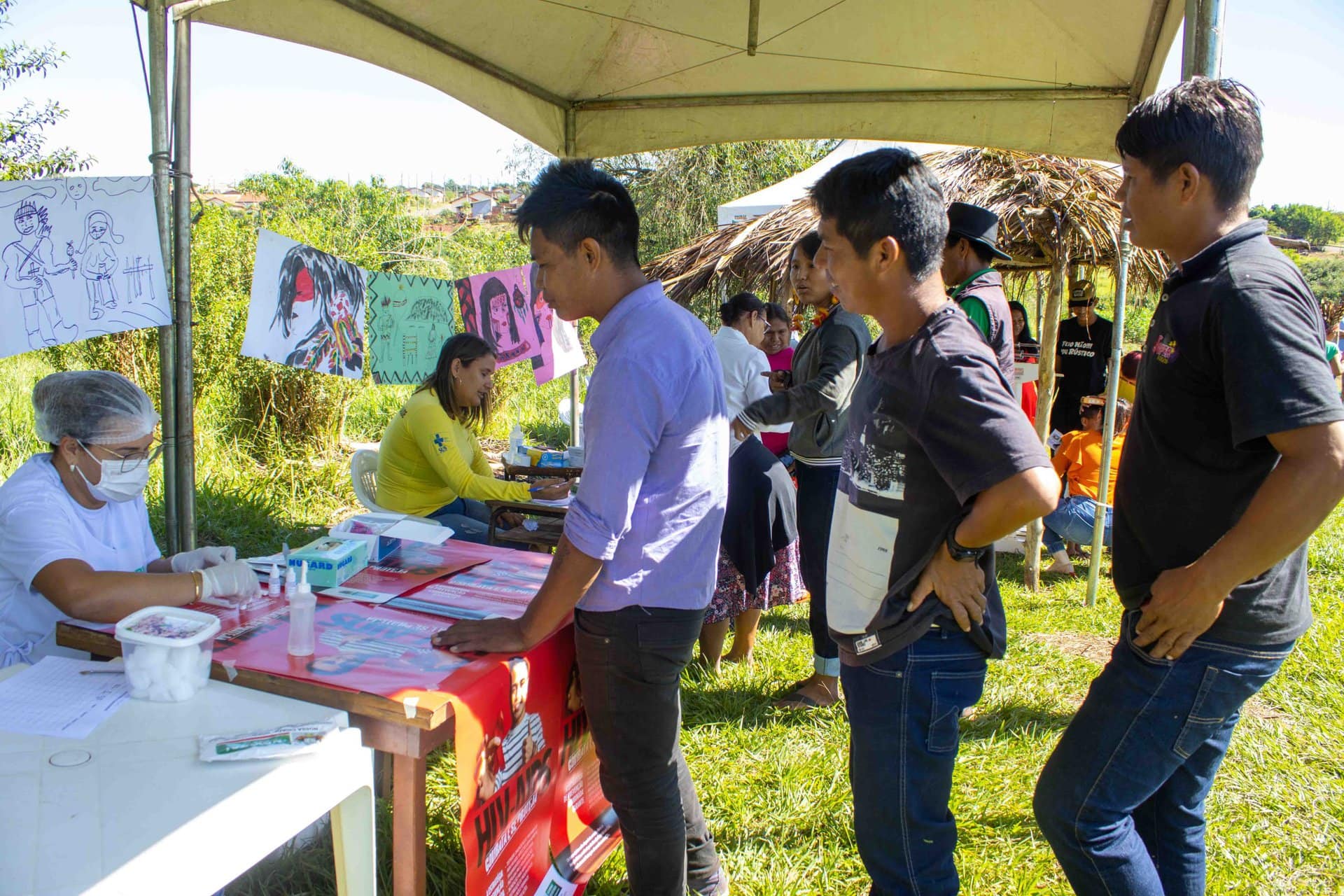 As ações de promoção à saúde que foram desenvolvidas no dia 19 de abril, em comemoração ao Dia dos Povos Indígenas pela Gerência de Saúde na comunidade indígena Mborevi y, foi concluída com verificação de pressão arterial e glicemia, antropometria de adultos e crianças (pesagem e medição de altura), teste rápido de HIV, sífilis e hepatites B e C.
