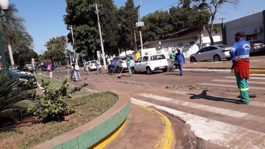 Atendendo determinação do prefeito Dr. Izauri Macedo, o gerente de Serviços Urbanos, Gesse Andrade e Marcelo, coordenador de equipes de ações como limpeza de terrenos, corte de grama nos canteiros centrais, varrição de ruas e avenidas, pintura de faixas e meio fio, bem como, a troca constante de lâmpadas queimadas.