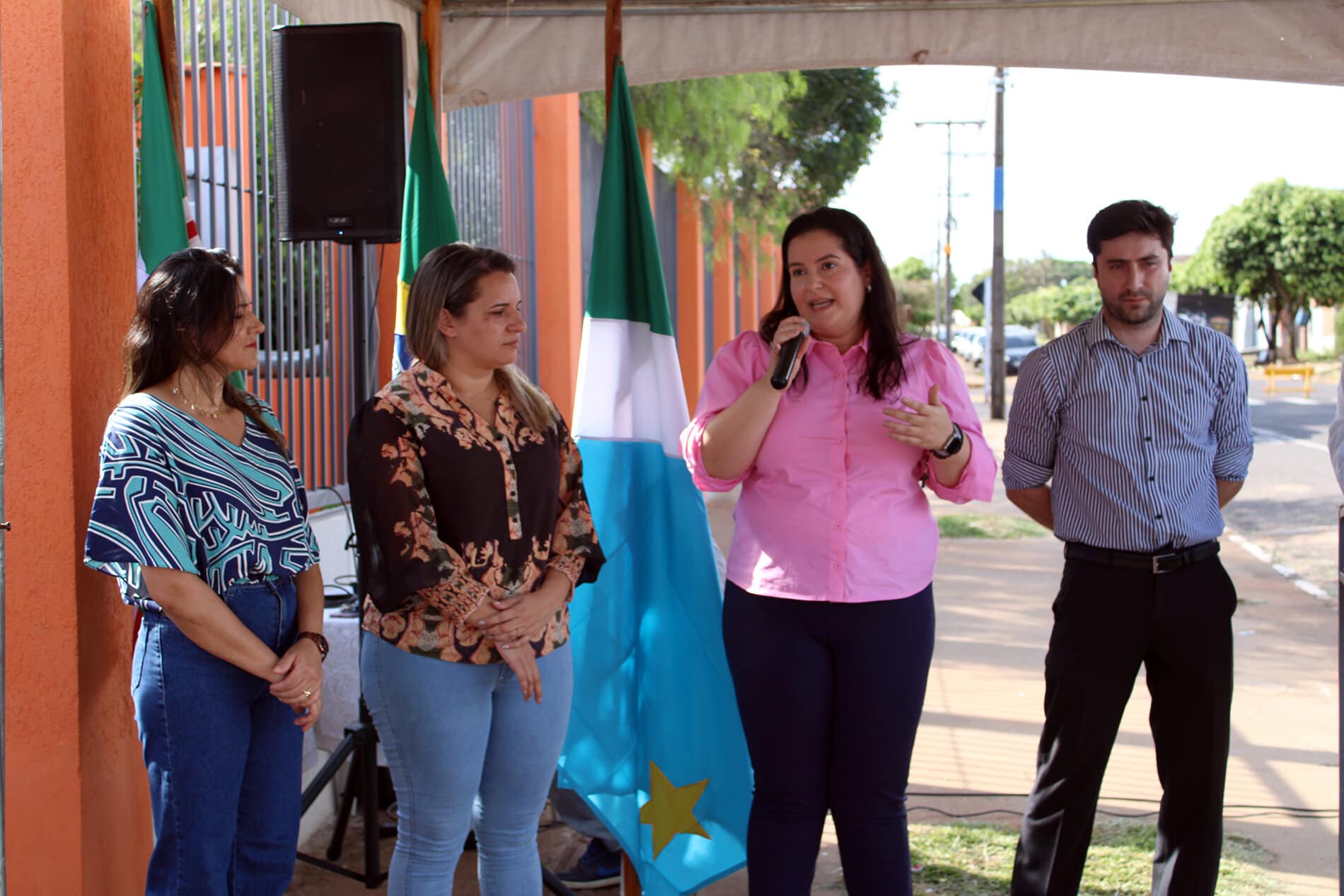 A solenidade contou com a presença de várias autoridades, entre as quais, do representante do Poder Legislativo, o vereador Daniel Moretto – filho da primeira diretora da Escola José Martins Flores, a professora aposentada Sandra Moretto Siqueira.