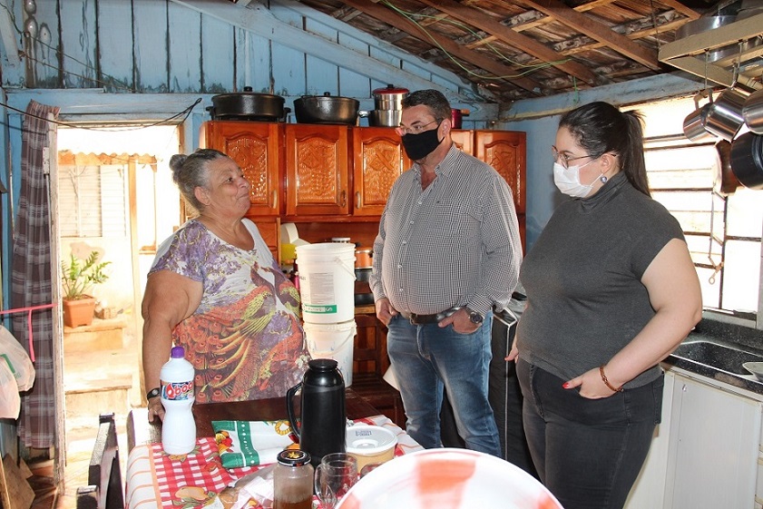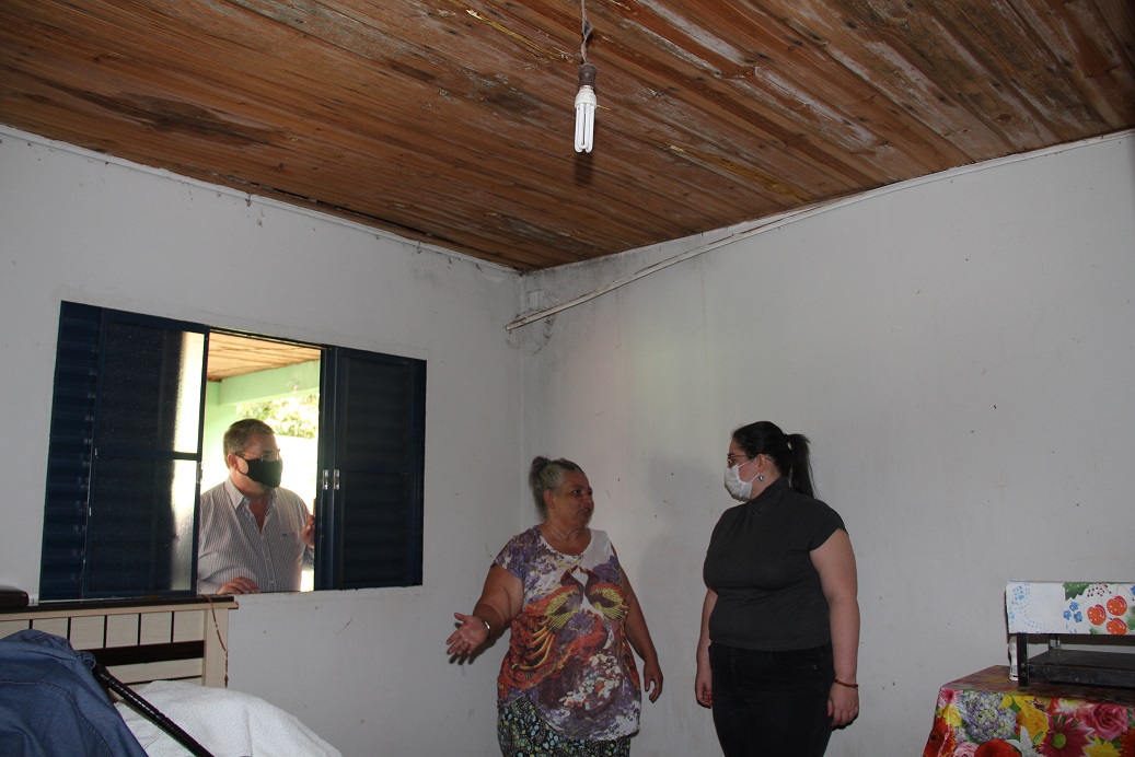 Durante visita à dona de casa Solange Alves, a prefeita Rhaiza Matos (à direita) ouve relatos da idosa que viveu momentos de pânico durante a tempestade e, nesta terça-feira agradeceu o apoio recebido da Administração Municipal. Foto: Roney Minella