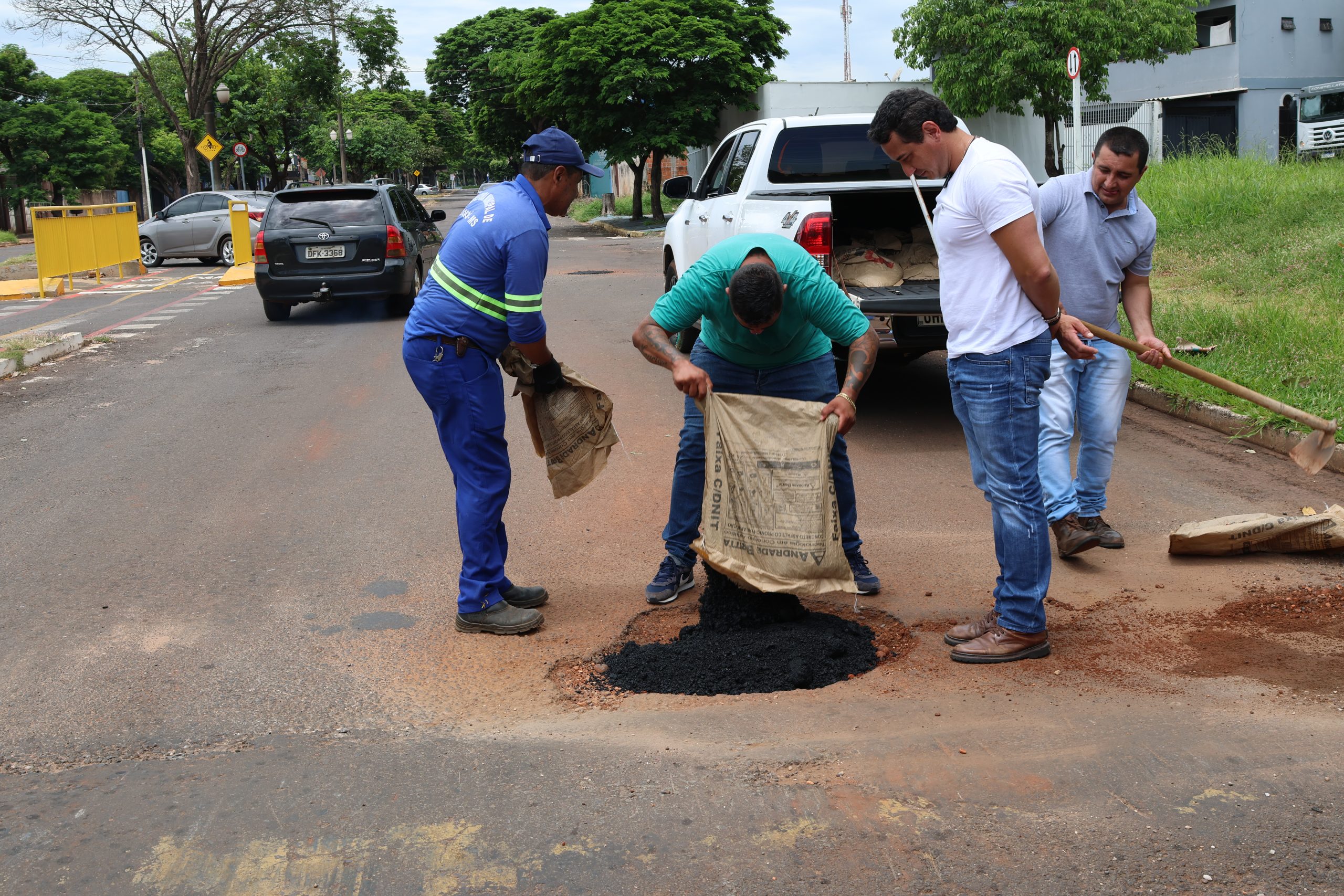 O tapa-buracos é uma medida paliativa, porém necessária – frisou o Chefe do Executivo que tem como meta uma Administração “4 D”: Diálogo, Determinação, Desenvolvimento e Dignidade.