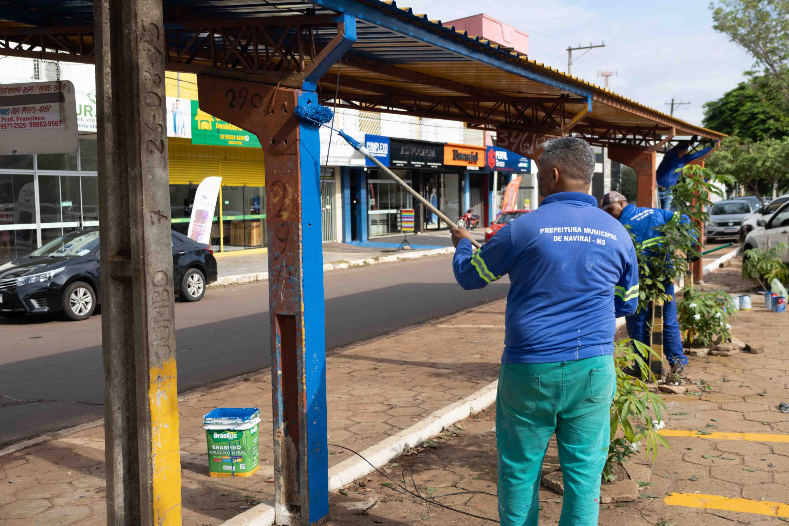 Mais uma ação está sendo executada pelo Governo de Naviraí em benefício da população. Desta vez, as equipes das gerências de Serviços Públicos e do Núcleo Municipal de Trânsito estão atuando na completa revitalização dos pontos de táxis existentes no centro da cidade.