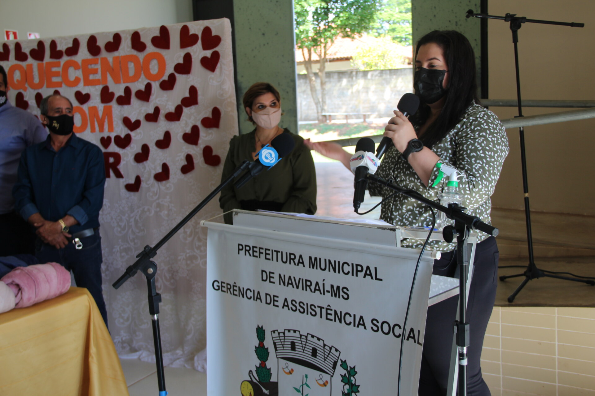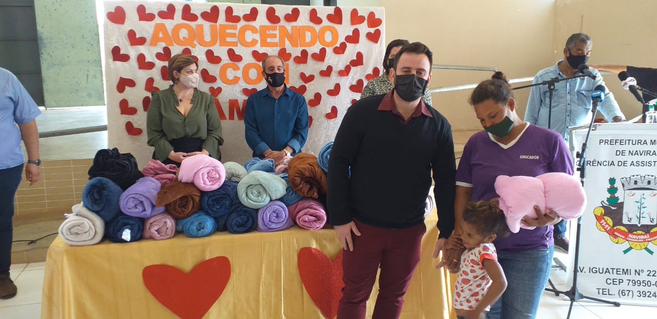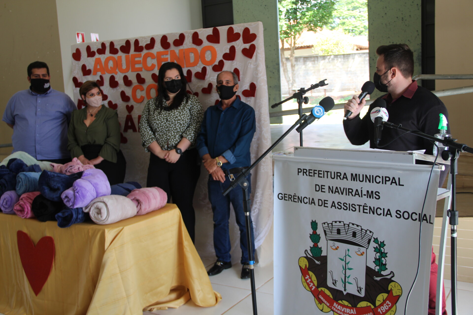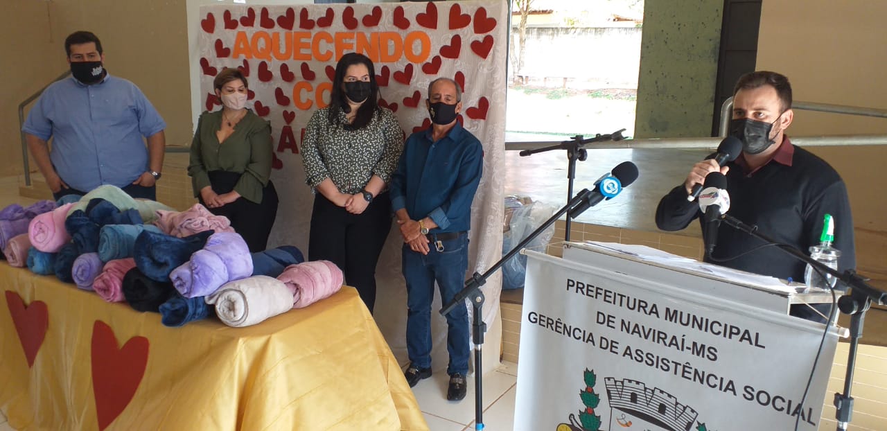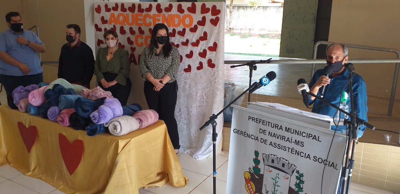 A solenidade no Centro de Convivência é o ponto alto do projeto “Aquecendo com Amor” que está sendo desenvolvido pela Assistência Social de Naviraí. “Nesta ação com o Governo do Estado estamos entregando 1.046 cobertores, ajudando as famílias a enfrentarem o intenso frio deste inverno. Fizemos questão de participar deste evento para estender a mão amiga às pessoas que mais necessitam de apoio do poder público municipal”, frisou a prefeita Rhaiza Matos.