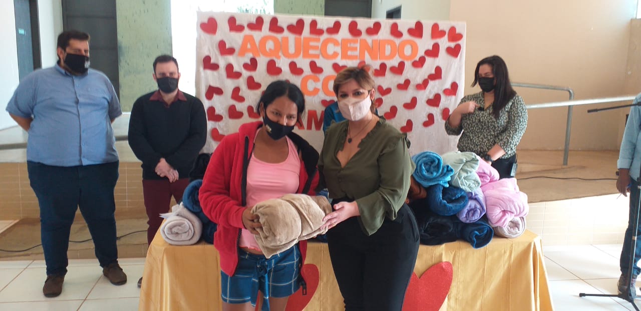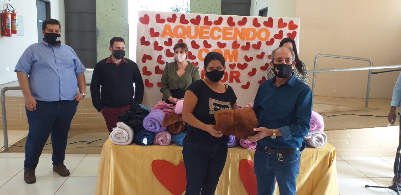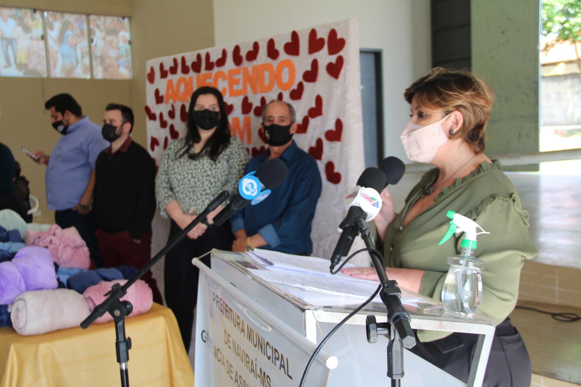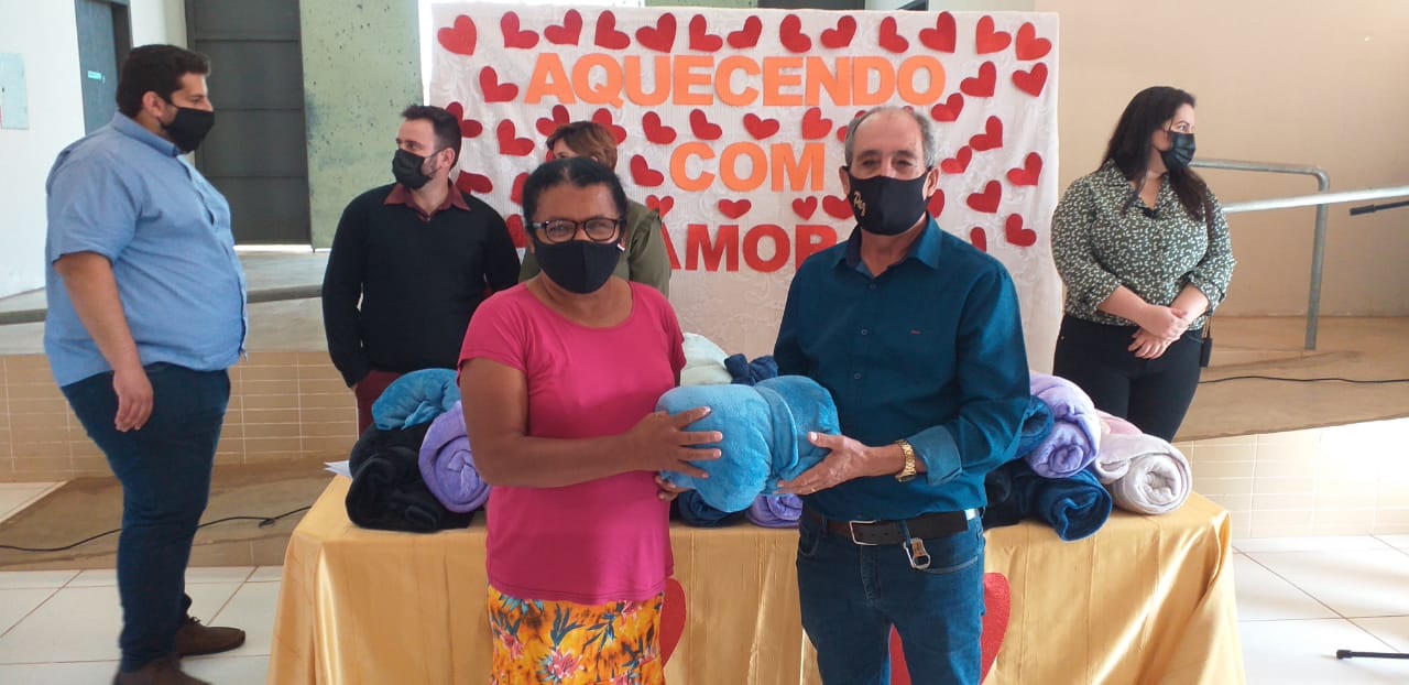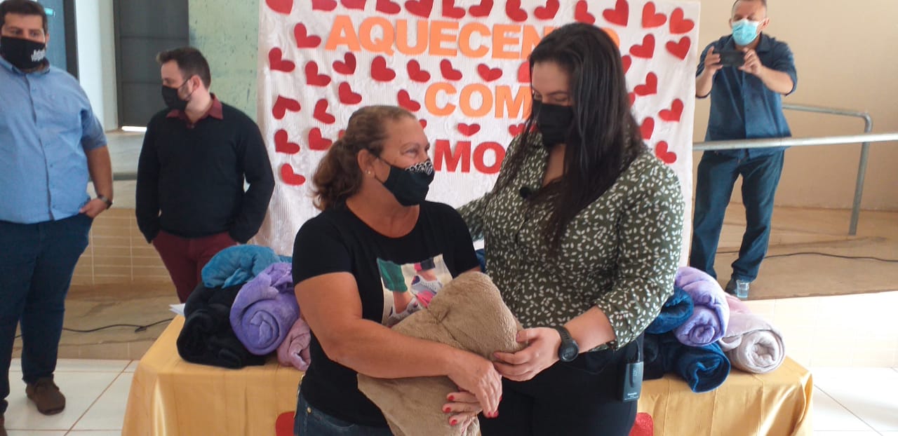 A solenidade no Centro de Convivência é o ponto alto do projeto “Aquecendo com Amor” que está sendo desenvolvido pela Assistência Social de Naviraí. “Nesta ação com o Governo do Estado estamos entregando 1.046 cobertores, ajudando as famílias a enfrentarem o intenso frio deste inverno. Fizemos questão de participar deste evento para estender a mão amiga às pessoas que mais necessitam de apoio do poder público municipal”, frisou a prefeita Rhaiza Matos.
