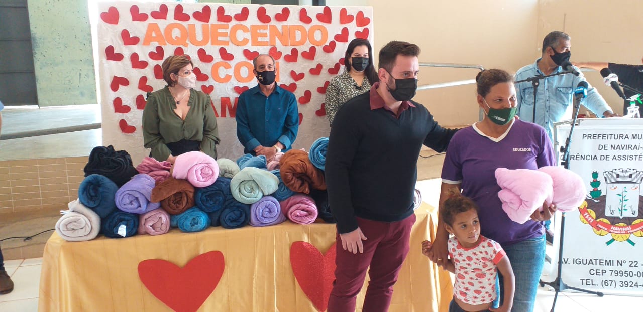 Todos os anos, a Secretaria de Estado de Assistência Social faz a entrega de cobertores para os municípios. Este ano não foi diferente e numa articulação da prefeita Rhaiza Matos, Naviraí viabilizou mais de mil cobertores. “Milhares de famílias estão sendo contempladas com esta importantíssima ação social da Prefeitura e do Governo do Estado. Parabéns a todos os envolvidos nesta conquista”, disse o representante do governador do Estado José Goulart (Casé).