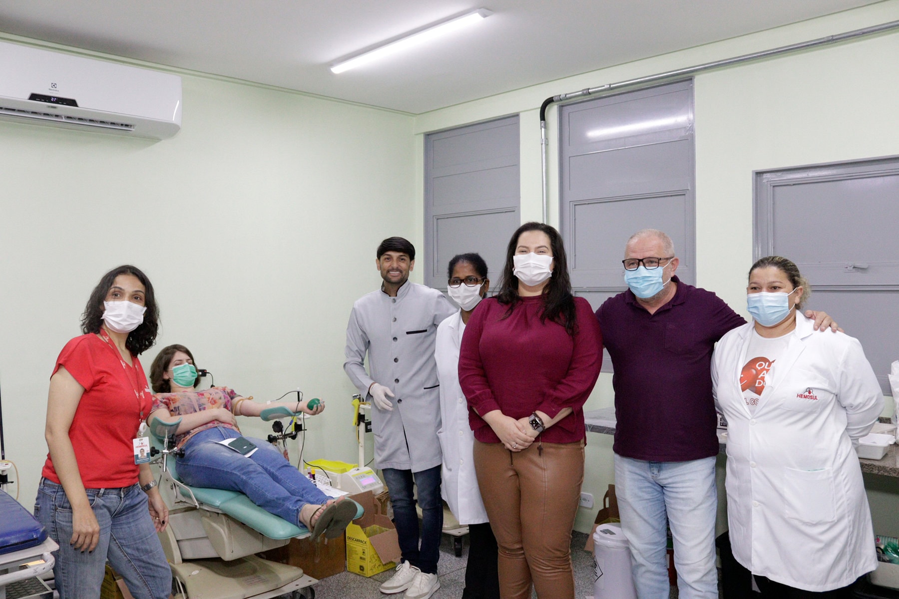 A Chefe do Executivo esteve acompanhada do titular da Gerência de Saúde e da Chefe regional do Hemosul. São 120 doadores previamente agendados, sendo parte atendidos nesta quinta e os demais nesta sexta-feira, 02 de dezembro, das 7h às 10h30min. A Prefeita ressaltou a importância da doação de sangue, que “é um gesto de amor ao próximo que salva vidas”.