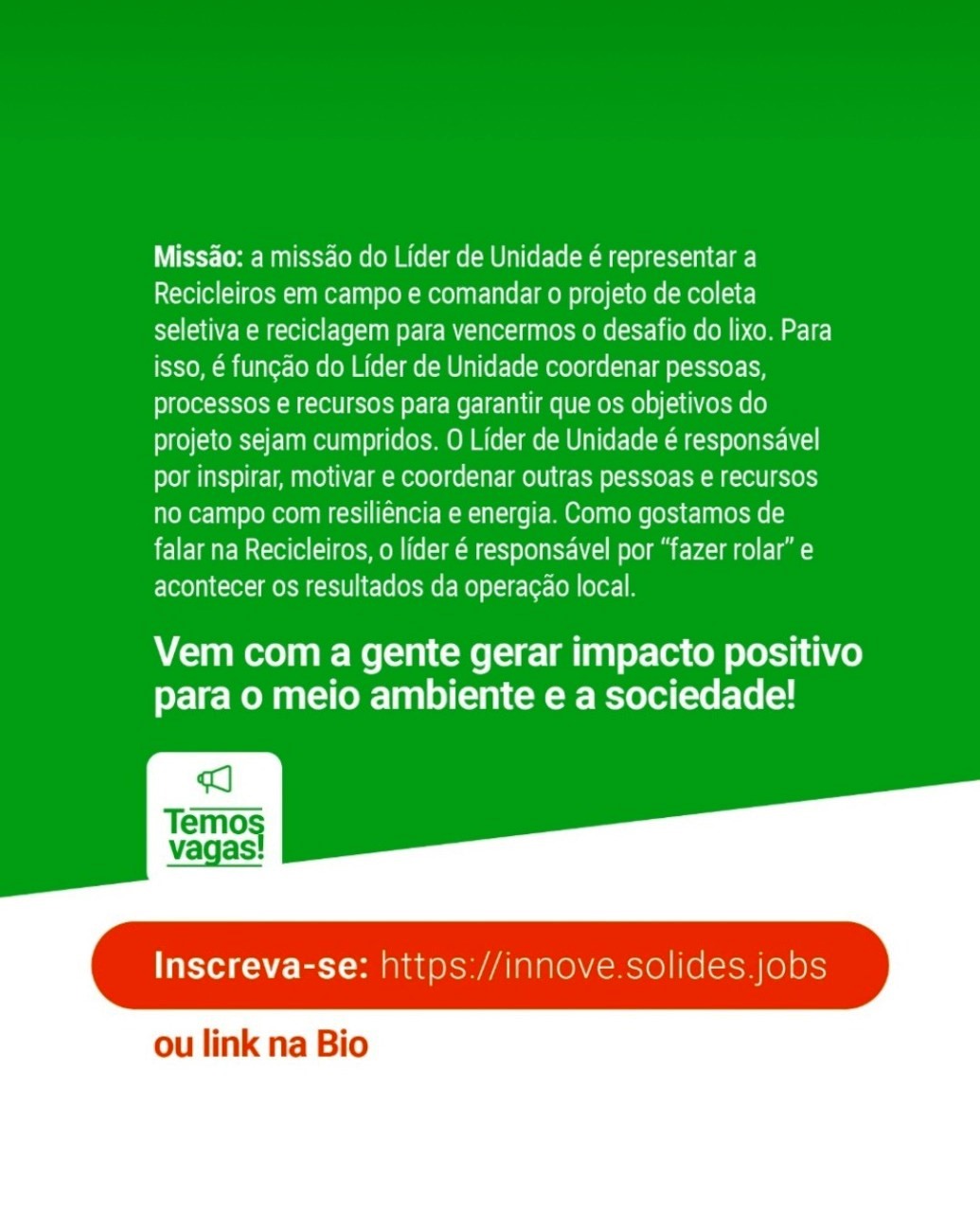 Líder de Unidade Produtiva de Resíduos Sólidos