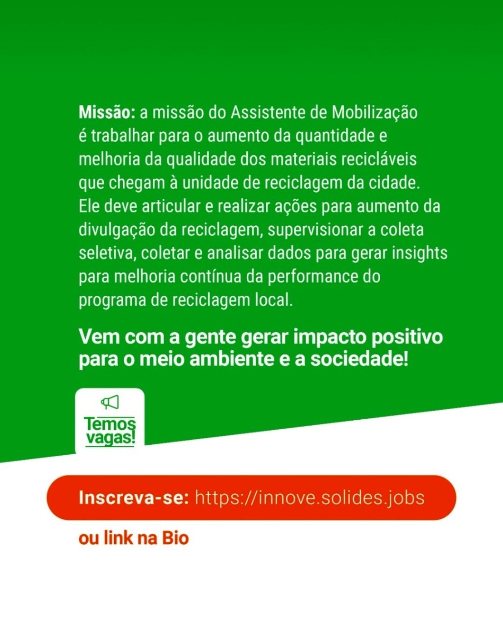 Agradecemos sua compreensão e desejamos sucesso no processo seletivo!”, finaliza a nota do Instituto-Recicleiros.