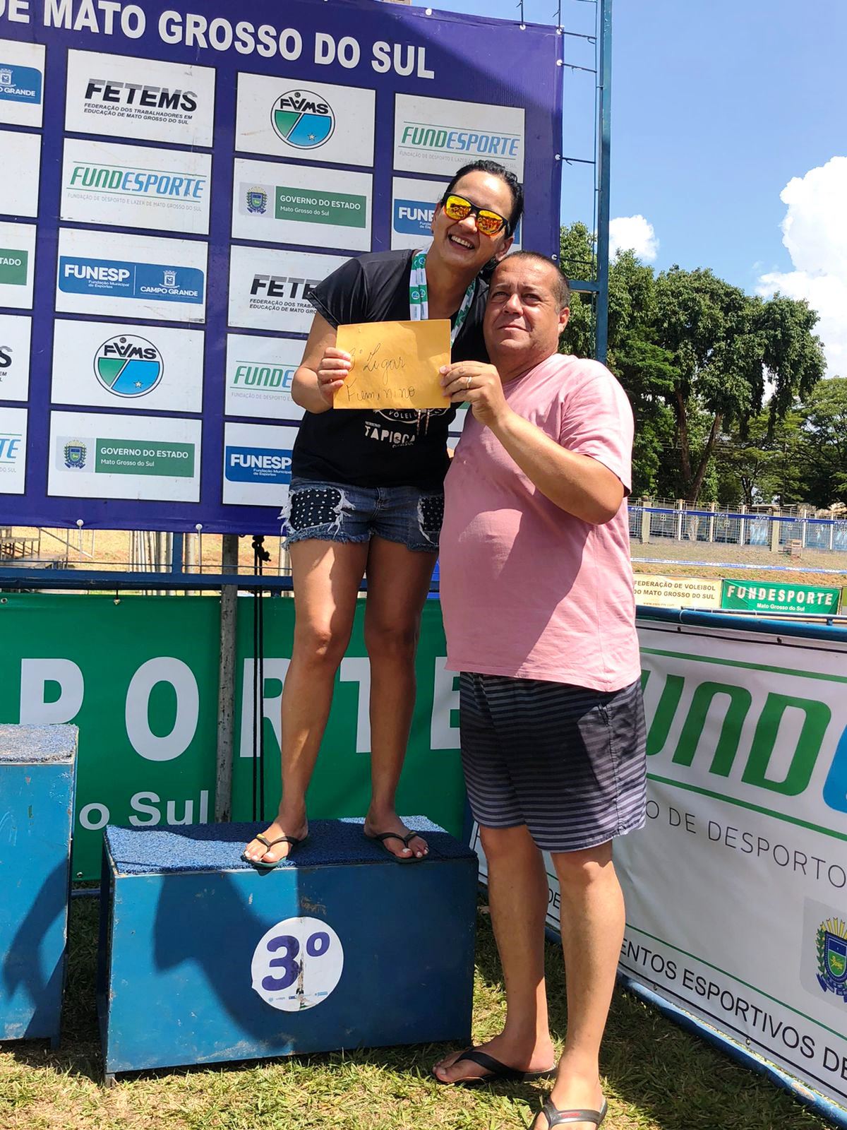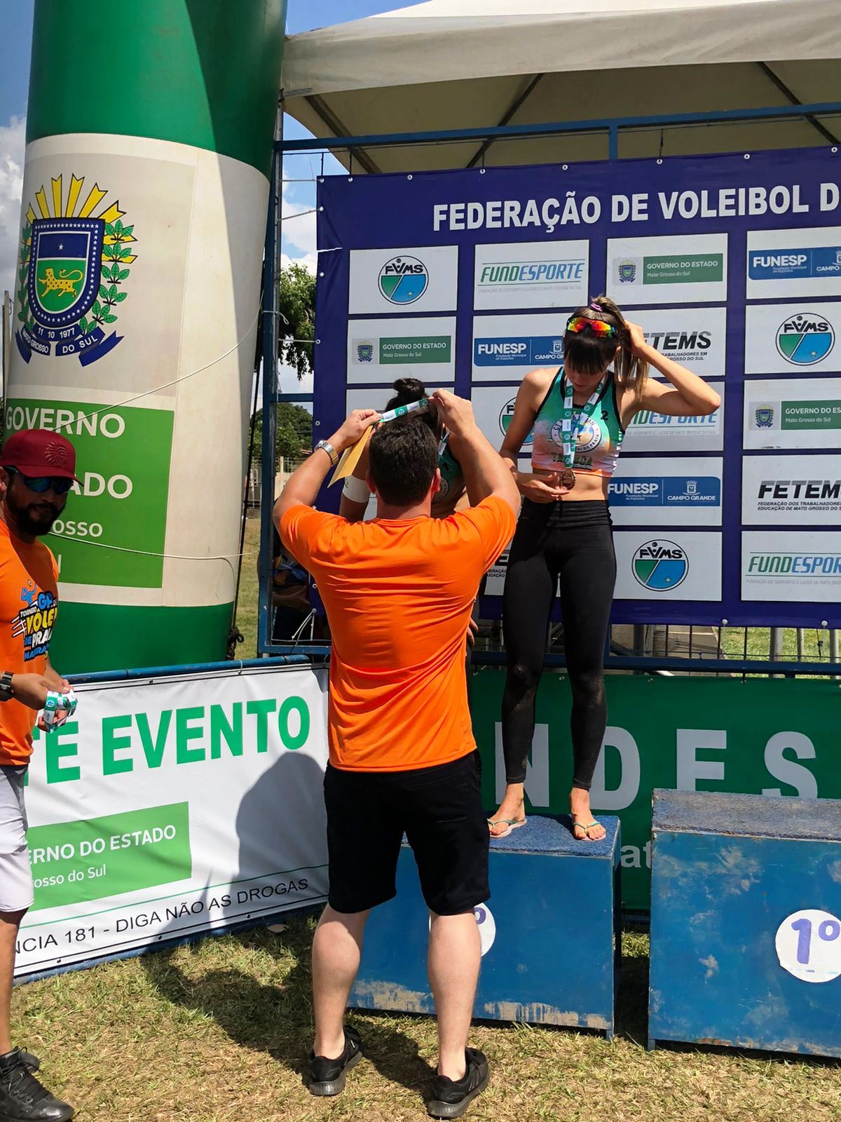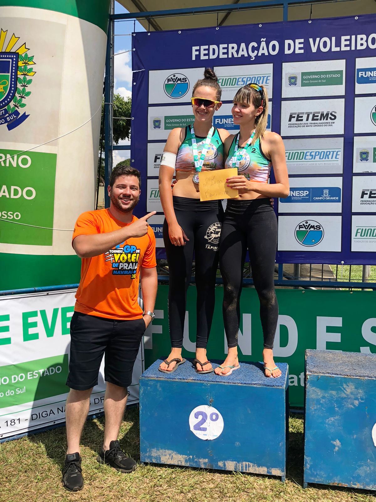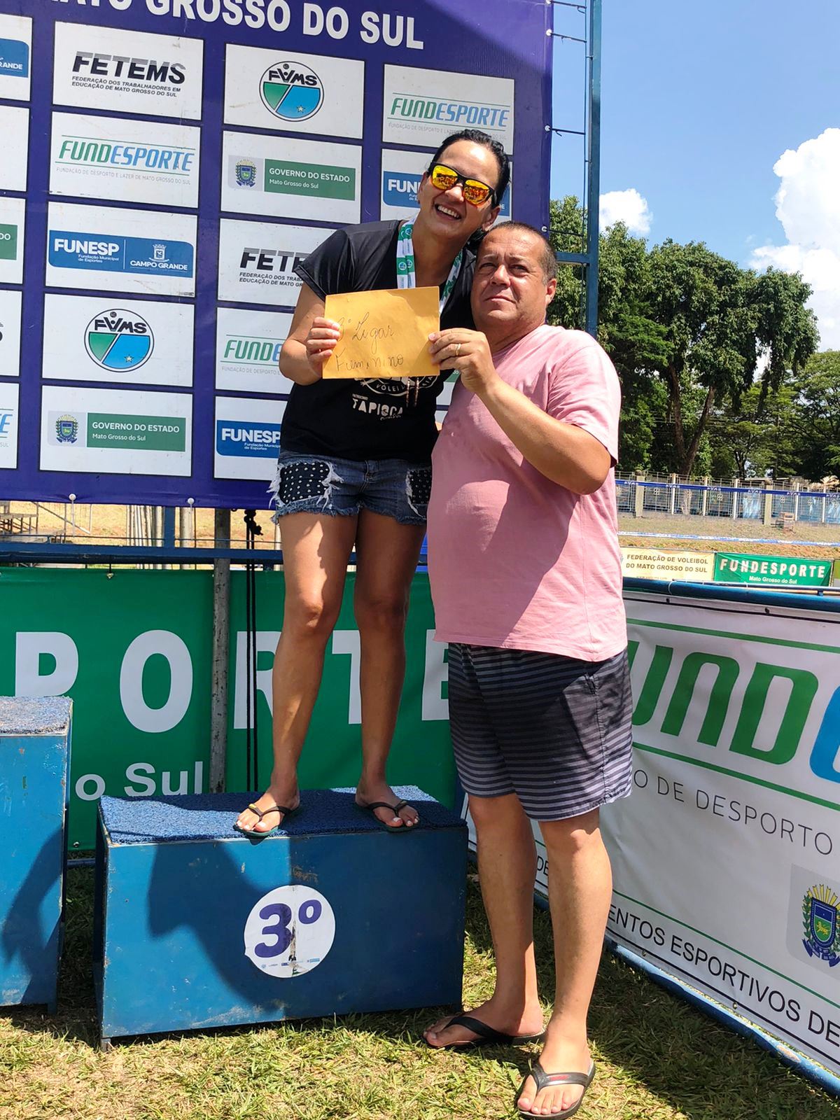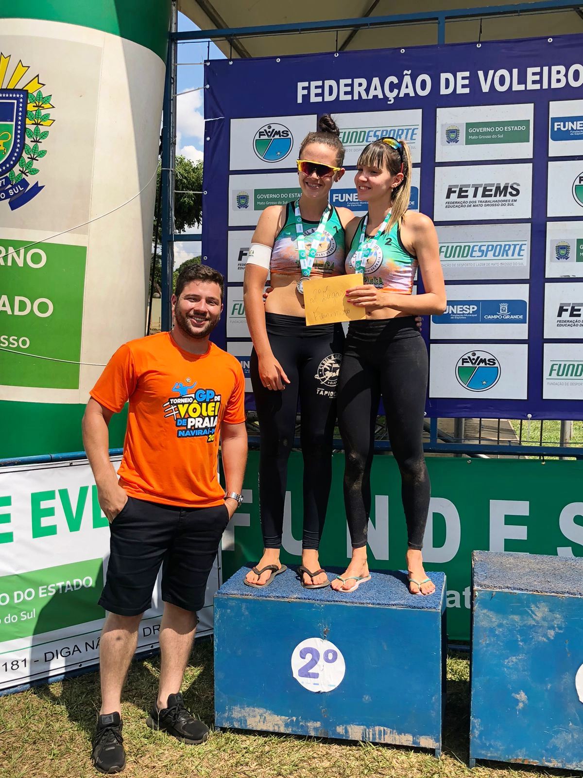 VICE-CAMPEÕES – A dupla vice-campeã Duda e Alexandre (CG) recebeu medalha e o prêmio de R$ 600 entregue por Eduardo Mendes, coordenador regional das ações do Governo do Estado. A dupla feminina  vice-campeã Bruna Lopes e Renata Conceição foi premiada com medalha e R$ 600 em dinheiro entregues pelo gerente de Esportes e Lazer de Naviraí Brendo Caíque Barbosa dos Santos.
