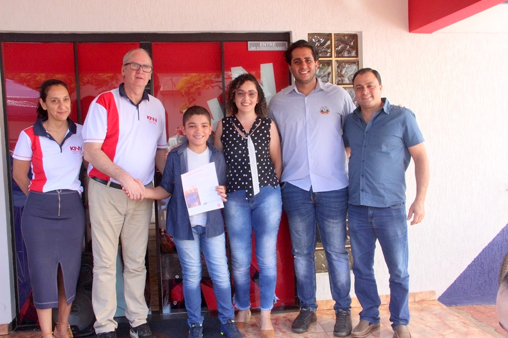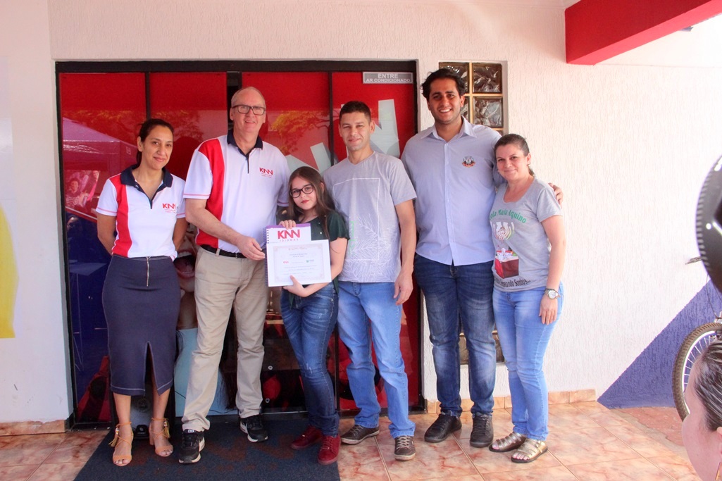 Na manhã desta terça-feira (01), na Escola de Língua KNN por meio de um concurso de redação e desenho contemplou os alunos da rede municipal de ensino onde foi entregue bolsa de estudo de língua estrangeira para os vencedores. O evento contou com a presença de parceiros, o servidor gerente de Núcleo de Inspeção de Dados Escolares, Tiago Moessa representou a professora Caroline Touro Gerente de Educação.