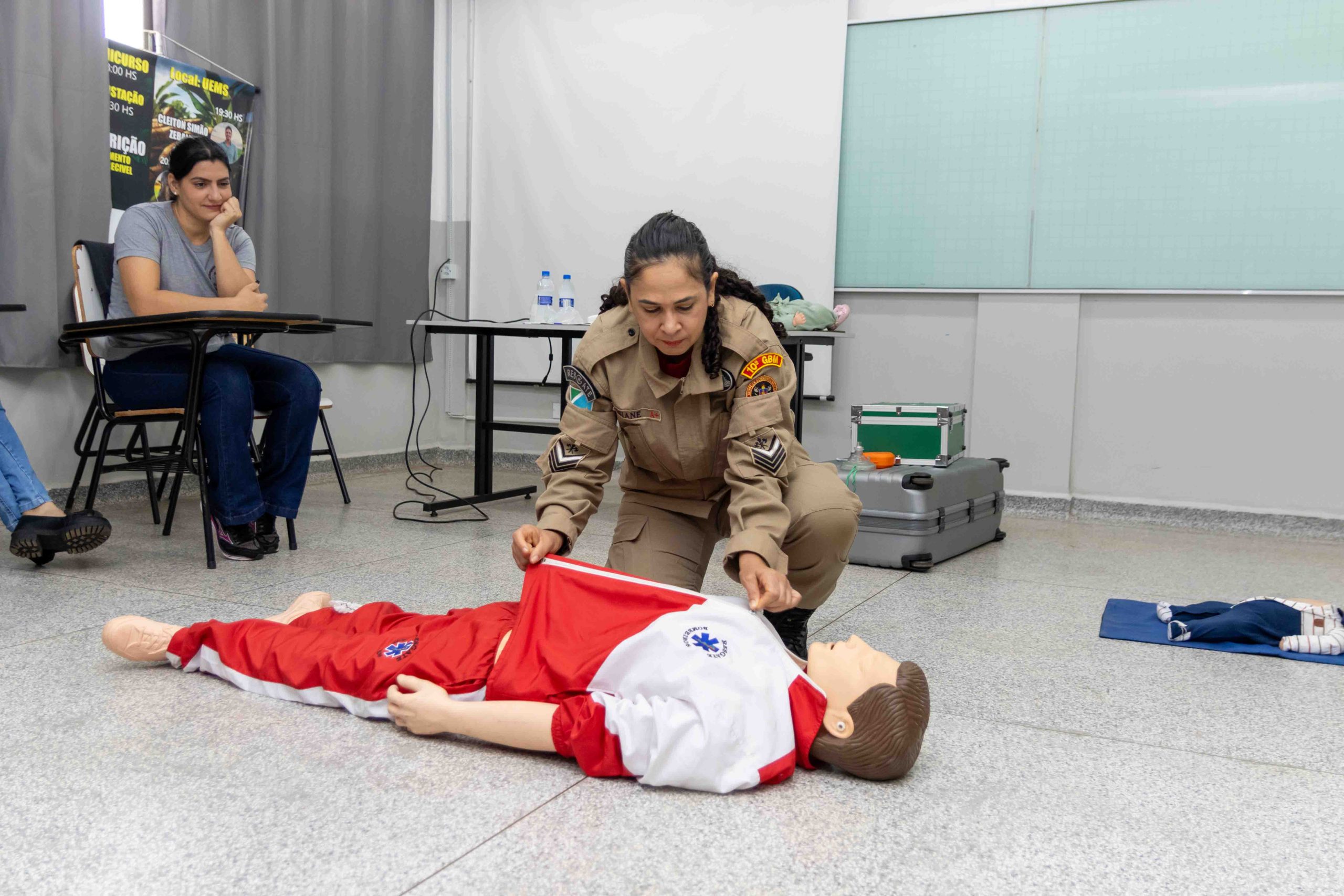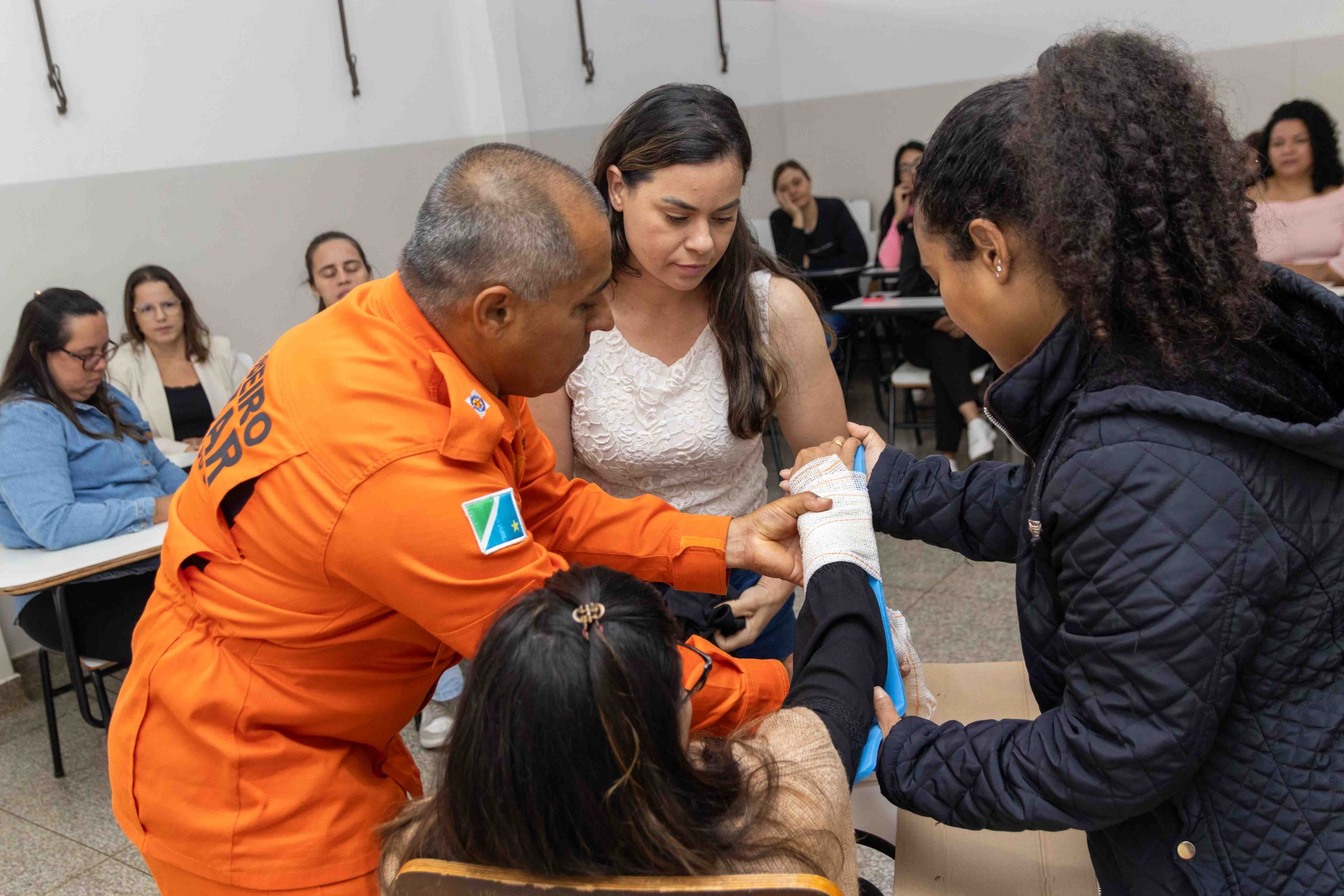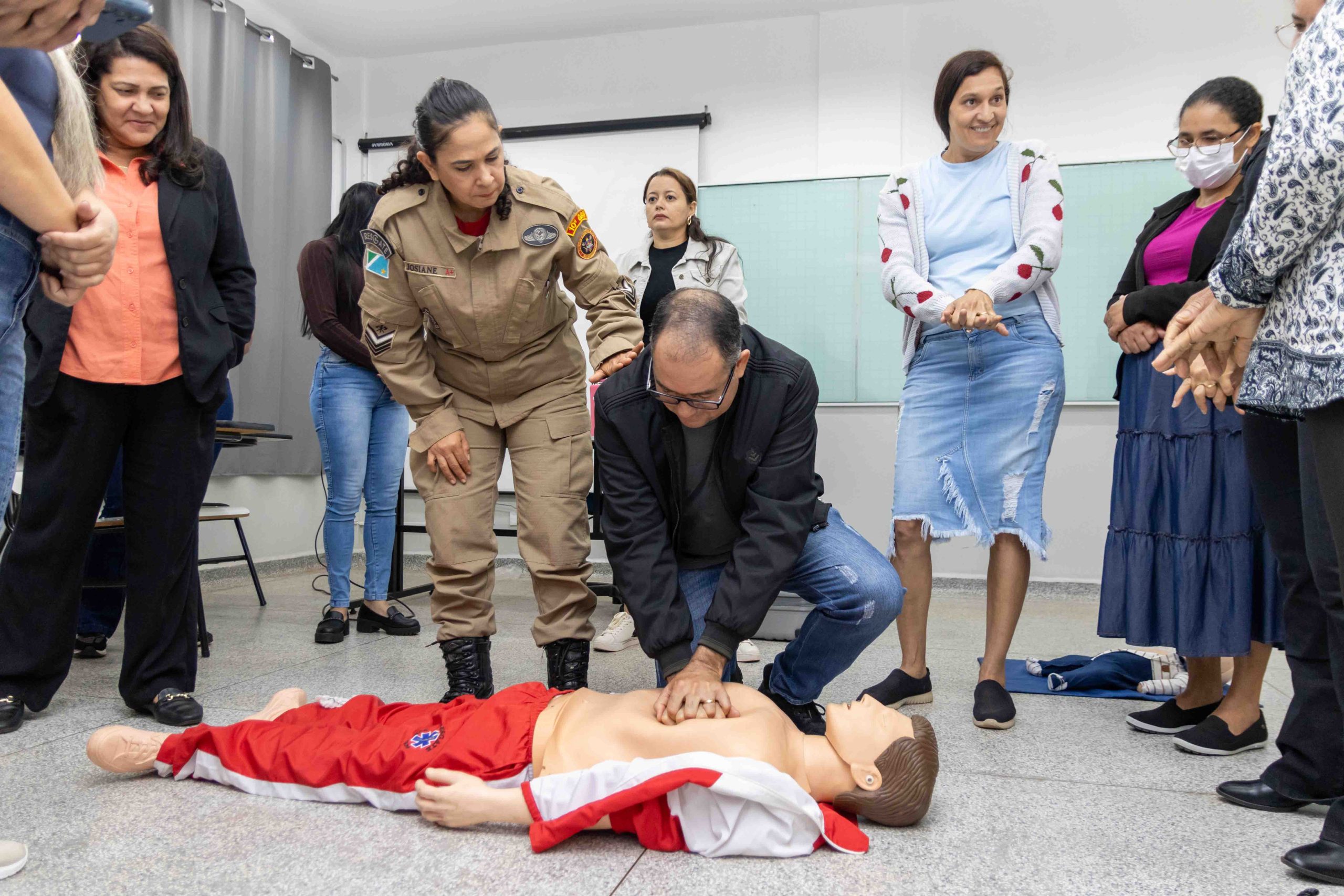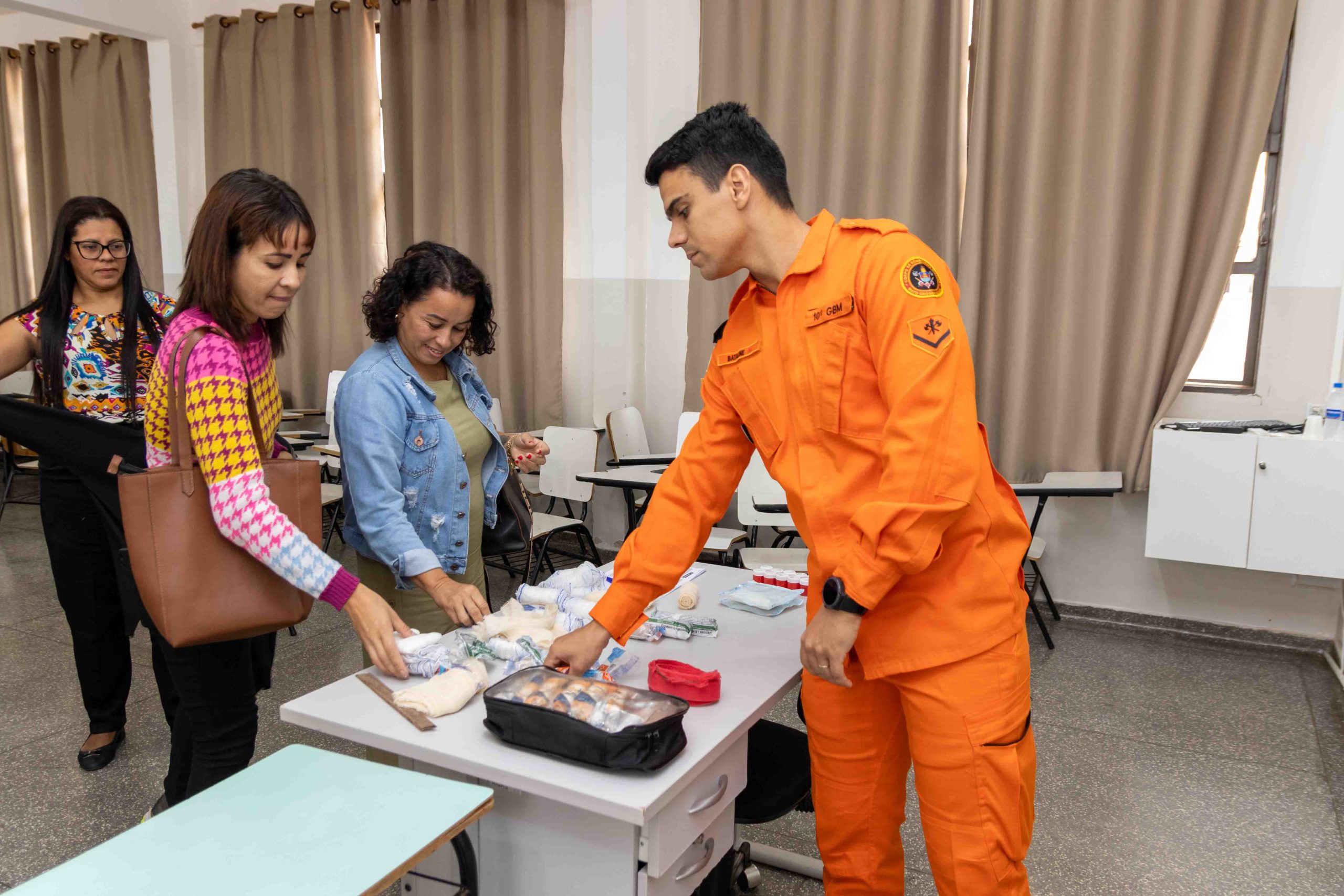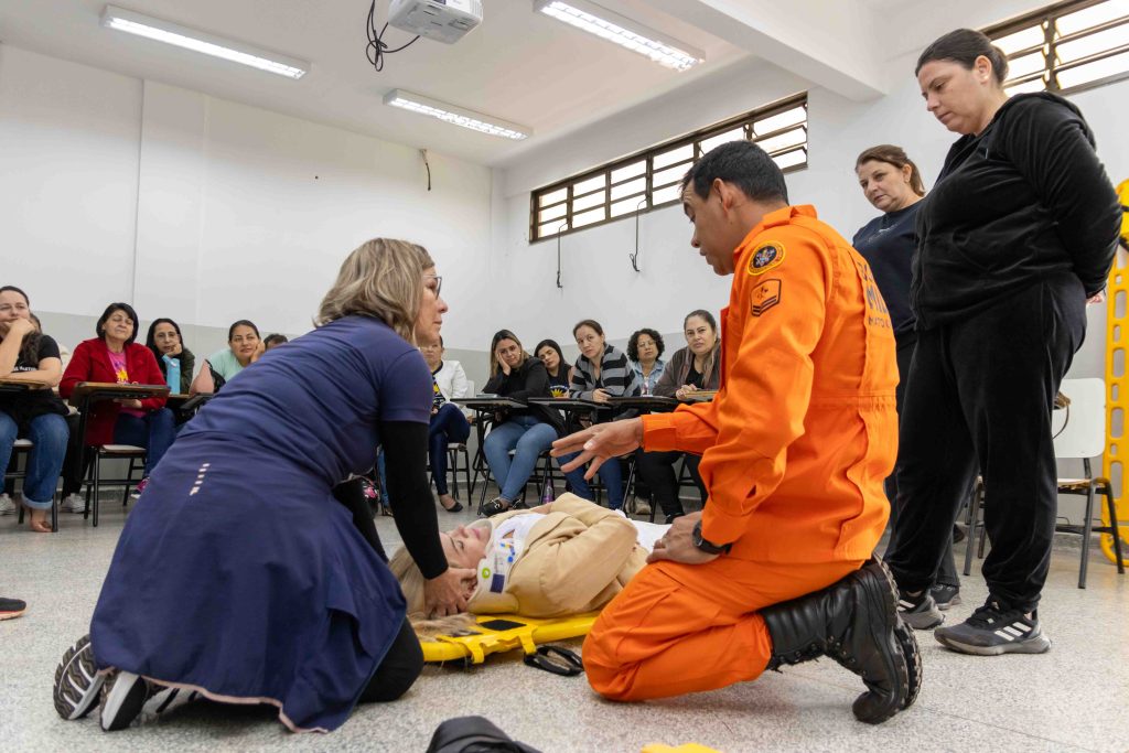 As oficinas foram coordenadas e ministradas pelos militares do Corpo de Bombeiros e contaram com o suporte técnico da Gerência de Educação. O treinamento prático foi essencial para consolidar o aprendizado teórico, abordando temas cruciais que podem evitar fatalidades: Oficina 01 – Obstrução de Vias Aéreas por Corpos Estranhos (OVACE), Oficina 02 – Fraturas, Oficina 03 – Ferimentos, Oficina 04 – Reanimação Cardiopulmonar (RCP) e Oficina 05 – Imobilização e Transporte.