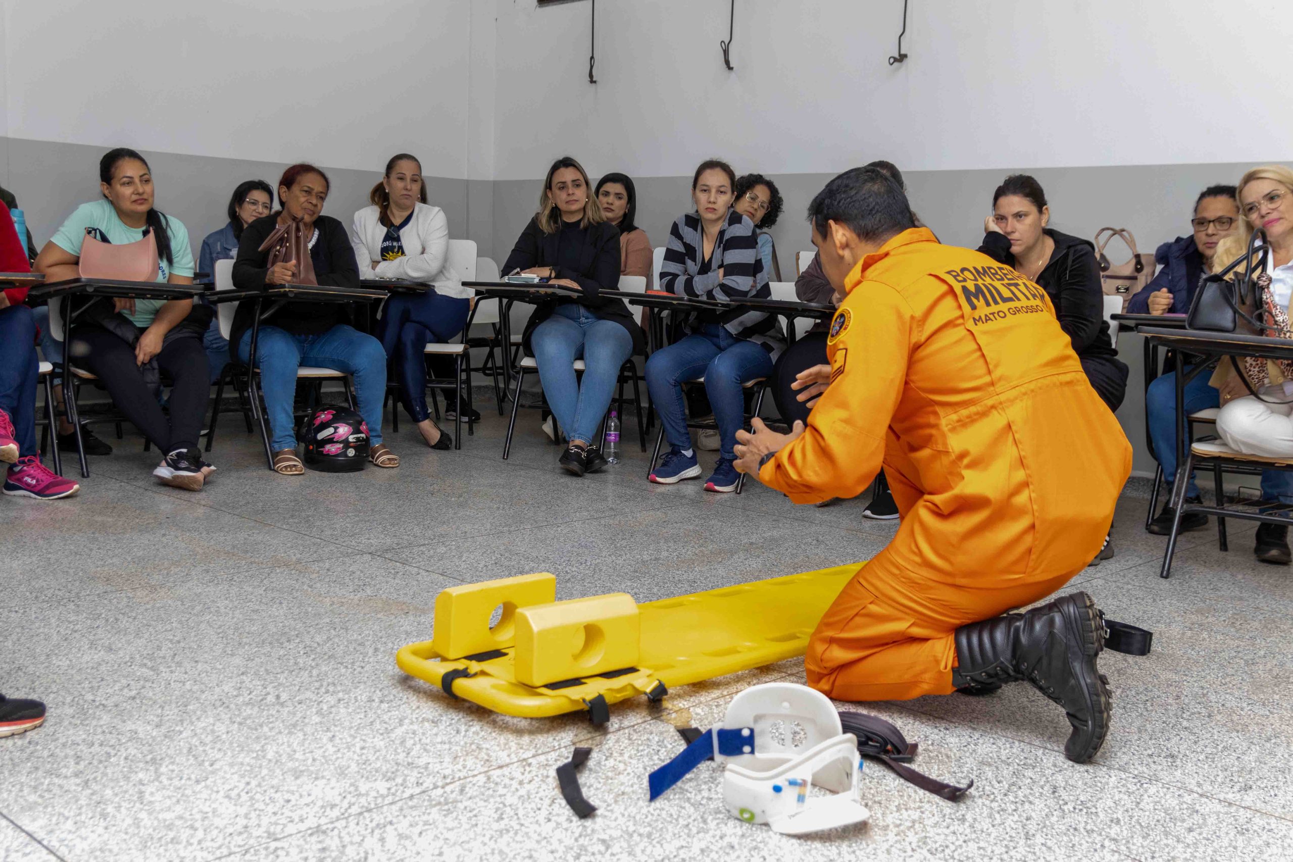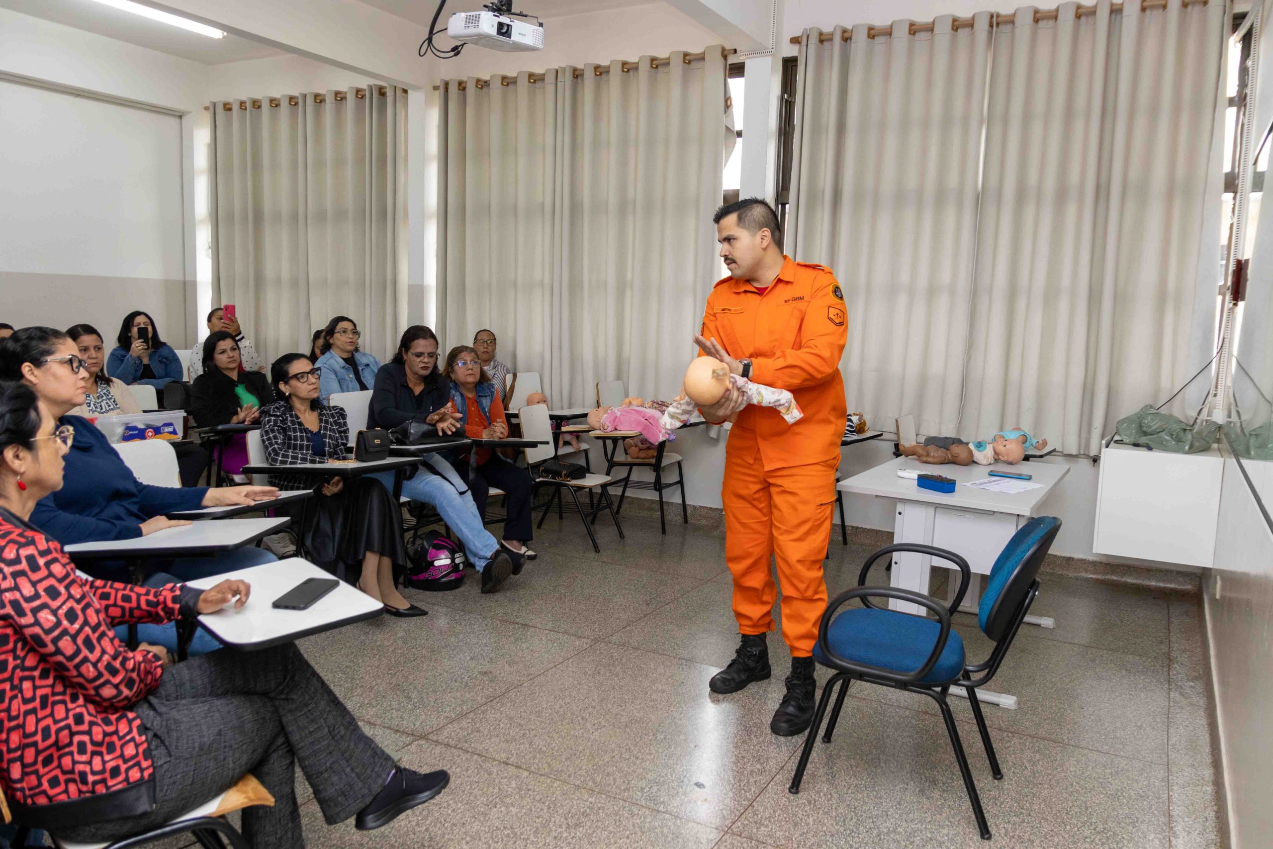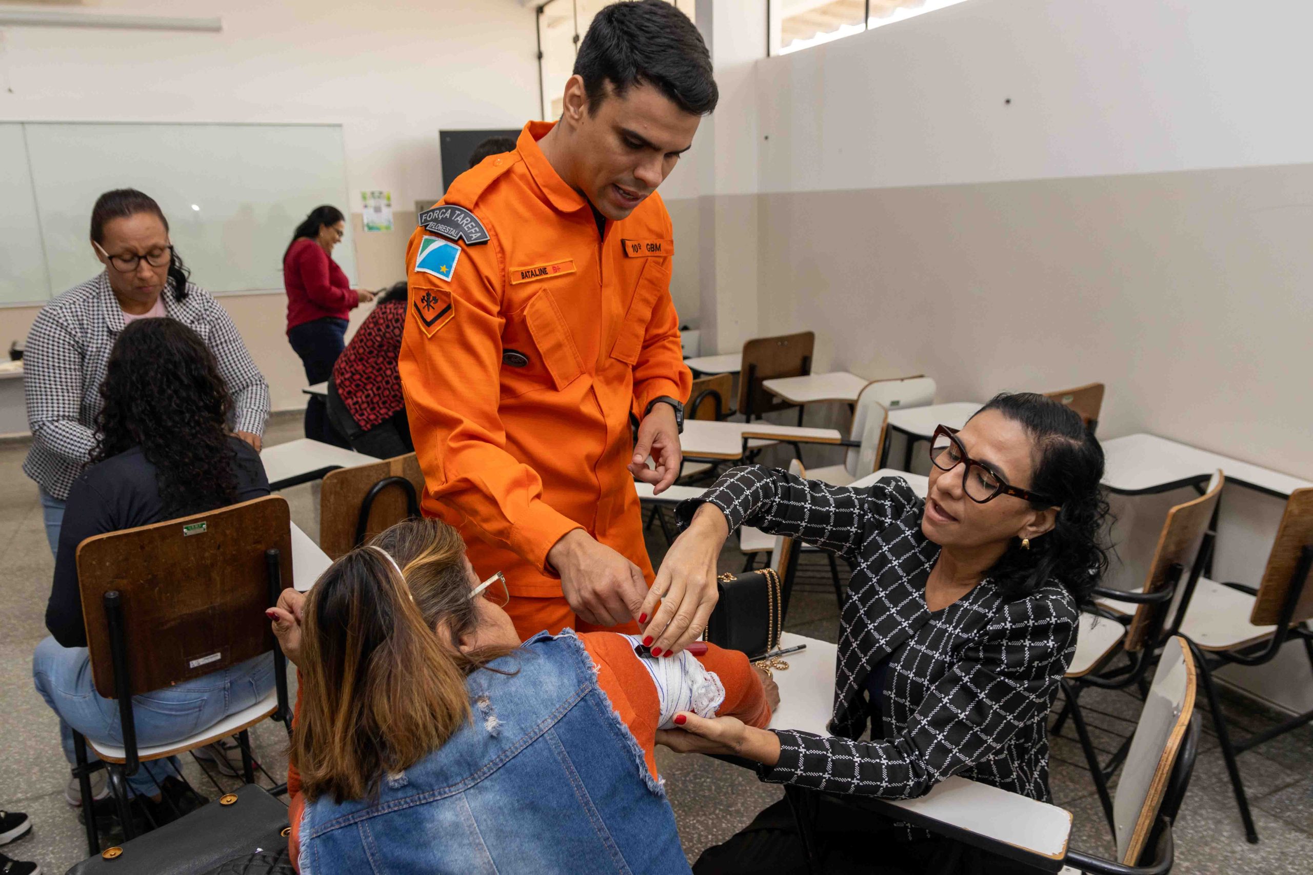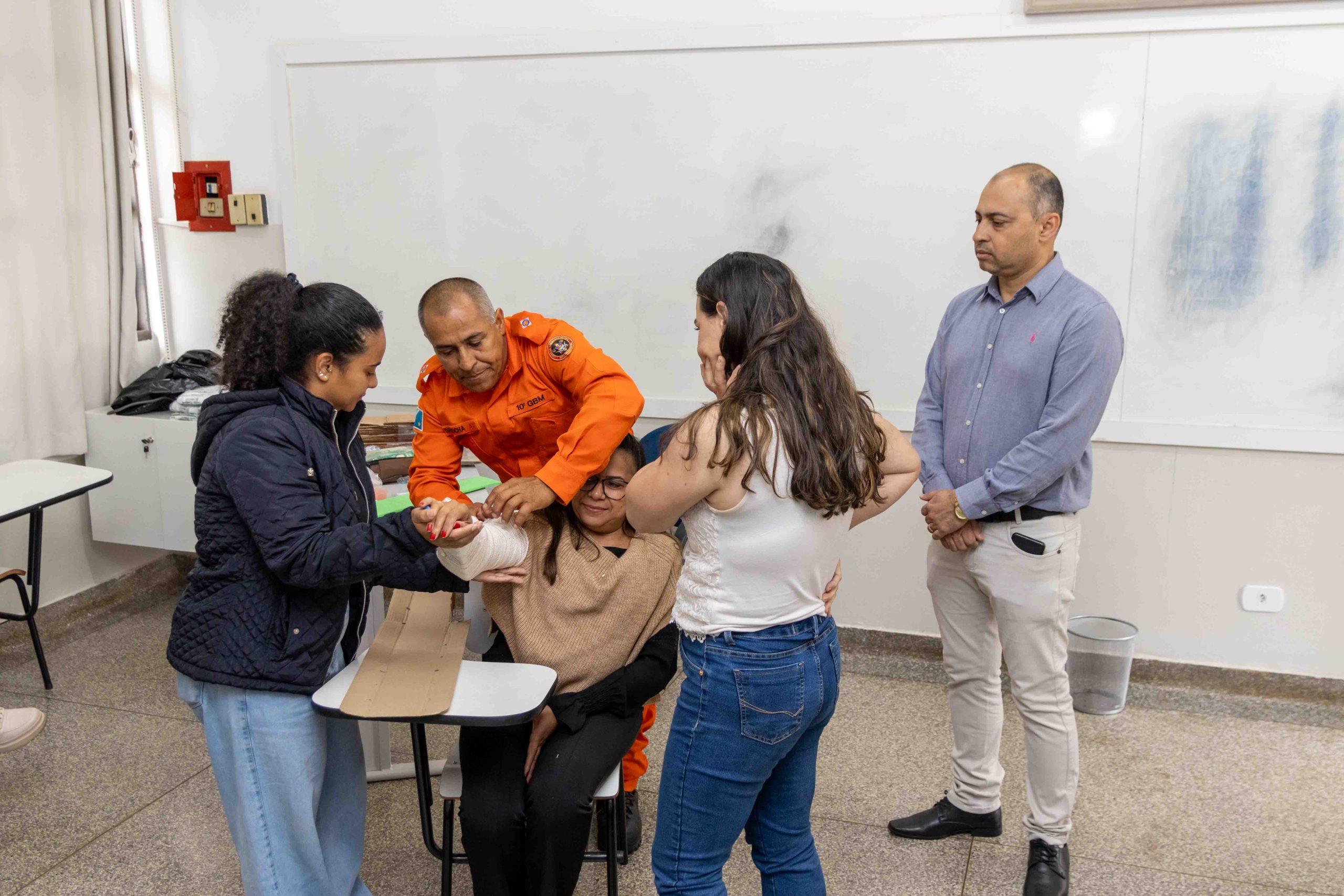 As oficinas foram coordenadas e ministradas pelos militares do Corpo de Bombeiros e contaram com o suporte técnico da Gerência de Educação. O treinamento prático foi essencial para consolidar o aprendizado teórico, abordando temas cruciais que podem evitar fatalidades: Oficina 01 – Obstrução de Vias Aéreas por Corpos Estranhos (OVACE), Oficina 02 – Fraturas, Oficina 03 – Ferimentos, Oficina 04 – Reanimação Cardiopulmonar (RCP) e Oficina 05 – Imobilização e Transporte.