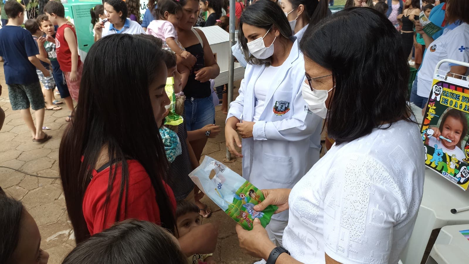 Na Saúde foram registrados mais de 500 participantes (crianças e adultos). Na Saúde Bucal foram realizadas orientações sobre higiene bucal e distribuídas, 166 escovas dentais – infantil, 200 escovas dentais – adulto, 115 creme dental de 500 ppm flúor, 134 kits ( contendo escovas infantis e creme dental doação, com panfletos educativos), além de vacinação contra a Covid de crianças de 05 a 12 anos, e medição de pressão arterial.