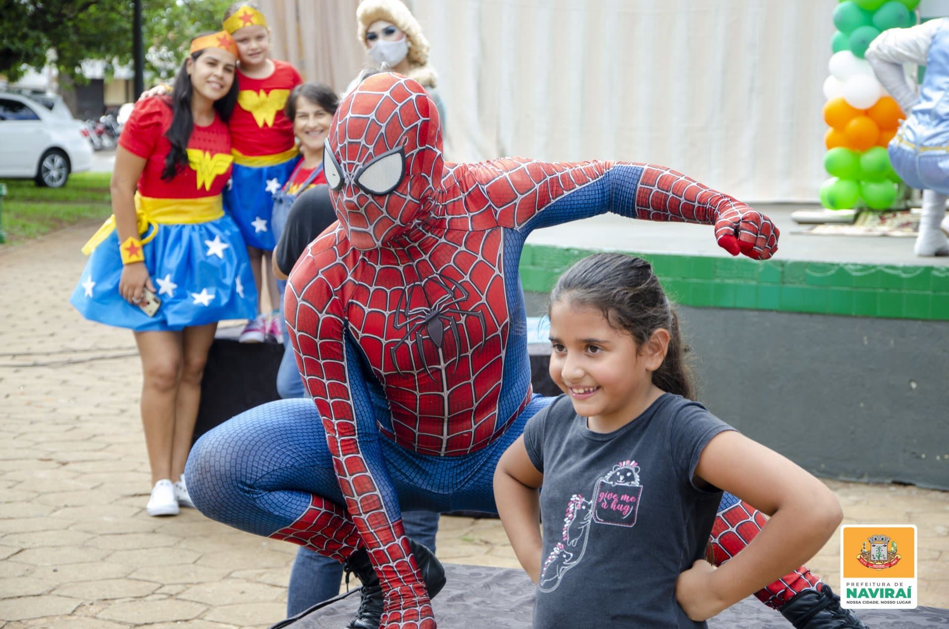 A festa na Praça Central foi abrilhantada pelos artistas do “Espaço Sou Arte”, de Campo Mourão (PR) que se apresentaram imitando os personagens do Homem Aranha, Tor, Mulher Maravilha, Capitão América, Frozen e Alice no País das Maravilhas, contagiando as crianças.