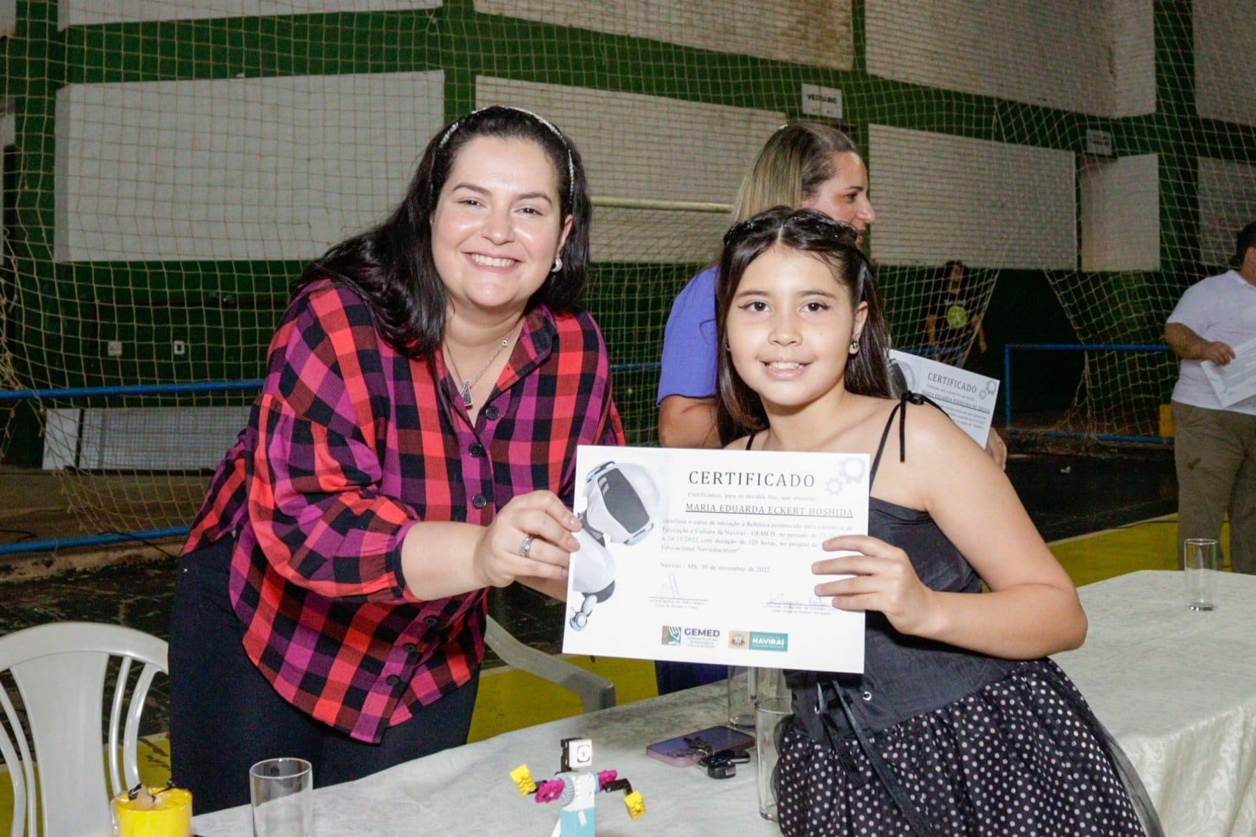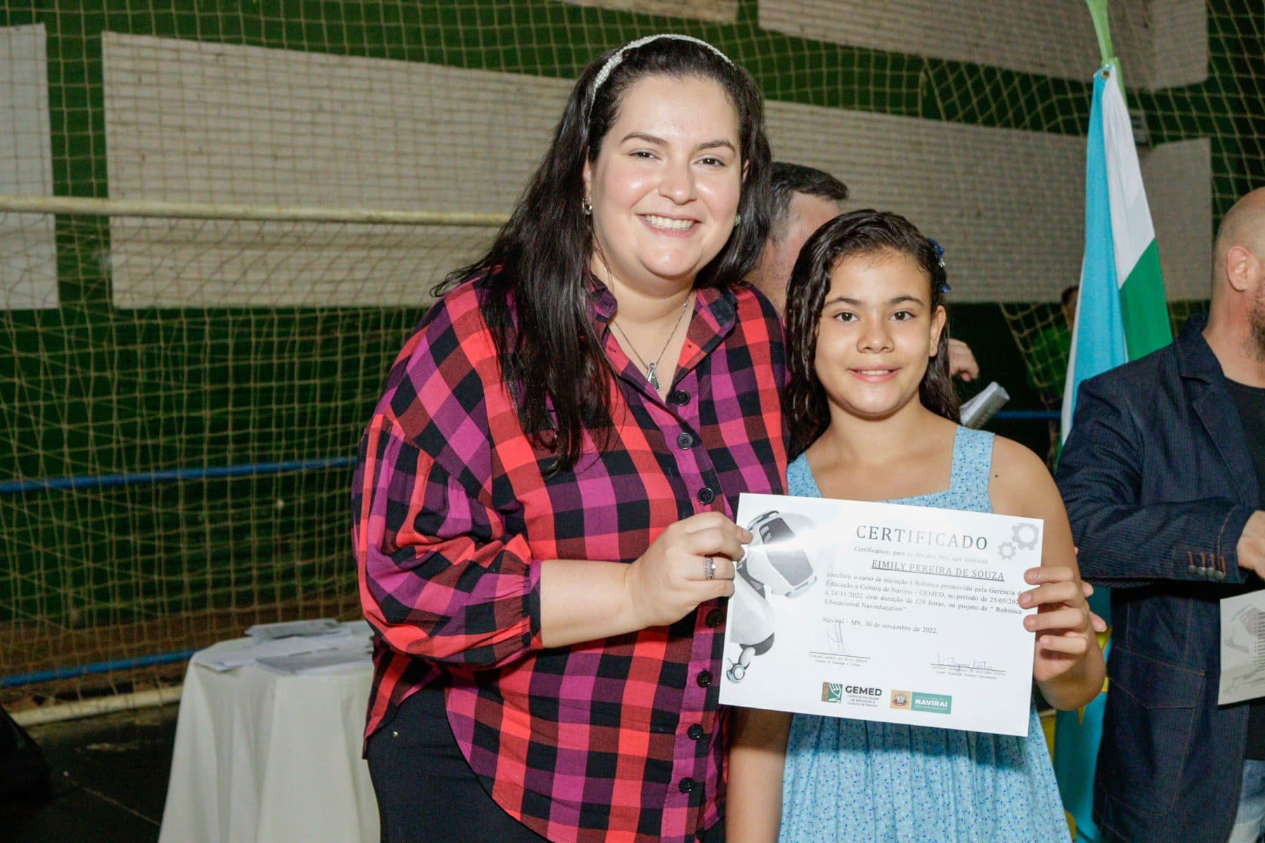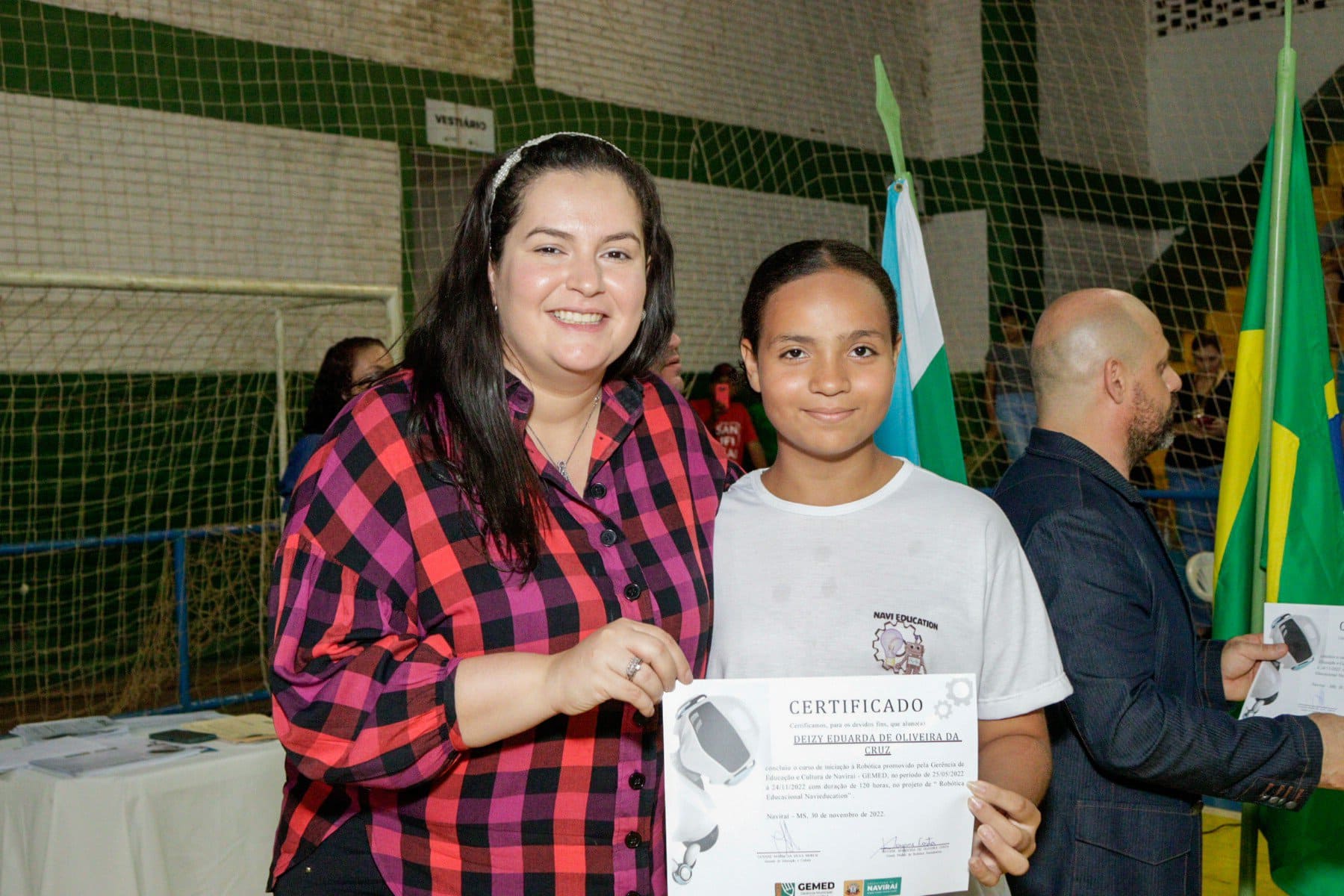 Na entrega de certificados, Prefeita confirma ampliação de vagas para cursos de Robótica em Naviraí