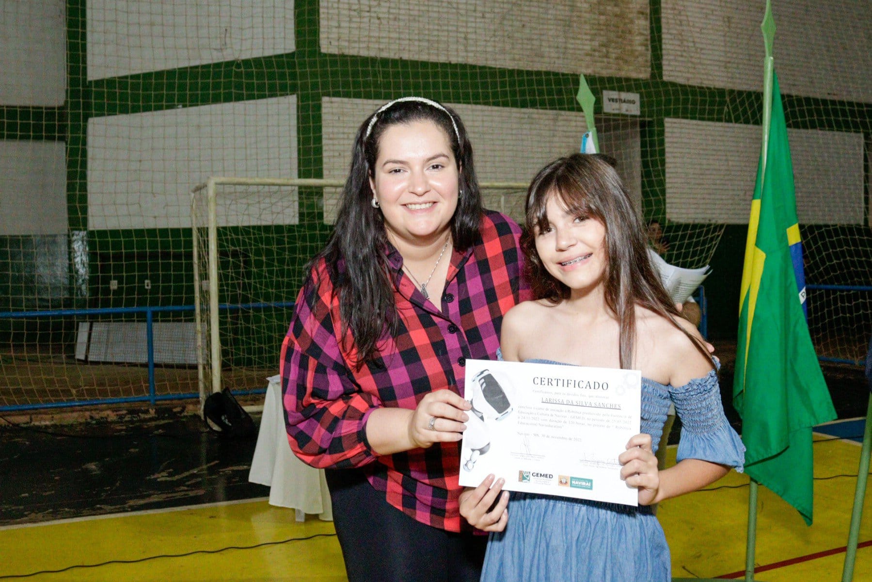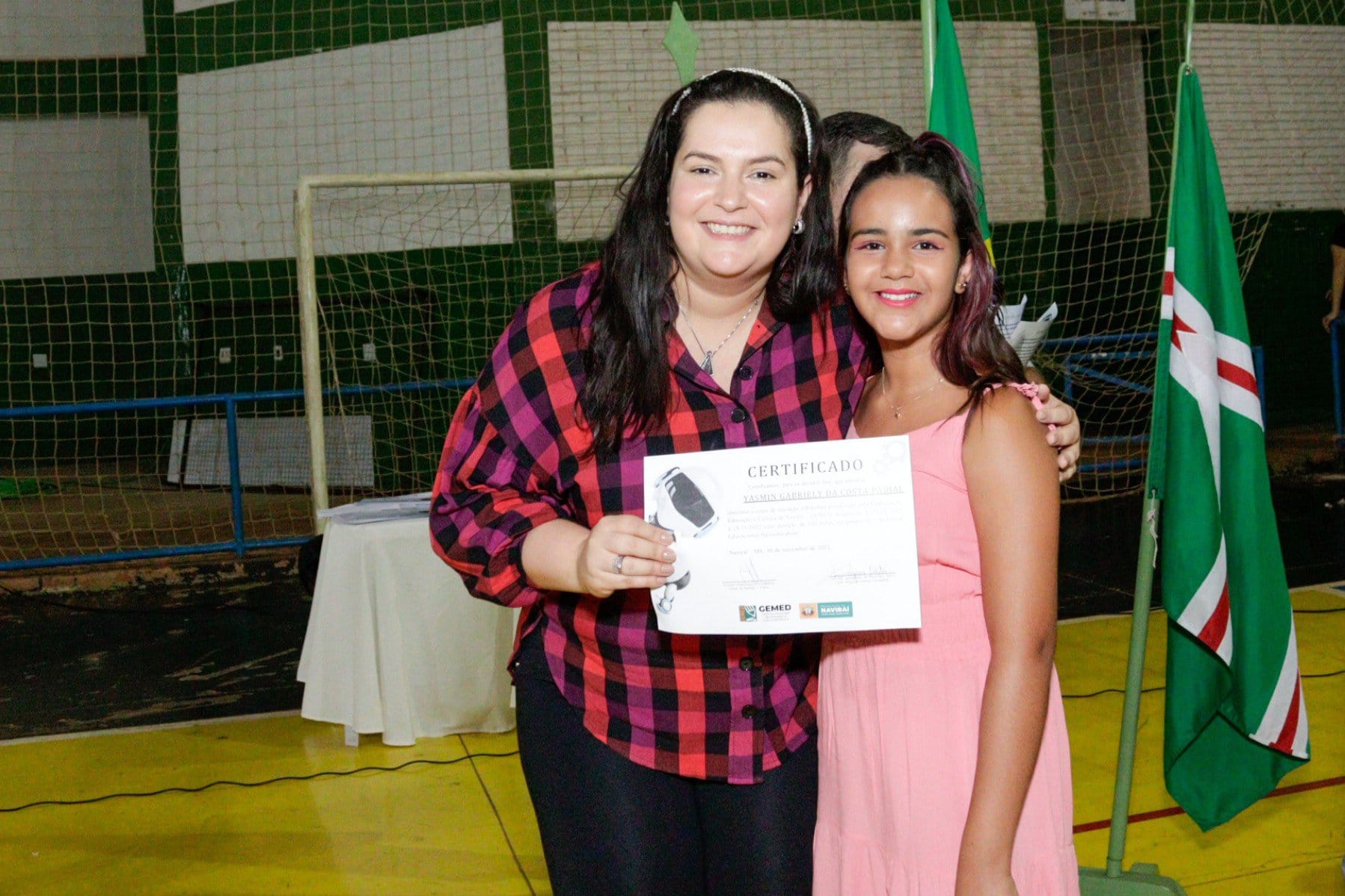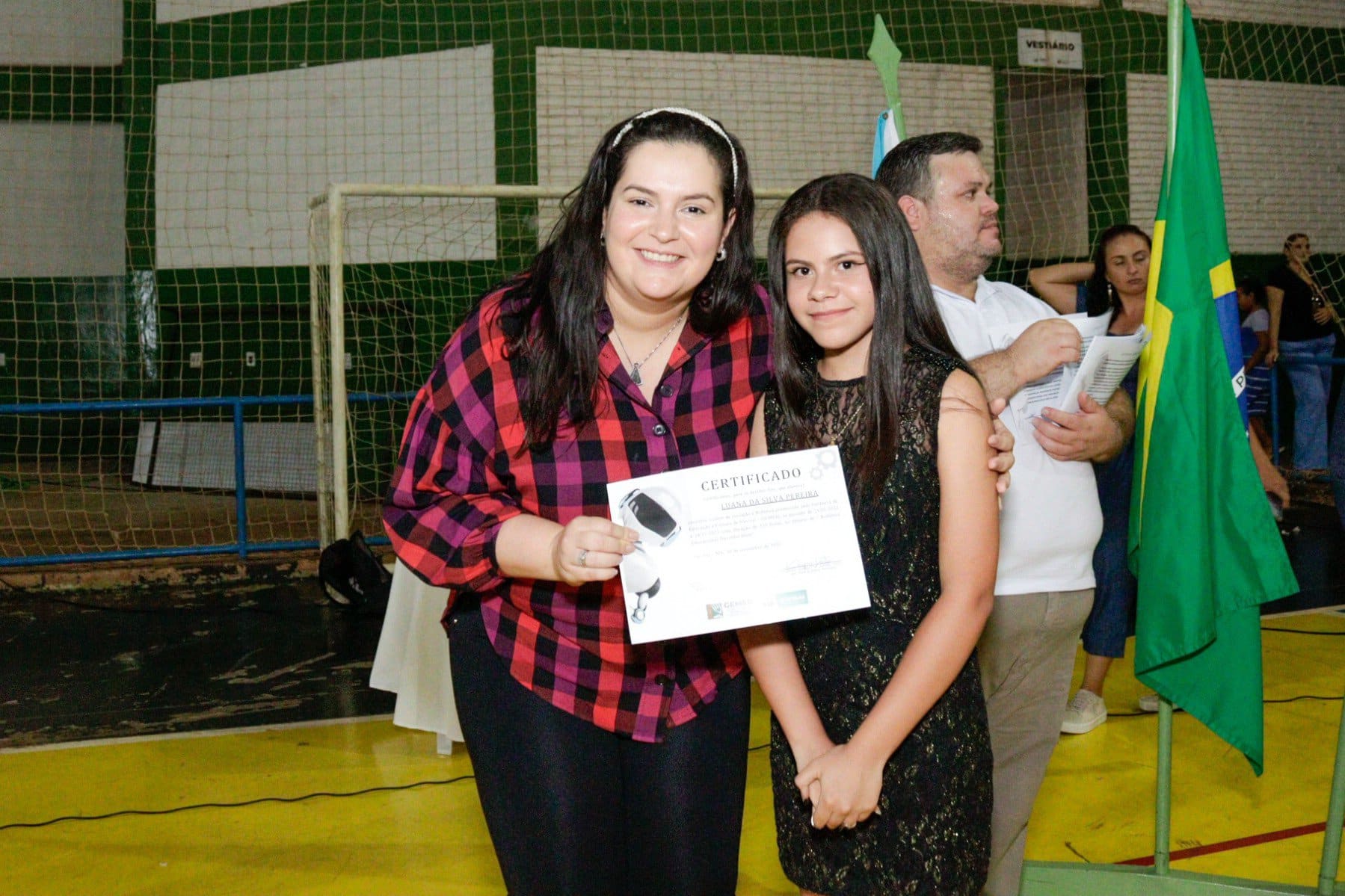 A cerimônia de entrega dos certificados contou com a presença da Prefeita de Naviraí e da titular da Gerência de Educação e Cultura. Durante o evento ao falar aos alunos, familiares e convidados que lotaram o Centro Poliesportivo Manuel Pulquério Garcia, a Chefe do Executivo parabenizou os 180 formandos e confirmou a ampliação da oferta de vagas para o próximo ano.