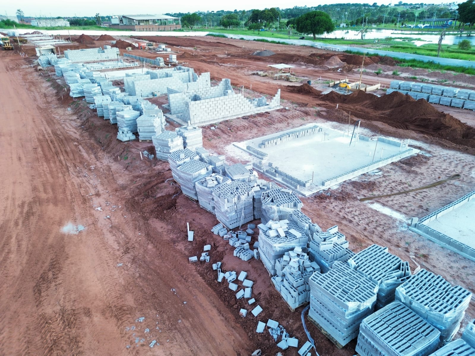 A construção da creche sai do chão e ganha forma. As paredes começaram a ser levantadas, materializando uma obra dedicada à nossa educação infantil.