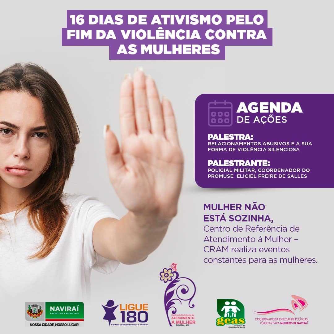 A Prefeitura de Naviraí e a Secretaria Municipal de Assistência Social, através da Coordenadoria de Políticas Públicas para as Mulheres e do Centro de Referência de Atendimento à Mulher encerraram, com a palestra do Policial Militar, Coordenador no Promuse Eliciel Freire de Salles, a “Campanha 16 dias de Ativismo pelo fim da violência contra mulher”.